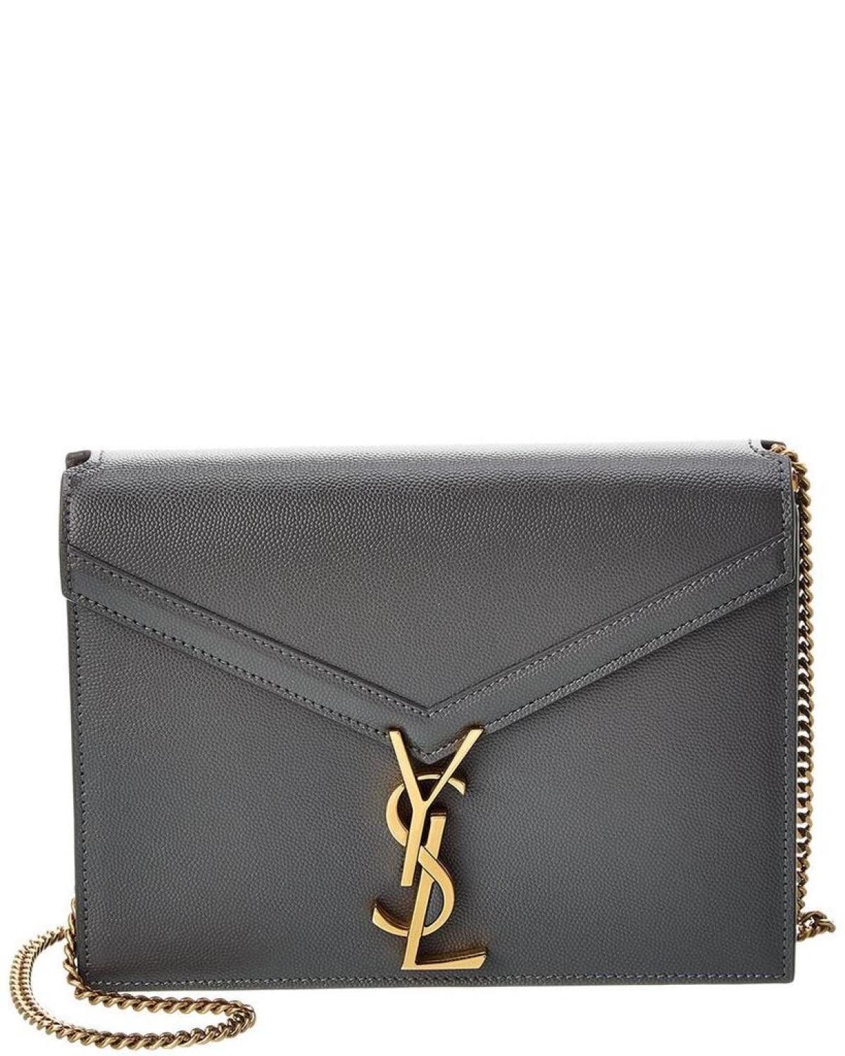 Introducing the Saint Laurent Cassandre Leather Shoulder Bag, a timeless addition to your accessories collection. Crafted with exquisite precision in Italy, this handbag embodies the iconic and modern glam that the brand is known for.Made from luxurious grey leather, the bag features gold-tone hardware and a striking monogram accent on the exterior, adding a touch of sophistication to any outfit. The interior is lined with a combination of leather and fabric, offering a plush environment for your belongings. Interior pockets provide convenient storage for your essentials, keeping them organized and easily accessible.Measuring 8.5 inches in width, 6.2 inches in height, and 2.2 inches in depth, this shoulder bag offers a compact yet spacious design to carry your daily necessities. With top handles boasting a 14-inch drop and a removable shoulder strap with a 25-inch drop, you have the option to wear it as a shoulder bag or carry it by hand.The fold-over flap with a turnlock closure adds a touch of elegance and ensures the security of your belongings. Please note that all measurements were taken by hand and are approximate, and slight variations may occur.Rest assured that our products are 100% genuine. While we occasionally source merchandise from trusted independent suppliers, we always stand by the authenticity of every product sold on our site.Elevate your style with the Saint Laurent Cassandre Leather Shoulder Bag. Shop now and experience the exquisite craftsmanship and timeless allure of this Tres Chic accessory.