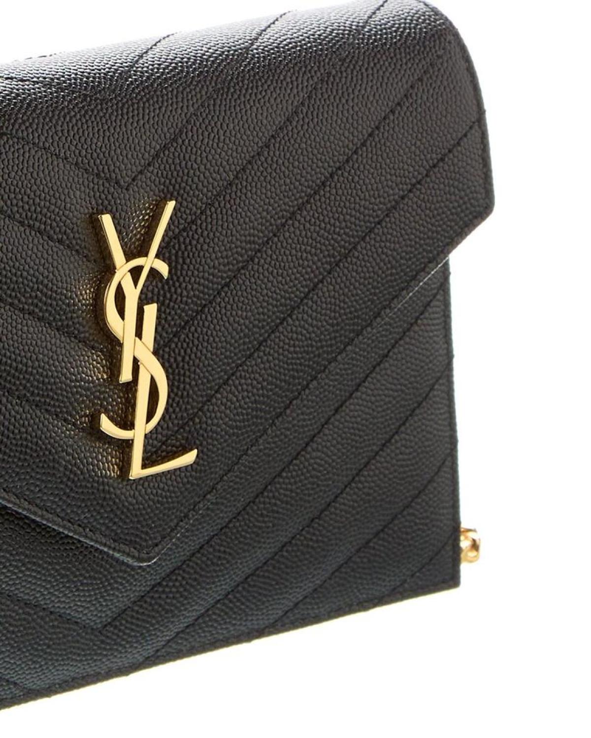 Introducing the Saint Laurent Cassandre Matelasse Leather Shoulder Bag, a true icon of modern glam. Crafted in Italy, this exquisite shoulder bag exudes sophistication and elegance, making it a must-have accessory for the stylish woman.Designed in timeless black leather with gold-tone hardware and a striking monogram accent, this shoulder bag is a statement piece that effortlessly elevates any outfit. The chain strap adds a touch of edginess and can be effortlessly removed, allowing you to convert this bag into a chic clutch.The interior of this shoulder bag is as luxurious as its exterior. Boasting a leather and fabric lining, it features a zippered pocket and card slots to keep your essentials organized and within easy reach. The fold-over flap comes with a convenient magnetic closure, ensuring your belongings are secure while maintaining a sleek aesthetic.Measuring 7.5 inches wide, 5 inches high, and 1.25 inches deep, this compact yet spacious shoulder bag provides enough room for your essentials without weighing you down. Please note, all measurements were taken by hand and are approximate, so slight variations may occur.Rest assured, our products are 100% genuine. While we source merchandise from trusted independent suppliers, we stand by the authenticity of every product sold on our site. With the Saint Laurent Cassandre Matelasse Leather Shoulder Bag, you can embrace the iconic style and superior craftsmanship that Saint Laurent is renowned for, making a statement wherever you go.