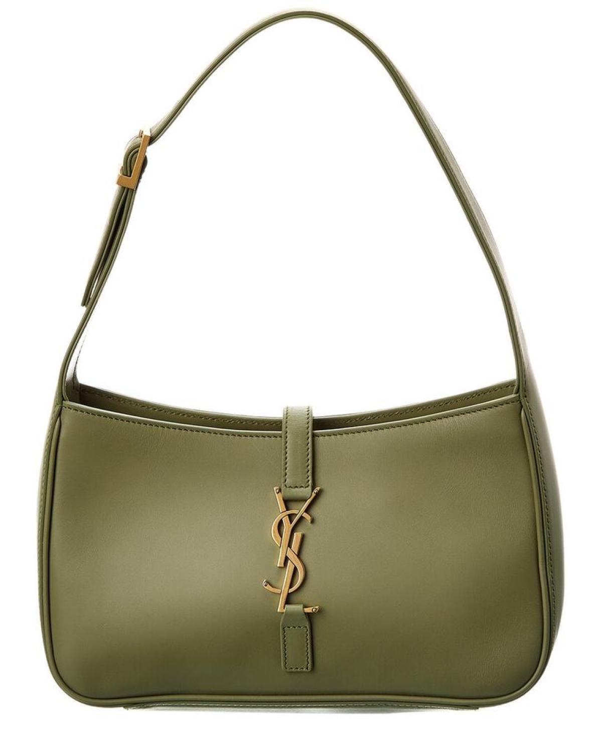 • Introducing the Saint Laurent Le 5 A 7 Smooth Leather Hobo Bag, a must-have accessory that embodies the iconic, modern glam of the brand. Crafted in Italy, this exquisite hobo bag showcases a gorgeous light green leather exterior adorned with gold-tone hardware and a chic monogram accent.Open the bag to reveal its luxurious leather lining and exquisite interior design details. With a width of 9 inches, a height of 6.2 inches, and a depth of 2.5 inches, this hobo bag offers just the right amount of space for your essentials. The adjustable shoulder strap allows for a comfortable drop of 8 inches, making it perfect for everyday wear.Designed with convenience in mind, the Saint Laurent Le 5 A 7 Smooth Leather Hobo Bag features an open top with a reliable hook closure. Please note that all measurements were taken by hand and are approximate, so slight variations may occur.Rest assured, our products are 100% genuine. Although in some cases we purchase merchandise from trusted independent suppliers, we stand by the authenticity of every product sold on our site. Elevate your style with this exquisite Saint Laurent hobo bag and experience the pinnacle of modern sophistication.