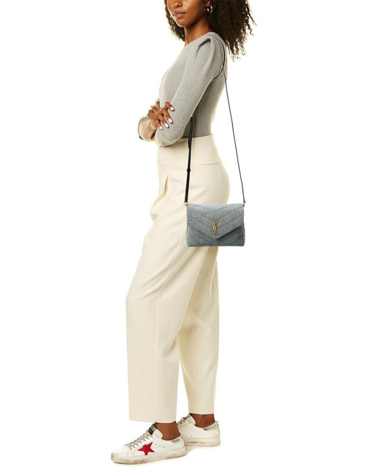 • Introducing the Saint Laurent LouLou Toy Matelasse Denim Shoulder Bag - the perfect addition to your accessory collection. With its iconic, modern glam design and a touch of Tres Chic, this bag is sure to elevate any outfit.Crafted with precision in Italy, this blue quilted denim shoulder bag features exquisite gold-tone hardware with a striking monogram accent. The interior design details include a luxurious fabric lining and convenient interior pockets, allowing you to stay organized while on the go.Measuring 7.8 inches wide, 5.5 inches high, and 3 inches deep, this compact yet functional bag offers enough space for your essentials. Whether you're running errands or attending an elegant evening event, the adjustable and removable shoulder strap, dropping 23 inches, provides versatility and comfort.Secured with a fold-over flap and magnetic closure, your belongings will stay safely tucked away. Please note that all measurements were taken by hand, and slight variations may occur.Rest assured, our products are 100% genuine. While in some cases, we purchase merchandise from trusted independent suppliers, not directly from the brand owner, we stand by the authenticity of every product sold on our site.Embrace the allure of Saint Laurent with the LouLou Toy Matelasse Denim Shoulder Bag and experience the perfect blend of style and sophistication. Get yours now and make a statement wherever you go.