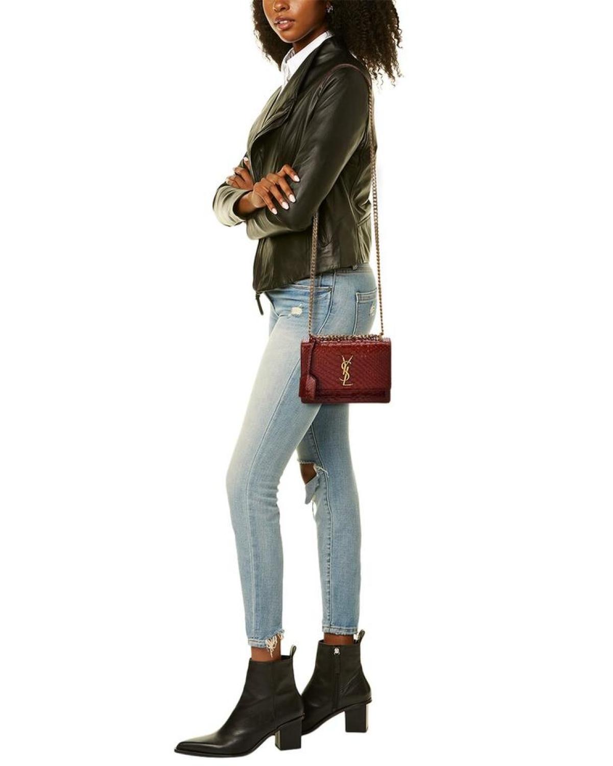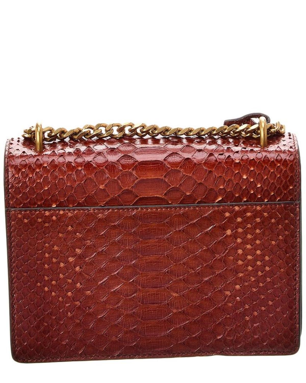 Introducing the Saint Laurent Sunset Small Python Shoulder Bag, a captivating combination of timeless elegance and modern allure. This exquisite handbag, expertly crafted in Italy, showcases the iconic Saint Laurent brand's commitment to luxury and style.Adorned in vibrant red python leather and complemented by gold-tone hardware, this shoulder bag exudes sophistication. The monogram accent, key ring charm, and chain strap add a touch of refinement, while the fold-over flap with magnetic closure ensures secure and effortless access.Designed for the fashion-forward woman, this bag features a spacious interior with a luxurious leather lining and multiple compartments, providing ample room for all your essentials. From your everyday items to small treasures, this bag keeps you organized in utmost style.With measurements of 7.5 inches wide, 5.5 inches high, and 2.5 inches deep, this compact yet practical bag is perfect for any occasion. The top handles have a droop of 12 inches, allowing for effortless carrying, while the shoulder strap offers a drop of 23 inches for added convenience.Please note that due to California law, this item cannot be shipped to the state. We apologize for any inconvenience caused by this restriction.At our store, we guarantee the authenticity of our products. While we sometimes source items from trusted independent suppliers, we always stand by the quality and genuineness of every product sold on our site.Capture the essence of contemporary glamour with the Saint Laurent Sunset Small Python Shoulder Bag. Discover the perfect blend of style and functionality—a timeless accessory to elevate your ensemble to new heights of chicness.