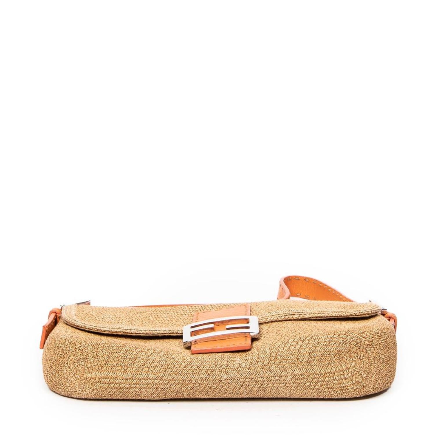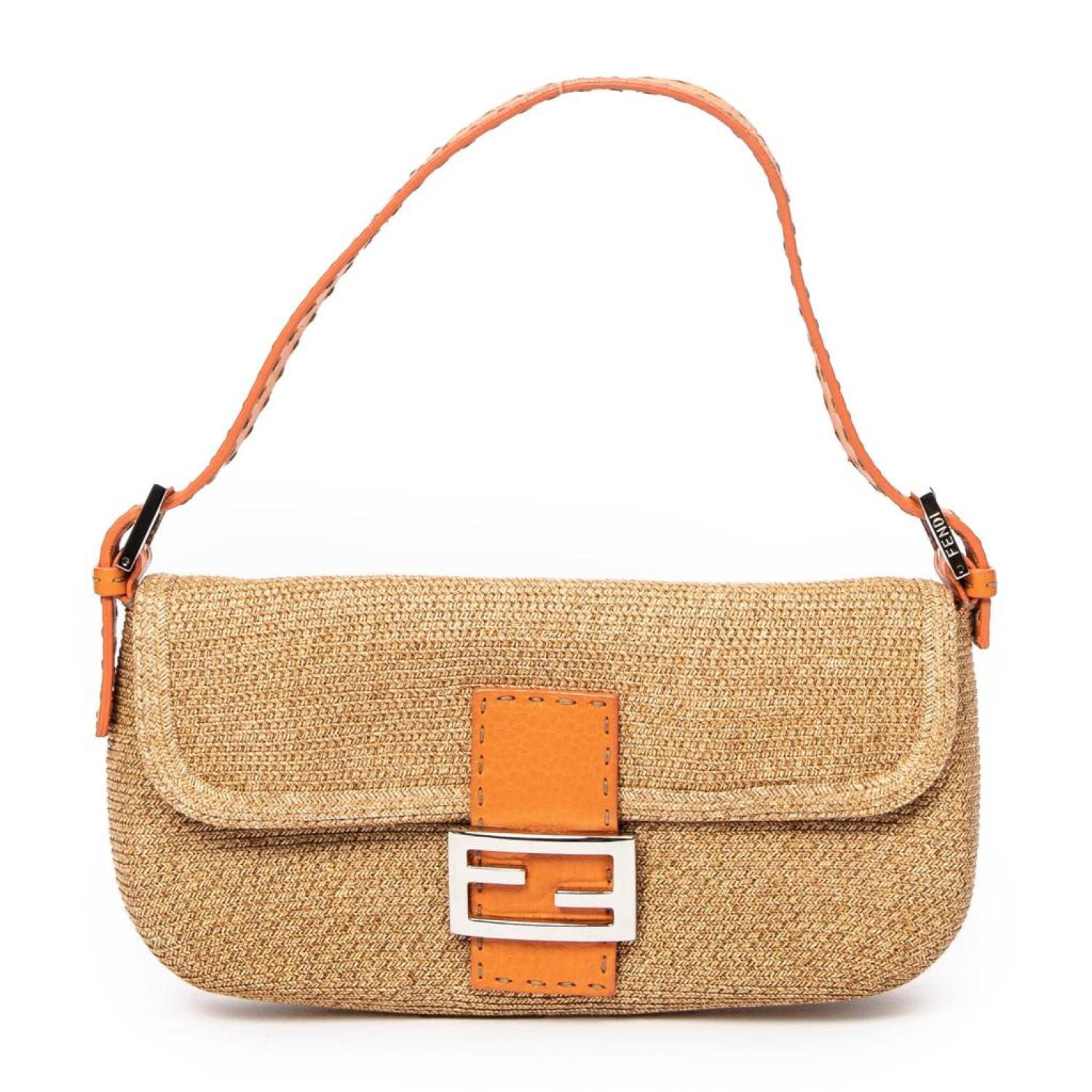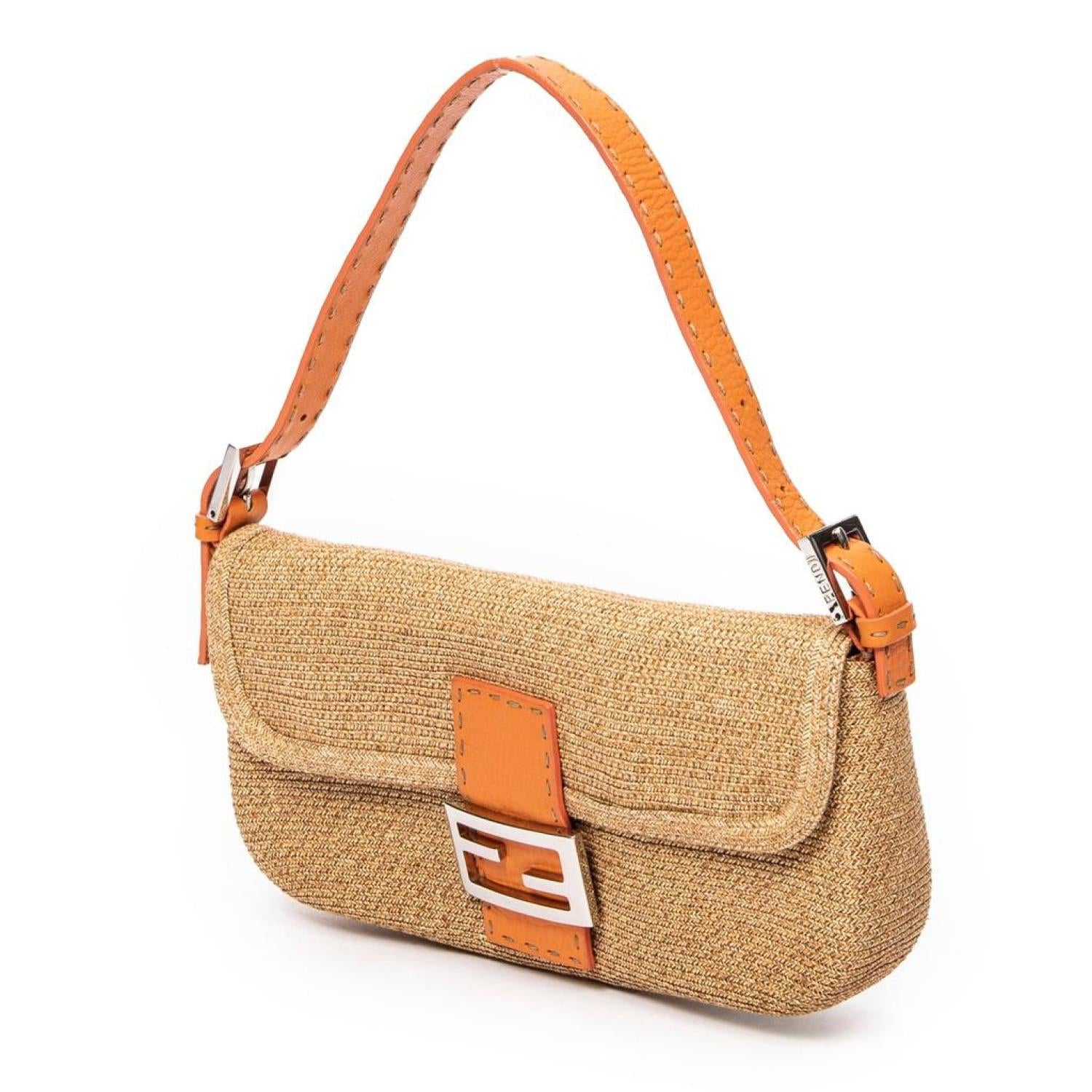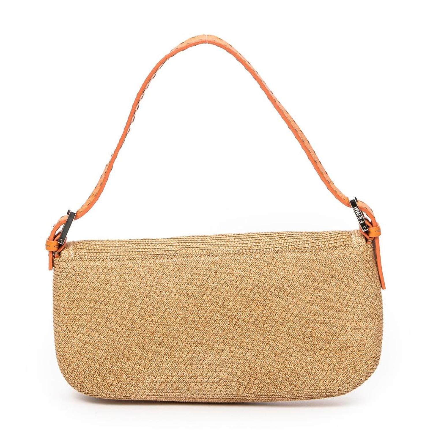 • Fendi Shoulder Bag in Tan/Orange Straw Woven Canvas and Silver hardware. Dimensions - 26*13*5cm. Serial number - 8BR101. Inclusions - None.