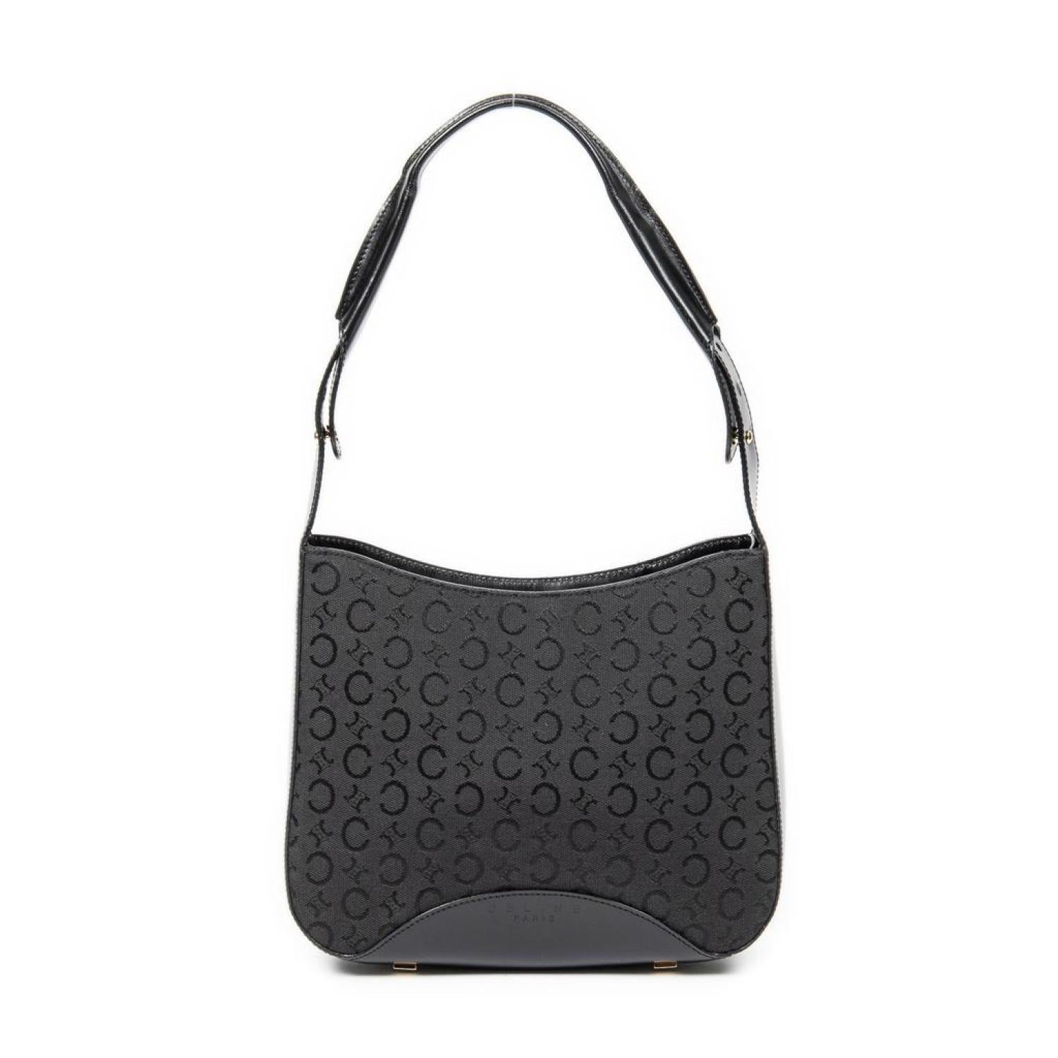 Celine Shoulder Bag in Black C Macadam Canvas and Gold hardware. Dimensions - 26*22*7cm. Serial number - MC99/1. Inclusions - dustbag.