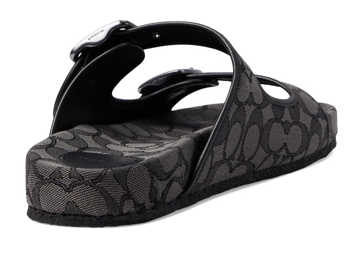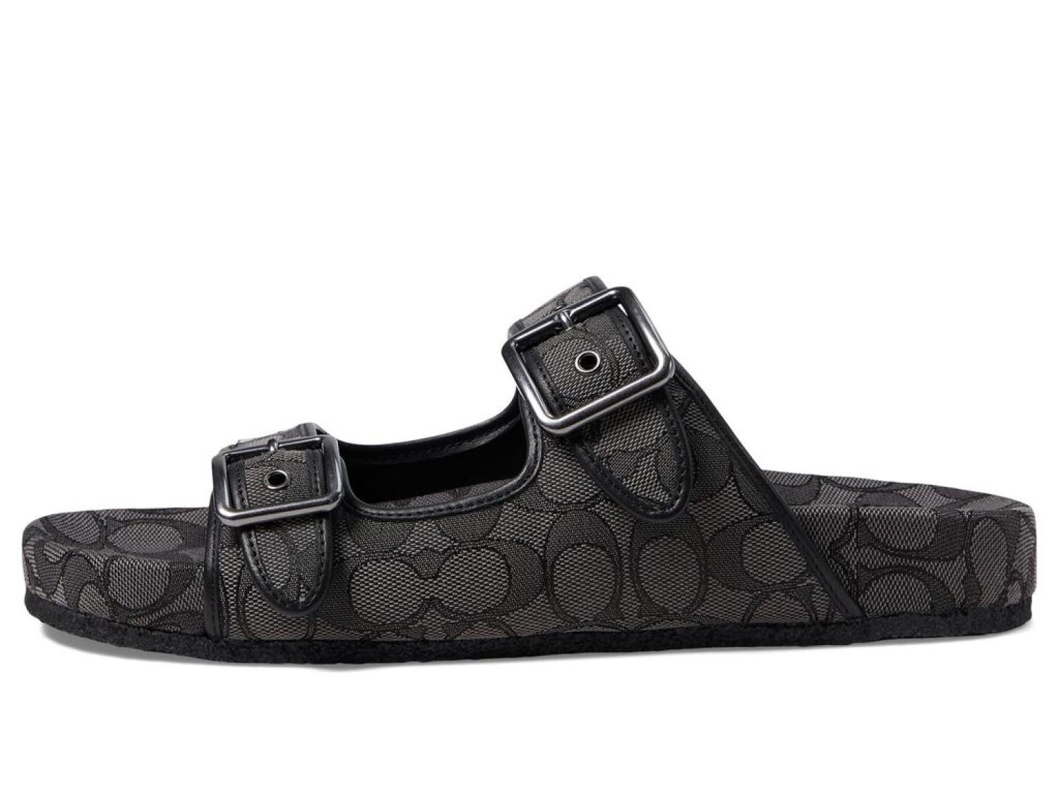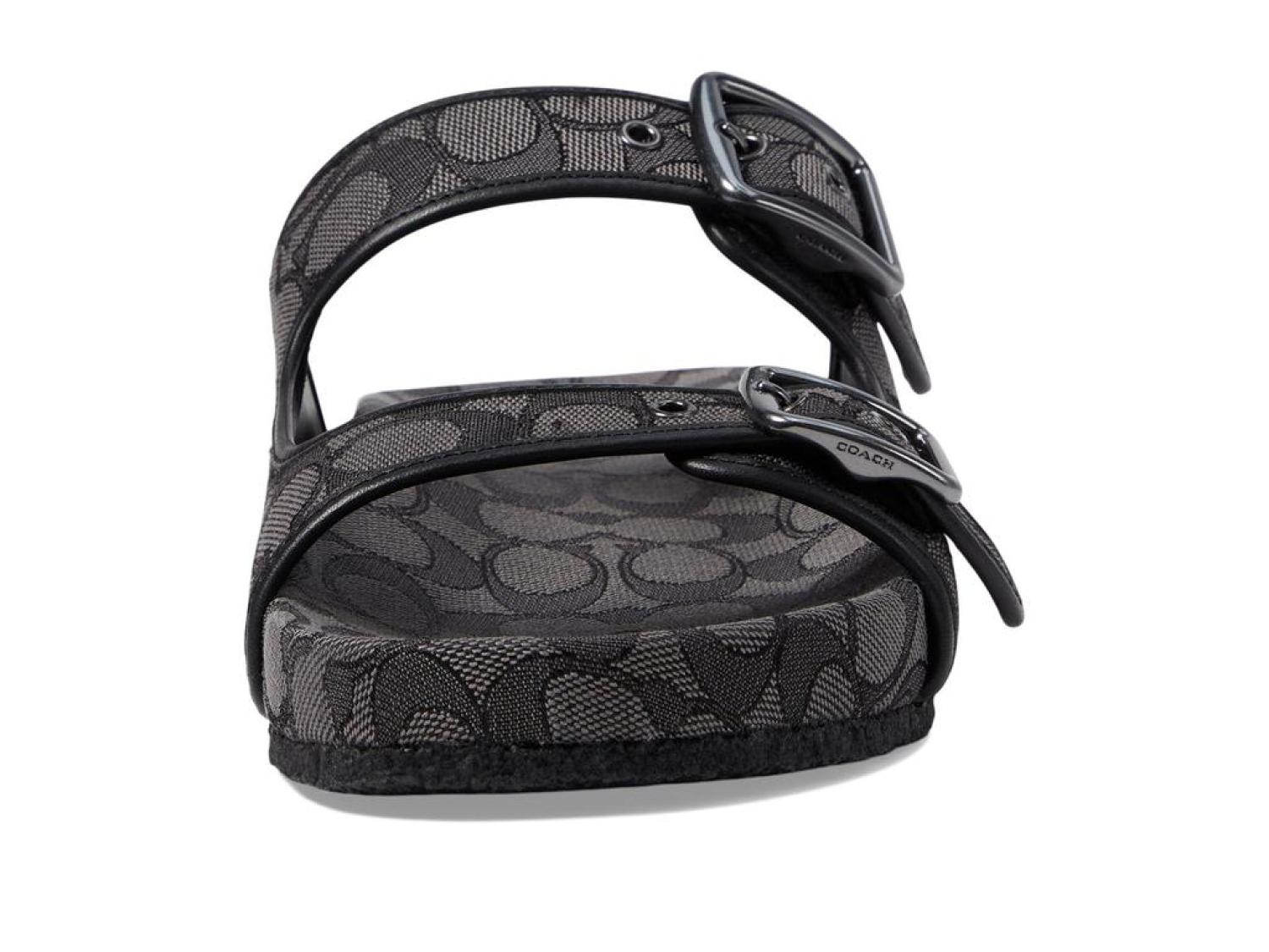 Please Note: COACH™ items cannot be shipped to military addresses (APO or FPO) and addresses in Hawaii, the Virgin Islands, Guam or any other locations outside of the continental US. The COACH™ Signature Buckle Strap Sandal has leather and textile upper. It features dual adjustable buckle detailing, slip-on construction, and brand detailing on the footbed. The cold padding design helps to reduce pain and tenderness. Textile lining and insole. Allover iconic print. Open round toe design. Synthetic outsole. Imported. Product measurements were taken using size 10, width D - Medium. Please note that measurements may vary by size. Measurements: Weight: 12 oz