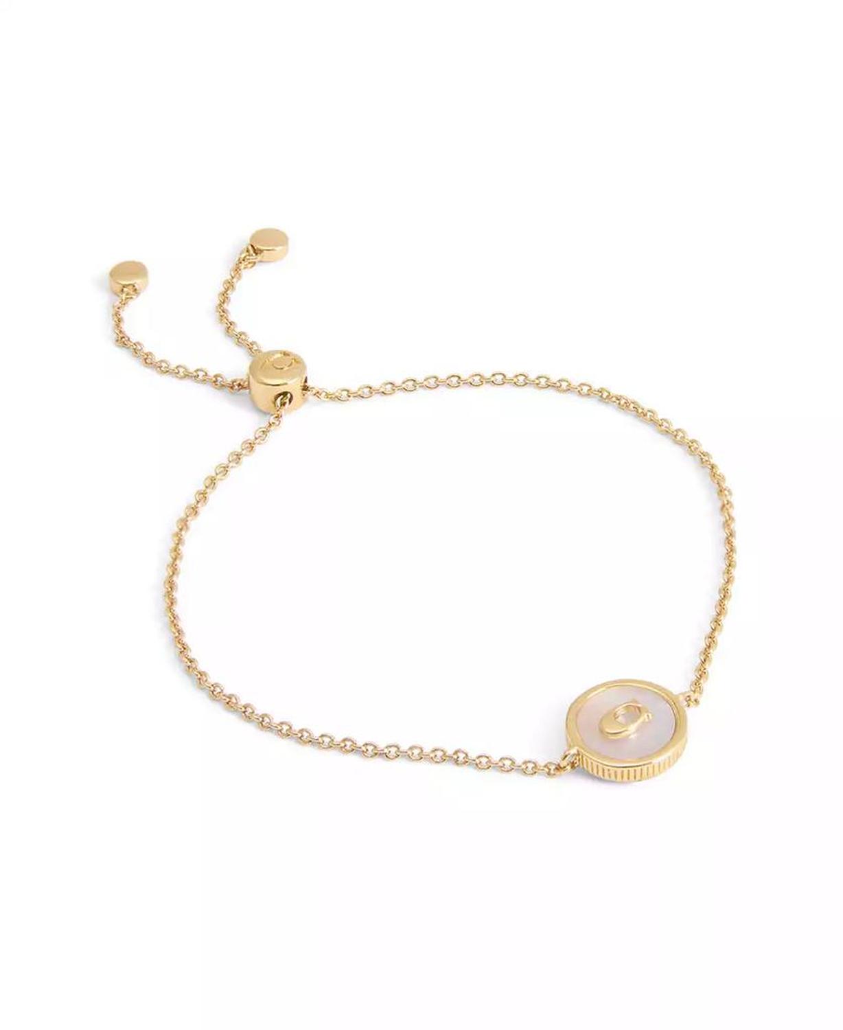 • Refined chain slider bracelet featuring dreamy mother of pearl coin adorned with signature sculpted C motif at center.