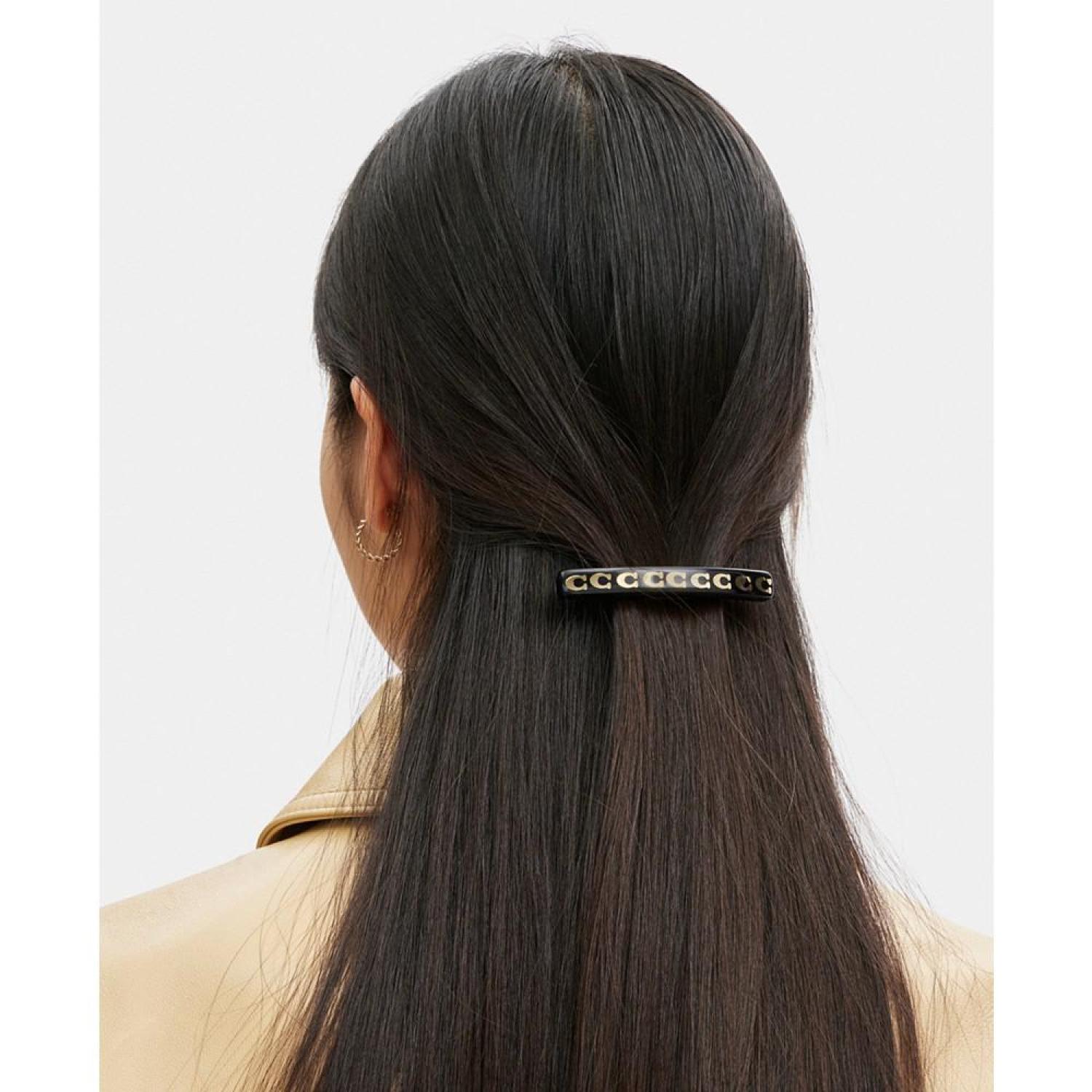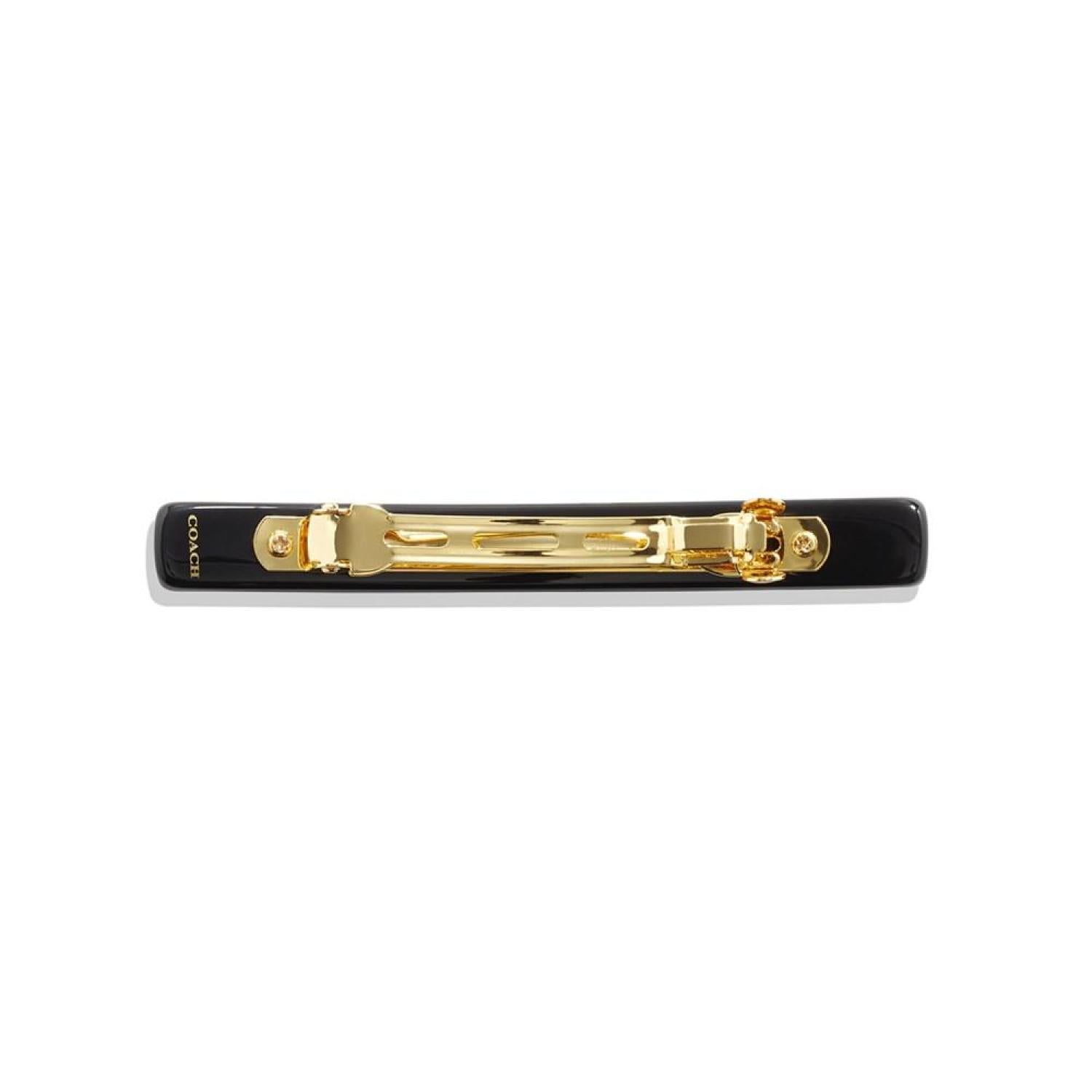 Striking black resin thin barrette featuring signature sculpted C motif perfect for everyday. Set in gold-tone over brass and resin Approx. length - 3.1" Approx. width - 0.4" Clip closure Includes COACH pouch This item purchased online must be returned to the vendor by mail only. This item cannot be returned to Macy's stores. Wipe Clean Imported