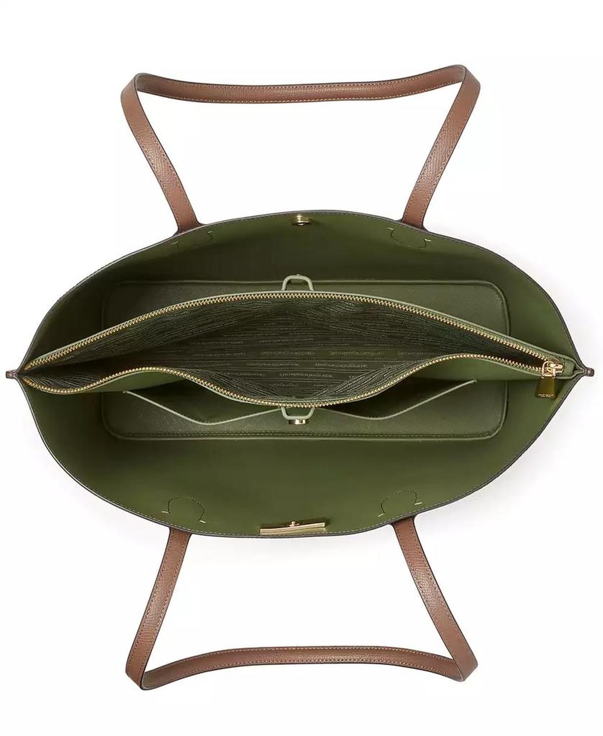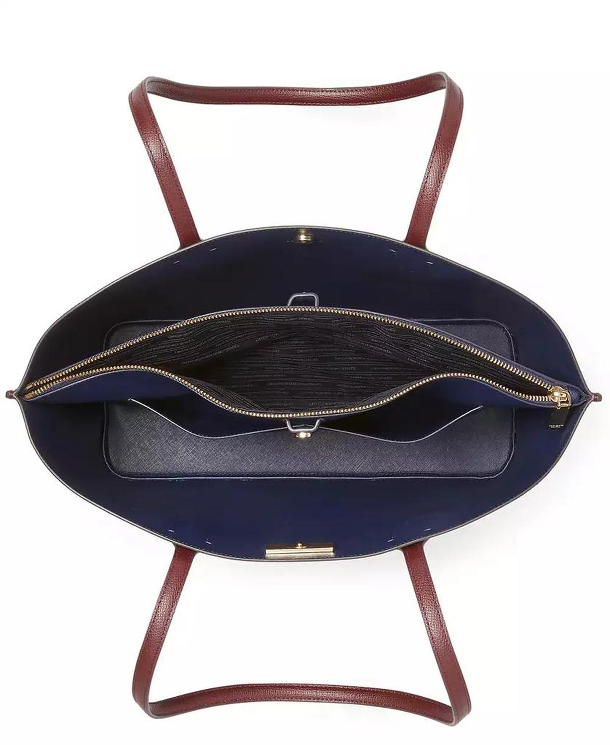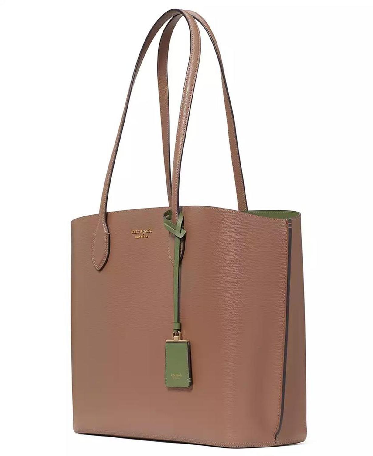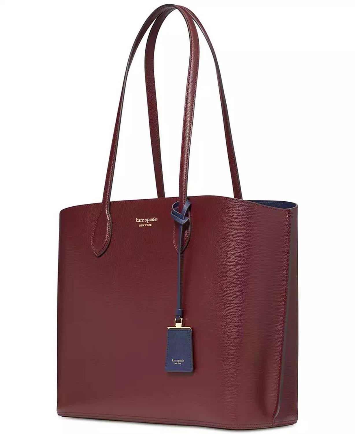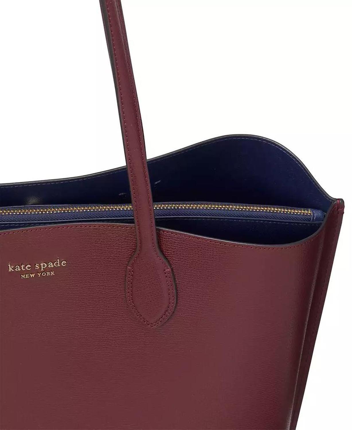 Bring your A-game to work with the new Suite tote by kate spade new york . It's made from durable crossgrain leather and holds everything you need for the day. It's the chic and practical essential you've been looking for! Large sized bag; 12"W x 14-1/5"H x 5-2/5"D (width is measured across the bottom of handbag); 1 lbs. approx. weight Silhouette is based off 5'9" model 11-1/2"L top handles Magnetic snap closure Pale gold-tone hardware, luggage tag & logo Interior center zip compartment Leather Spot clean Imported
