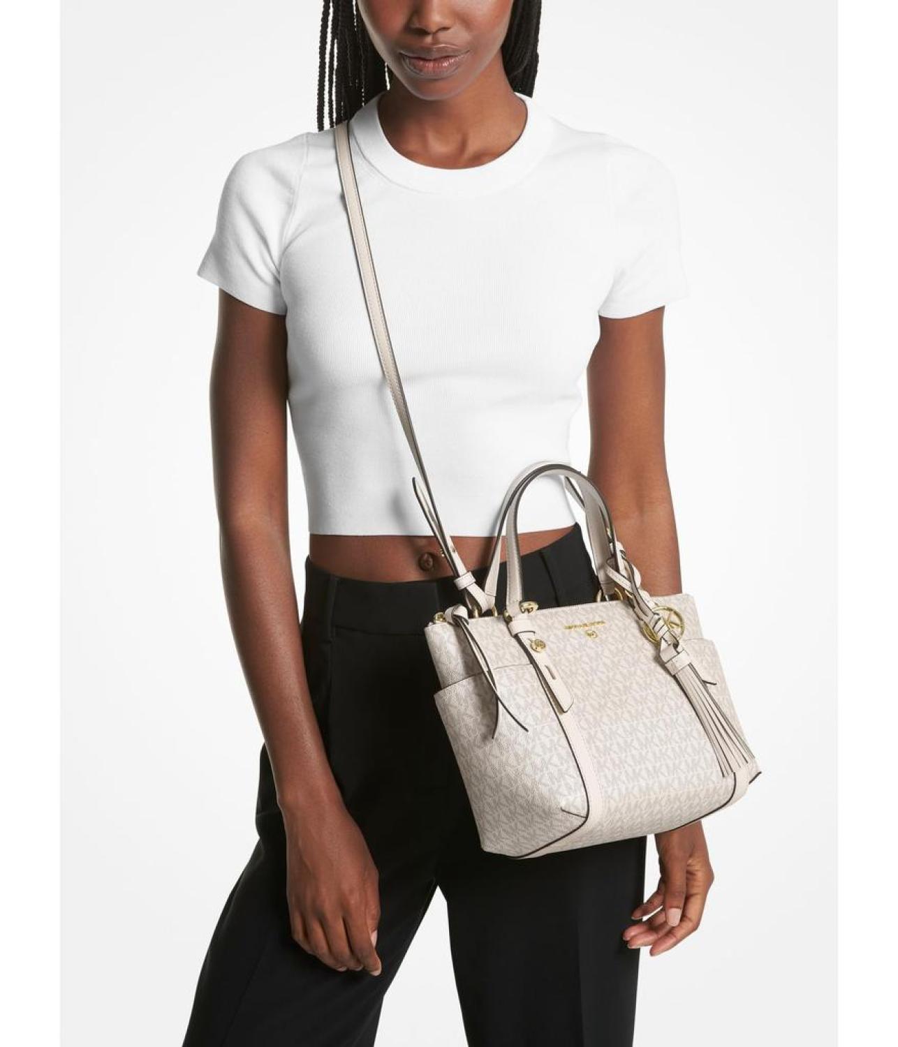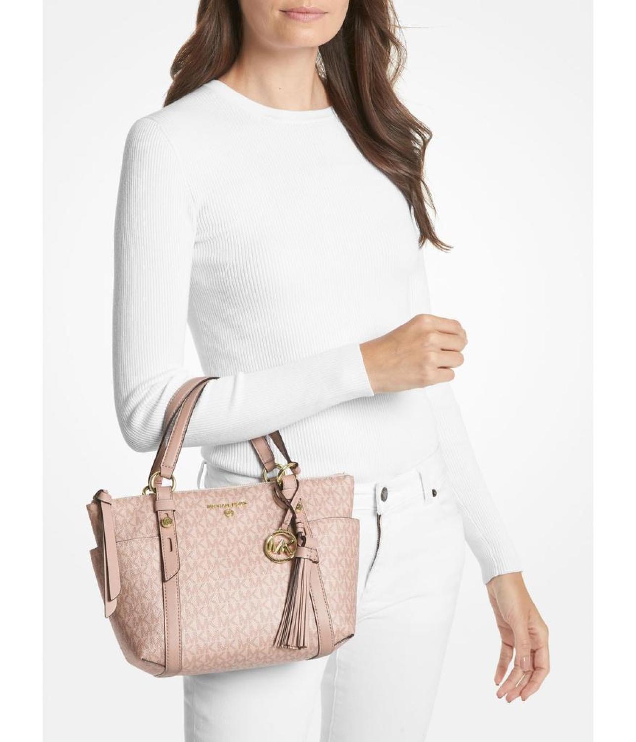Carry the elegant MICHAEL Michael Kors® Sullivan Small Convertible Top Zip Tote handbag for work or casual travel, and make your day convenient. The bag features adjustable and convertible top handles. A zip closure makes the contents secure, providing convenience for travel.