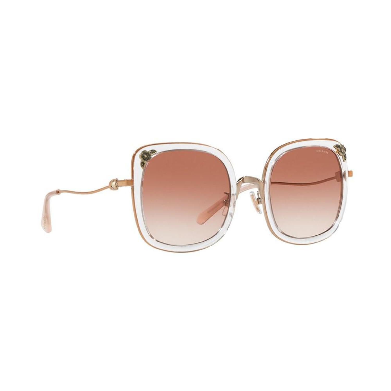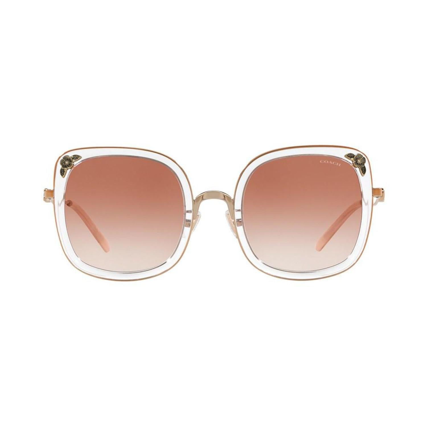 Coach Eyewear is a quality lifestyle accessory offering classic American design and functionality. The Coach Eyewear Collection consists of modern designs with trend-right frames and lens colors developed to match every face tone. Lenses are made from the highest-quality materials, provide 100% UV protection, and are optically correct and distortion free. A Coach signature grommet is at the end of each frame's temple tip. Each Coach sunglass style features a logo treatment based on one of four primary logo collections. Gender: FEMALE Frame Style: SQUARE Frame Fit: LARGE Lens Feature: GRADIENT Lens Material: POLYAMIDE Eye/Bridge/Temple: 53/23/140 Case or Microfiber pouch included