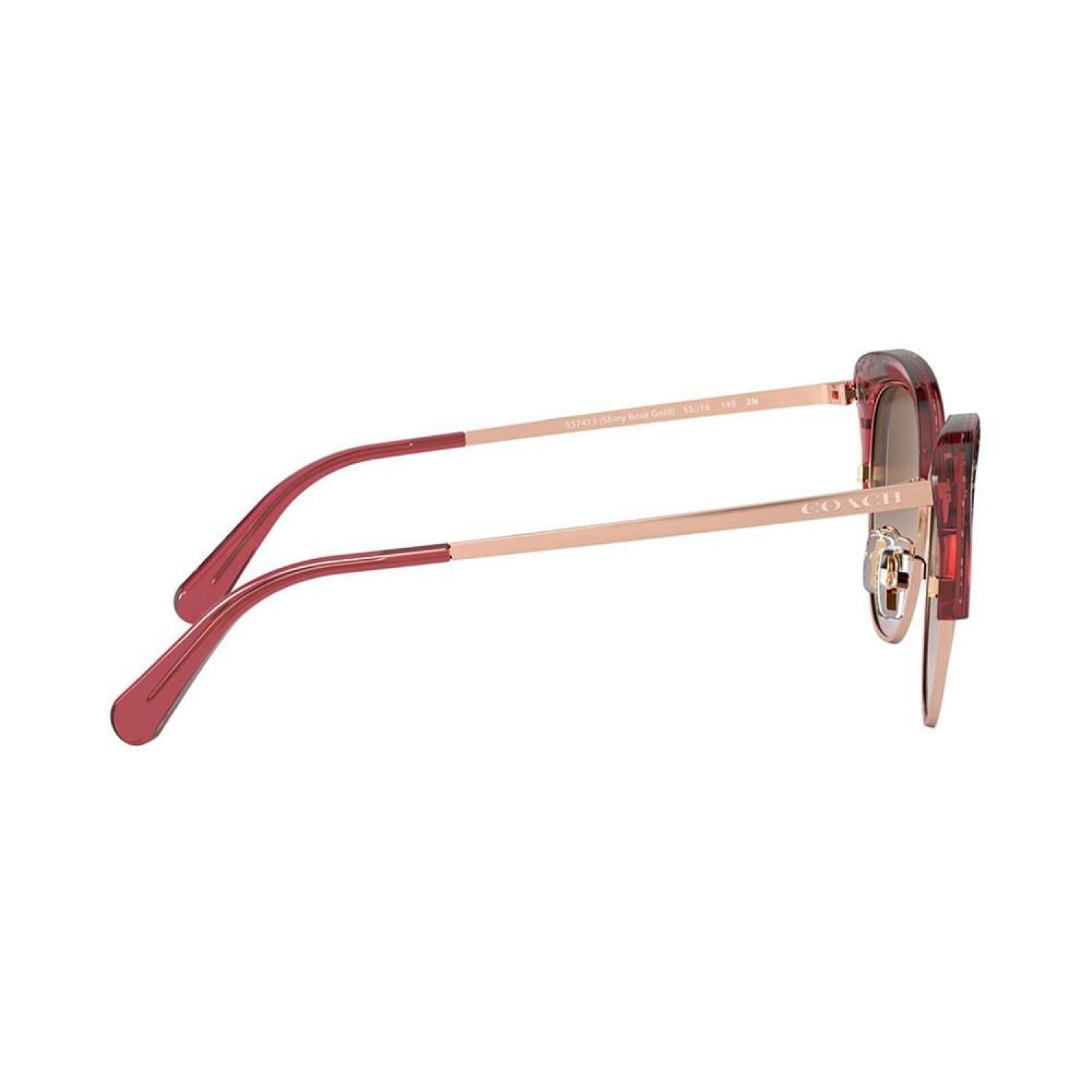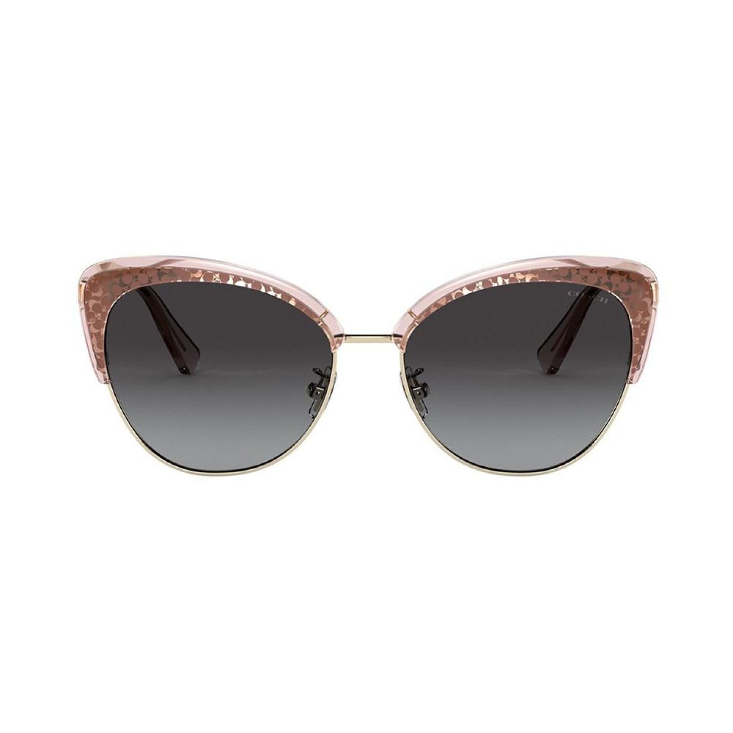 Coach Eyewear is a quality lifestyle accessory offering classic American design and functionality. The Coach Eyewear Collection consists of modern designs with trend-right frames and lens colors developed to match every face tone. Lenses are made from the highest-quality materials, provide 100% UV protection, and are optically correct and distortion free. A Coach signature grommet is at the end of each frame's temple tip. Each Coach sunglass style features a logo treatment based on one of four primary logo collections. Gender: FEMALE Frame Style: CAT EYE Frame Fit: STANDARD Lens Feature: GRADIENT Lens Material: POLYAMIDE Eye/Bridge/Temple: 55/16/145 Case or Microfiber pouch included