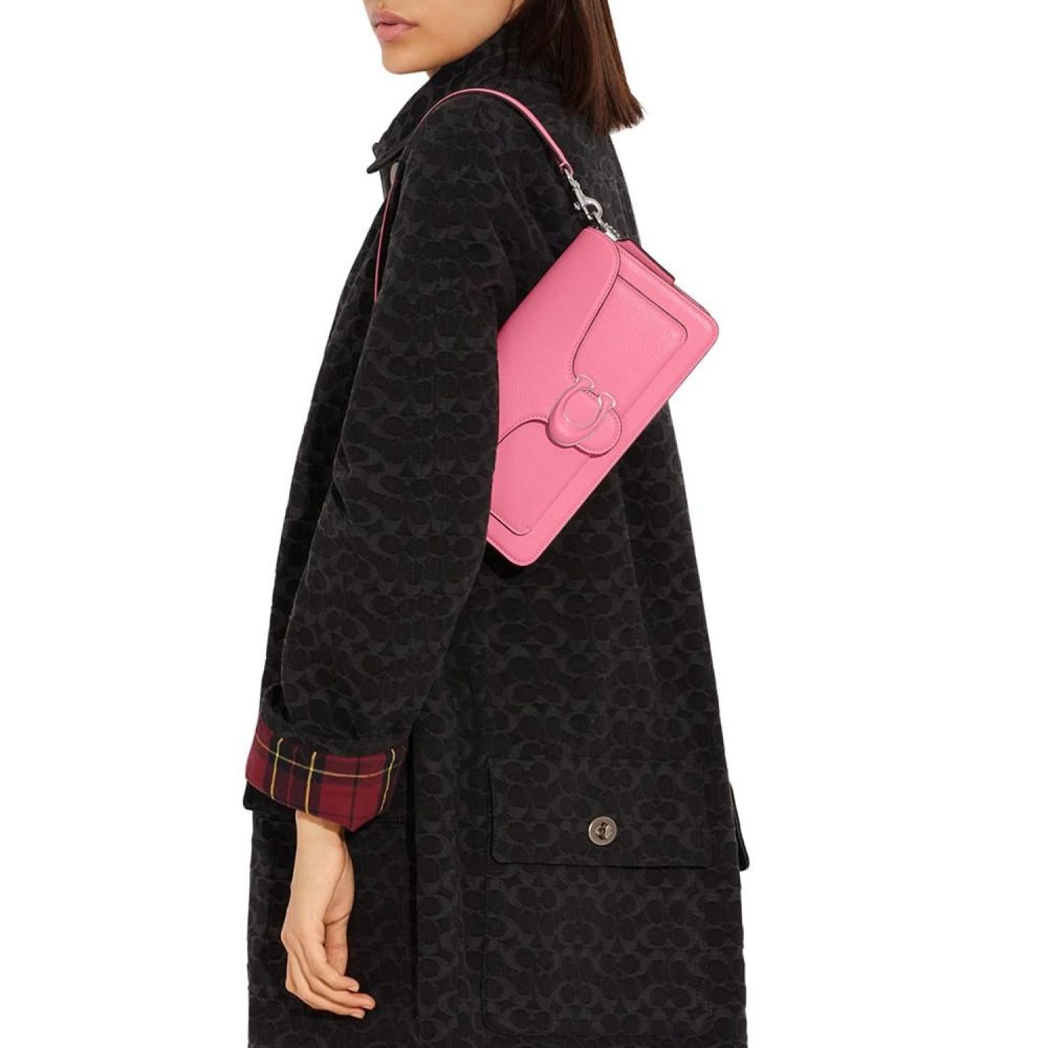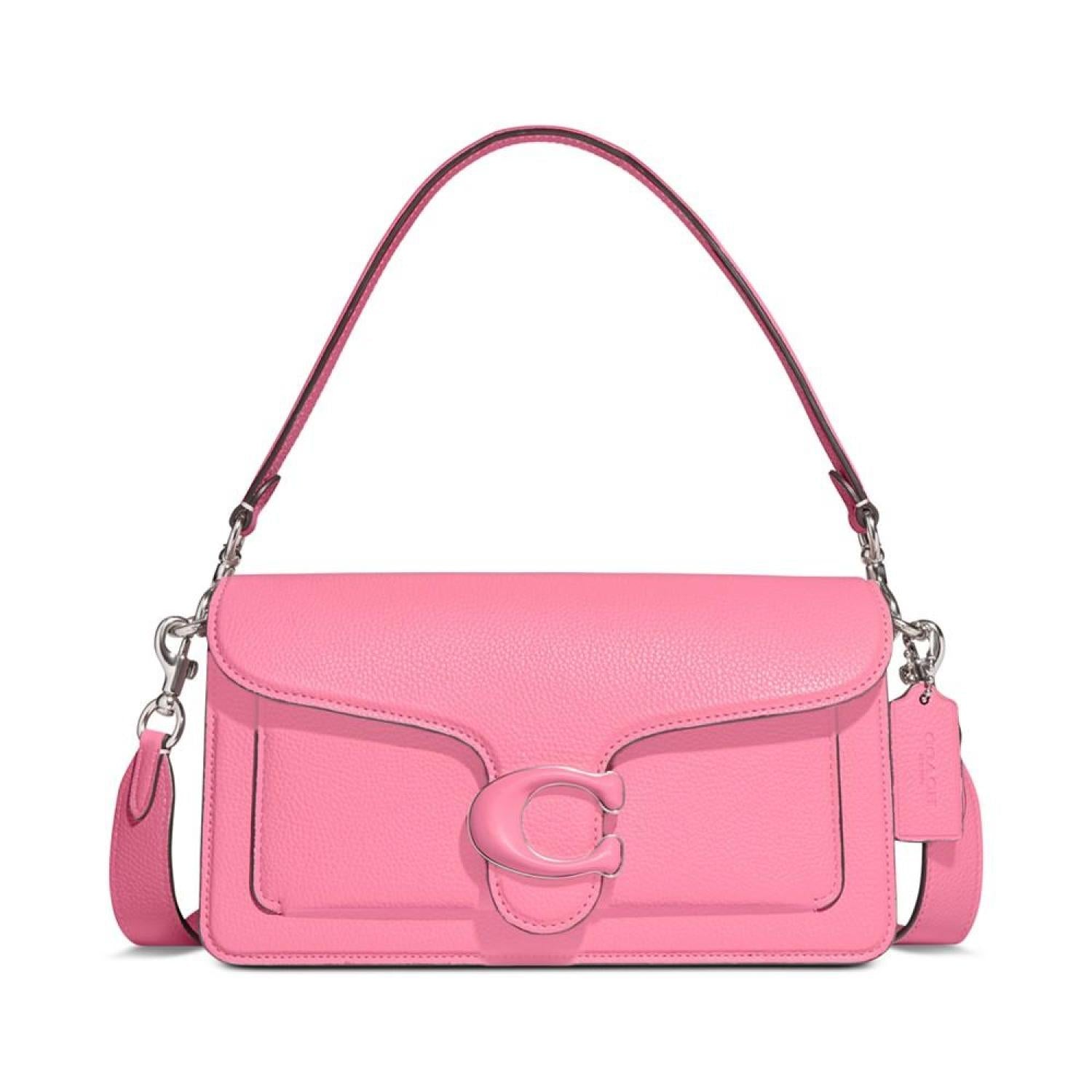 Polished and timeless, add a contemporary sophistication to any look with the Tabby 26 Polished Pebble Medium Leather Shoulder Bag by COACH. Small sized bag; 10-1/4"W x 6"H x 3-1/4"D (width is measured across the bottom of handbag); 1.81 lbs. approx. weight Silhouette is based off 5'9" model 7"L removable handle; 21"L removable crossbody strap Snap closure Gold-tone hardware Interior center zip compartment & slip pocket Leather Professional leather clean Imported