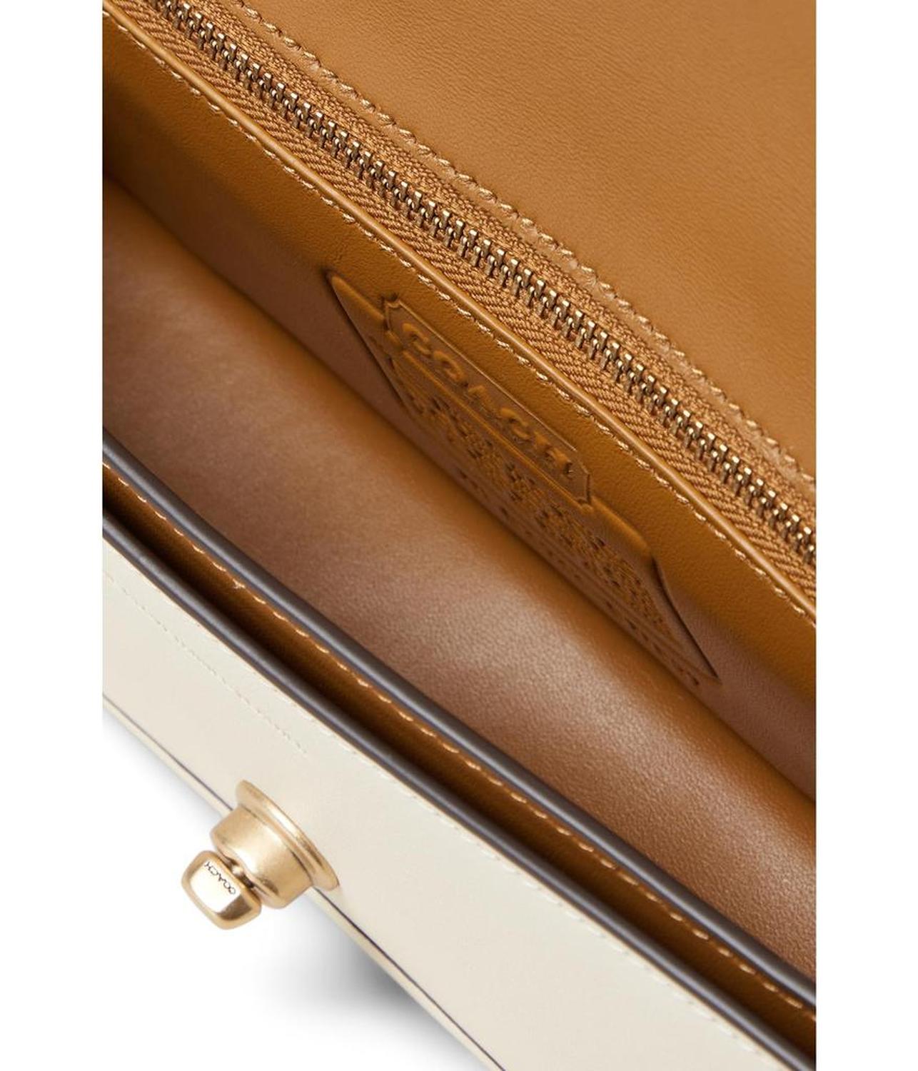 The Coach™ Originals Glovetanned Leather Dinky Bag with Chain Strap is the epitome of chic sophistication. Crafted from luxurious glove-tanned leather material, this bag features a convenient fold-over flap with a magnetic snap closure for easy access. The detachable chain crossbody strap allows for versatile styling options, while the zippered interior pocket keeps your essentials organized and secure.