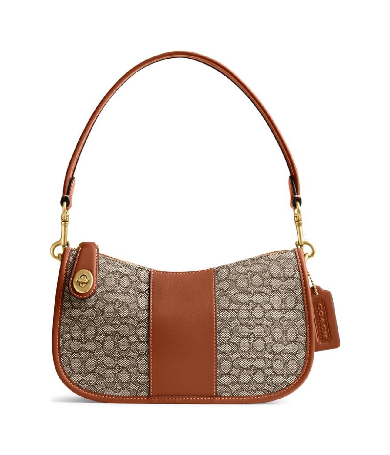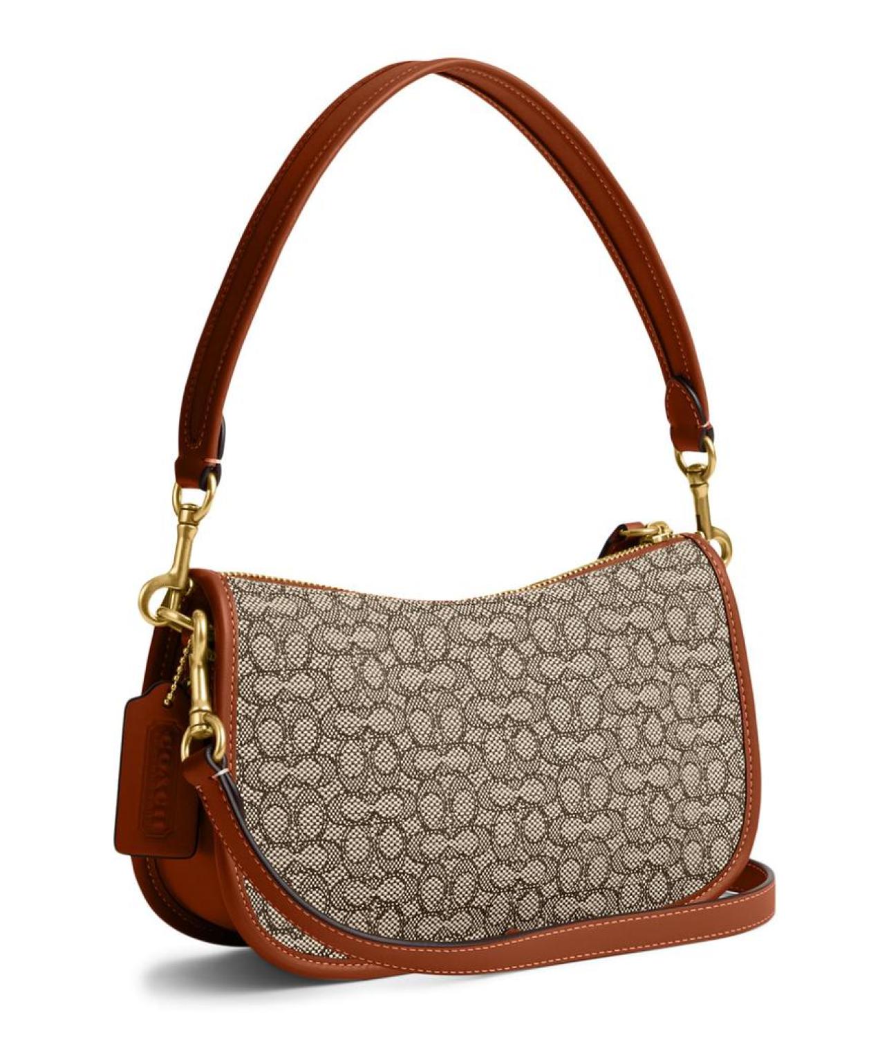 Get ahead of the game carrying this beauty! The COACH® The Coach Originals Mini Signature Jacquard Swinger Handbag comes with an adjustable shoulder strap for easy carrying. The zippered closure offers a secure fit.