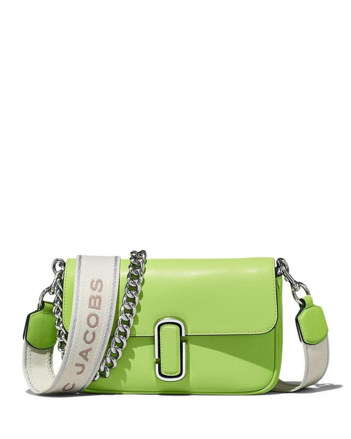 Removable chain shoulder strap, 10.6" drop Second adjustable, removable logo web strap, 26.8" drop Dimensions: 9.7"W x 1.8"D x 6.3"H Top flap with magnetic closure One exterior back slip pocket, one interior slip pocket, one interior zip pocket Lined This item is part of SUMMER OF MARC , our new pop-up shop featuring the ultimate pool party essentials, curated by Marc Jacobs. Polyurethane-coated leather outer, polyester lining Imported Web ID: 4365315
