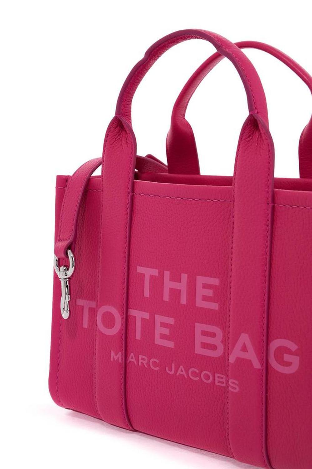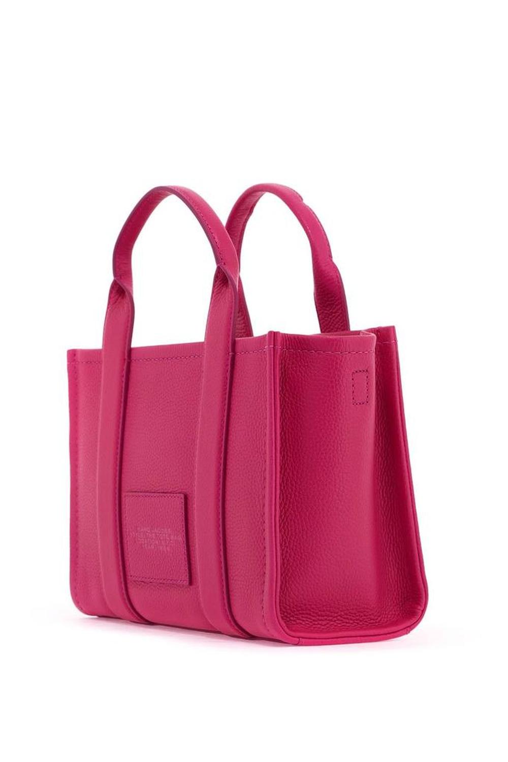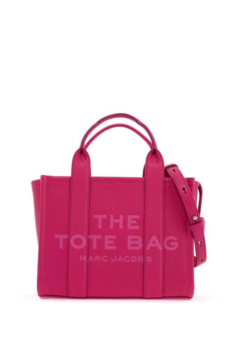 • The Leather Small Tote Bag by Marc Jacobs in grained leather, featuring double top handle, adjustable and removable shoulder strap, front debossed logo, back leather logo patch, zip closure and side handle. Leather interior with a fabric open flat pocket. Silver-finished metalware.
