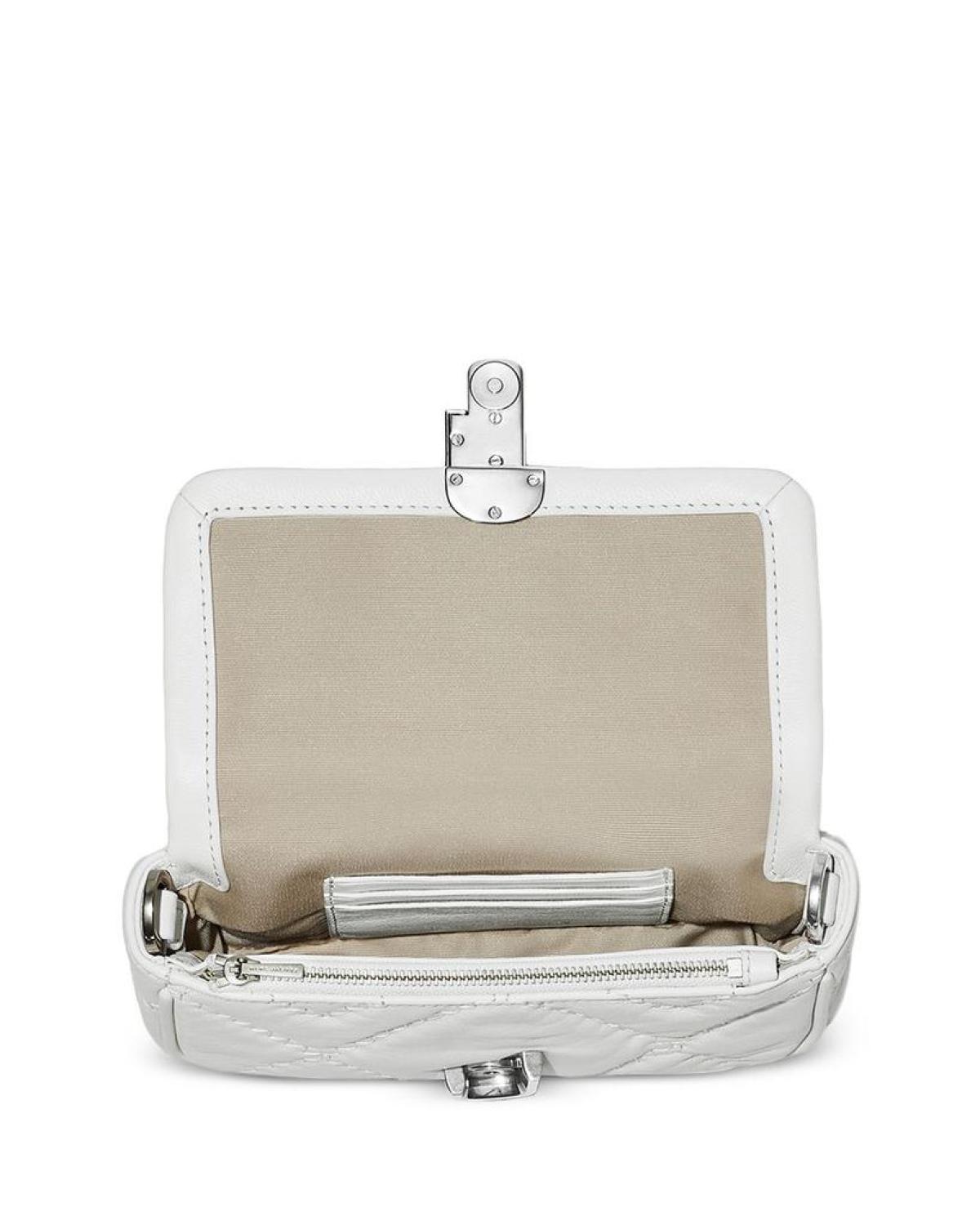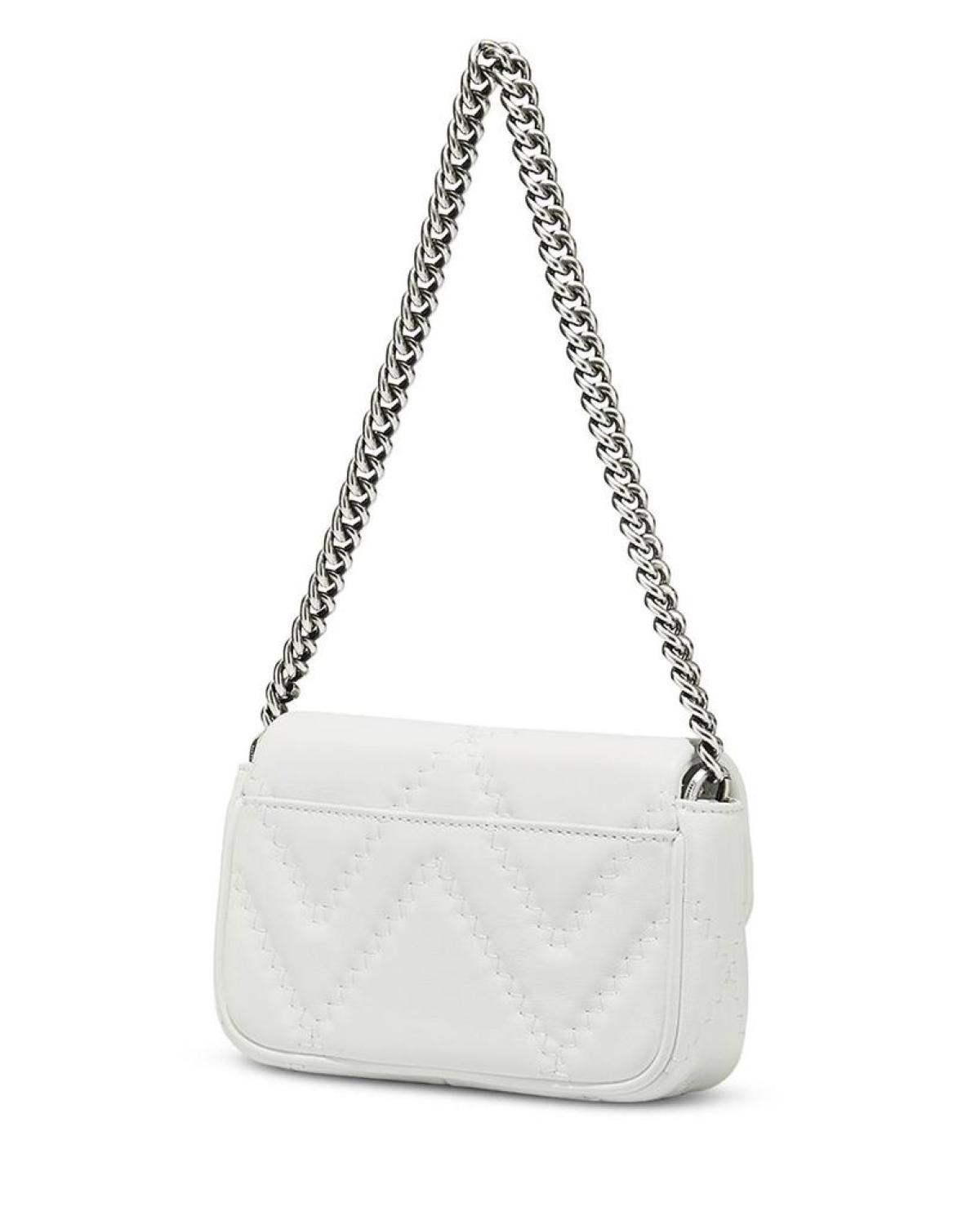 Removable chain shoulder strap, 9.45" drop Removable leather crossbody strap, 23" drop 7.48"W x 1.97"D x 4.53"H Magnetic flap closure Exterior slip pocket Three interior card slots, one interior zip pocket Quilted diamond design with signature logo detail Silver-tone hardware Lined Leather Imported Web ID: 4658675