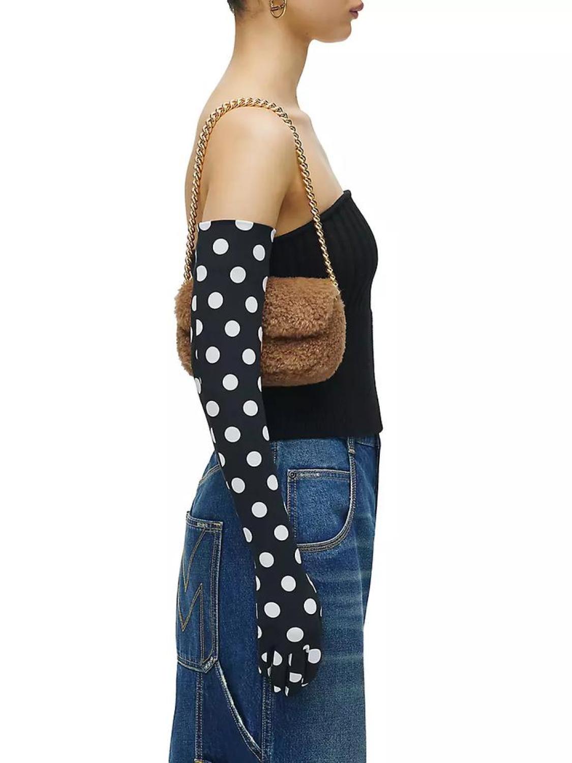 Crafted of teddy fabric, this mini shoulder bag from Marc Jacobs is finished with signature J Marc hardware.Removable chain strapAdjustable, removable leather strapInterior: one zip pocket, one card slotIncludes dust bagMagnetic closure100% polyesterLining: 100% polyesterImportedSIZEAbout 7.75"W x 5"H x 4"DRemovable chain strap: about 9" dropAdjustable, removable leather strap: about 24" drop