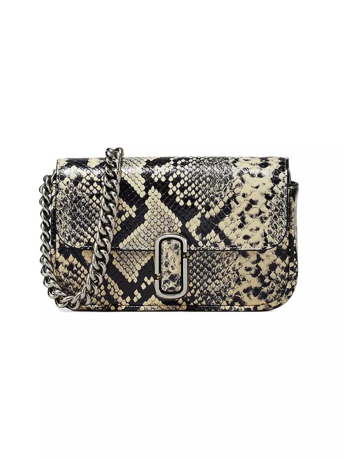 • The mini J Marc shoulder bag from Marc Jacobs is rendered in snake-embossed leather. This convertible style can be worn on the shoulder, crossbody, or as a clutch.