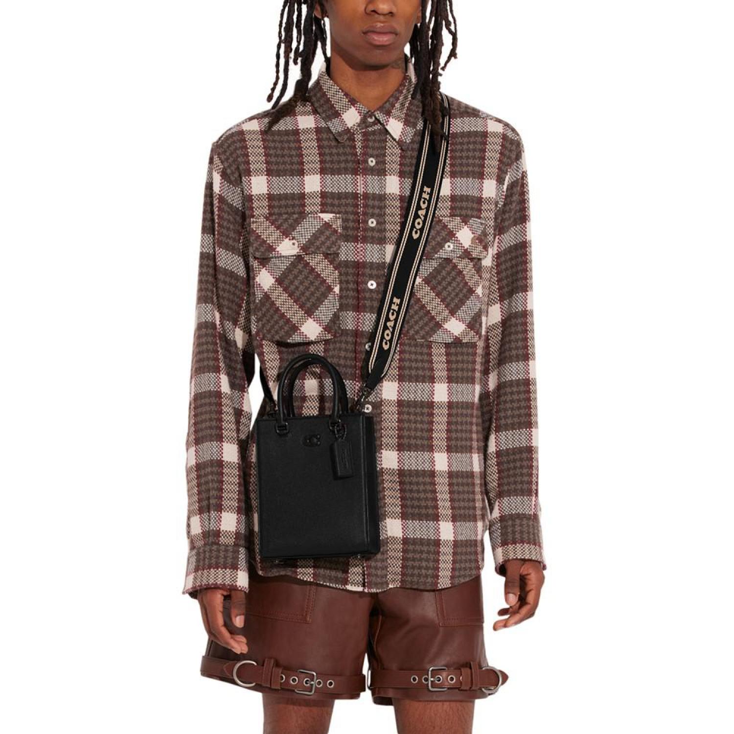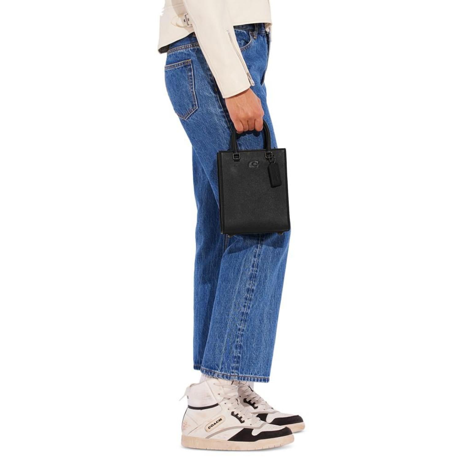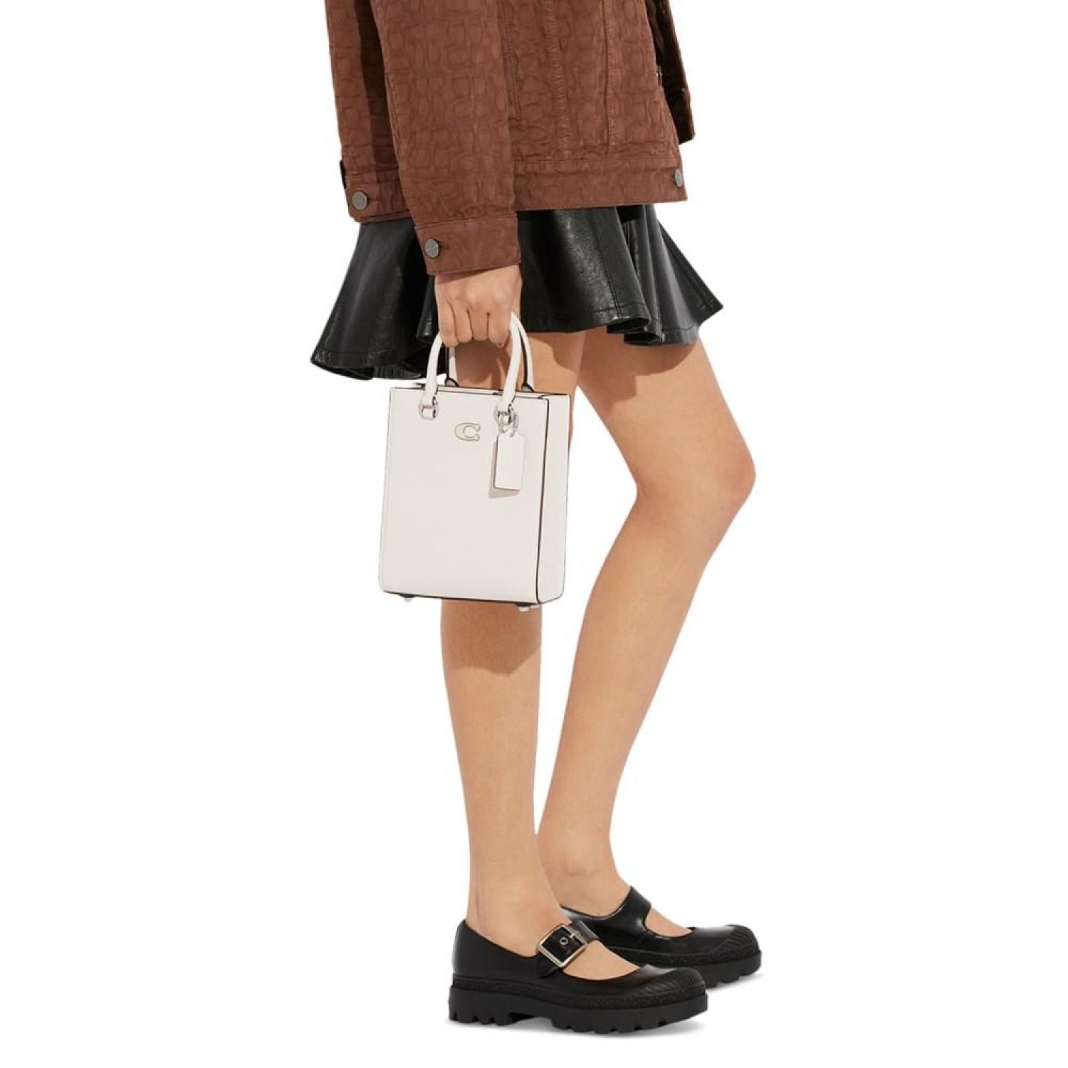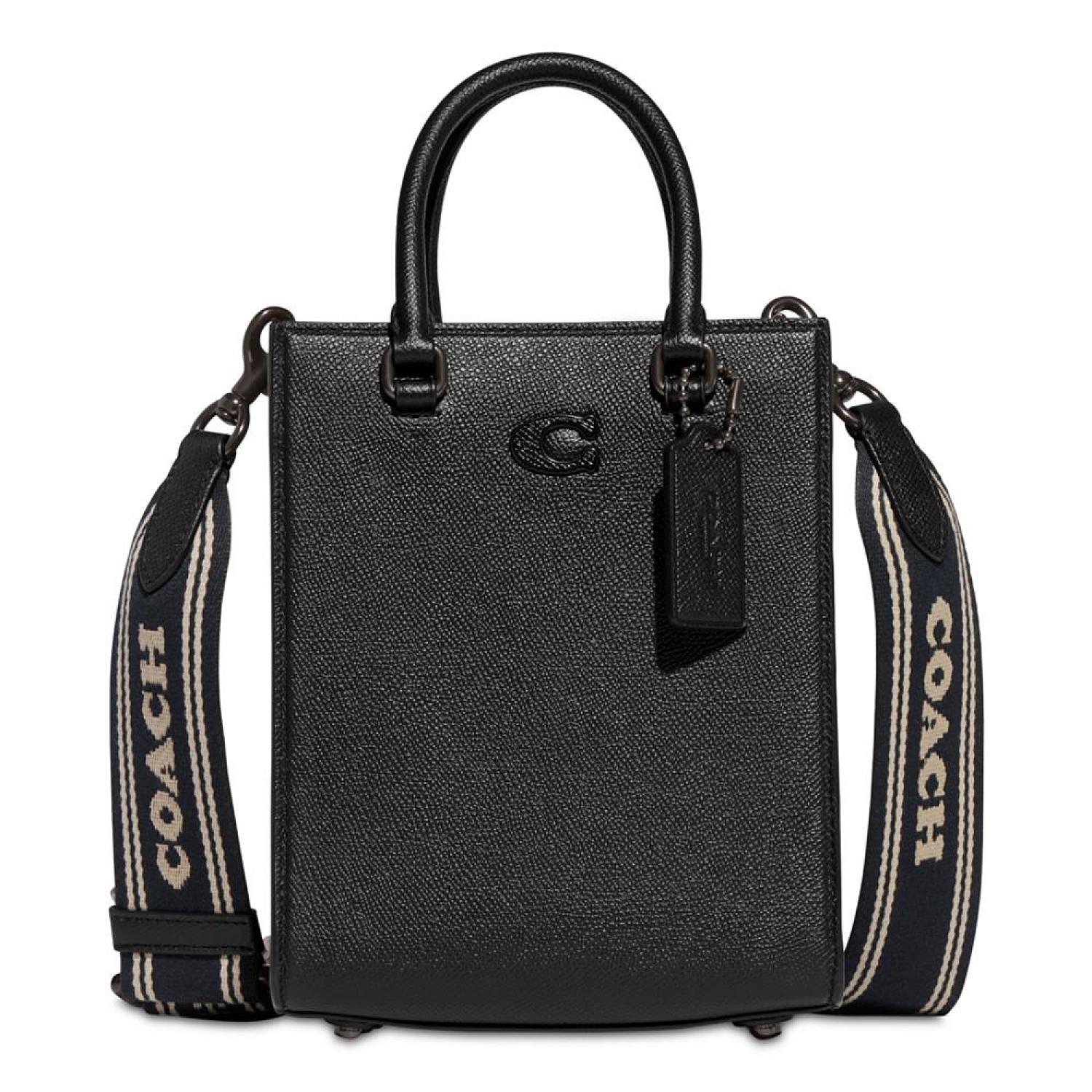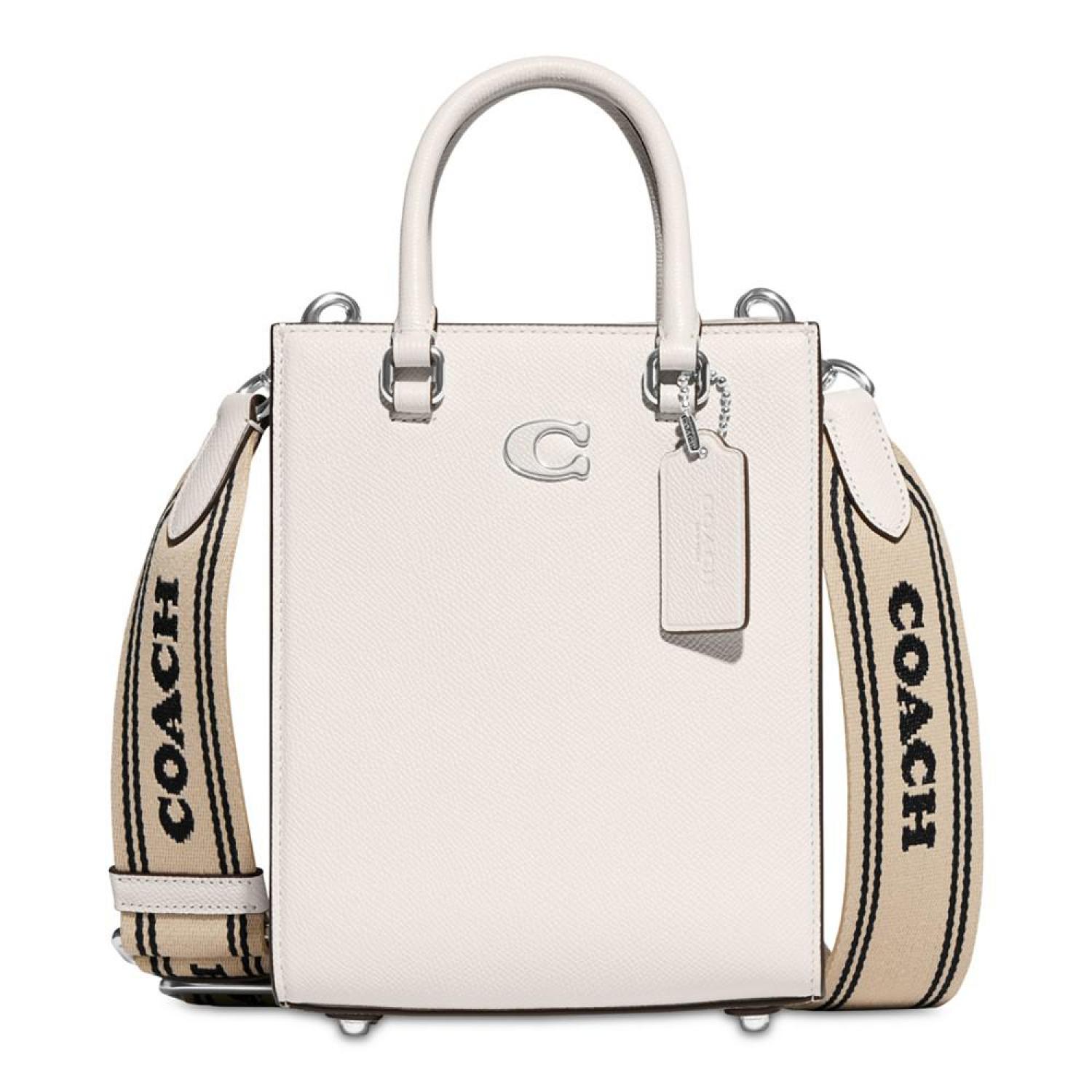 Easily go from day to night with this versatile tote by COACH featuring a structured silhouette and multiple straps to switch up your look. Mini sized bag; 6-1/4"W x 7-3/4"H x 3-1/4"D (width is measured across the bottom of handbag); 1.35 lbs. approx. weight Silhouette is based off 5'9" model 3-1/4"L handles; 21-1/2"L removable strap; 25"L removable webbing strap Magnetic snap closure Silver-tone hardware & metal feet at base Interior multifunction pockets Leather; lining: polyester Spot clean Imported