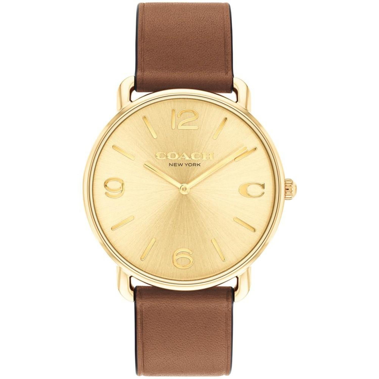 With clean lines and a modern minimalist sensibility, the Elliot is a true design classic ready for workdays and weekends. Finished with a saddle leather strap, this gold-tone round watch features a sunray dial. SKU style #14602646.