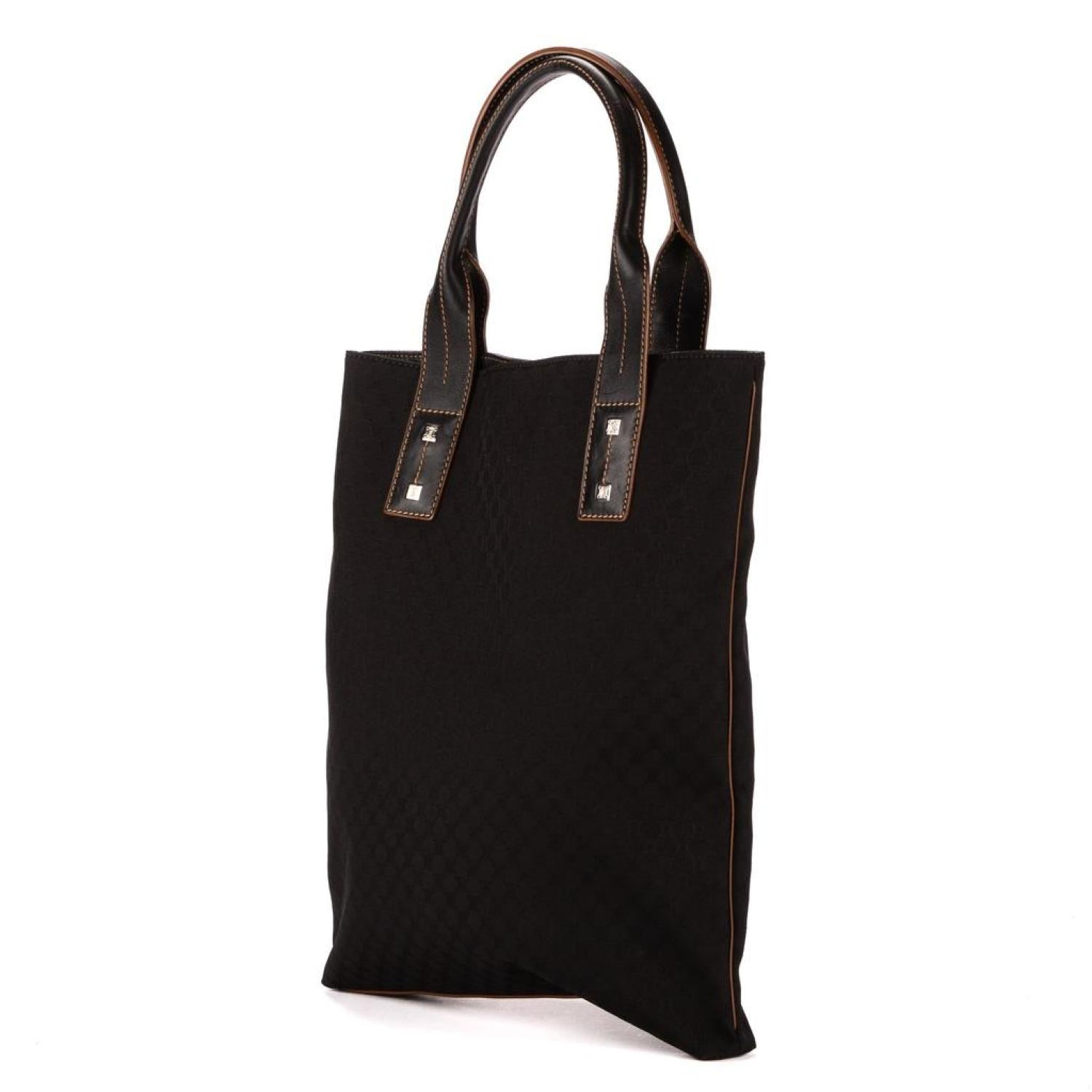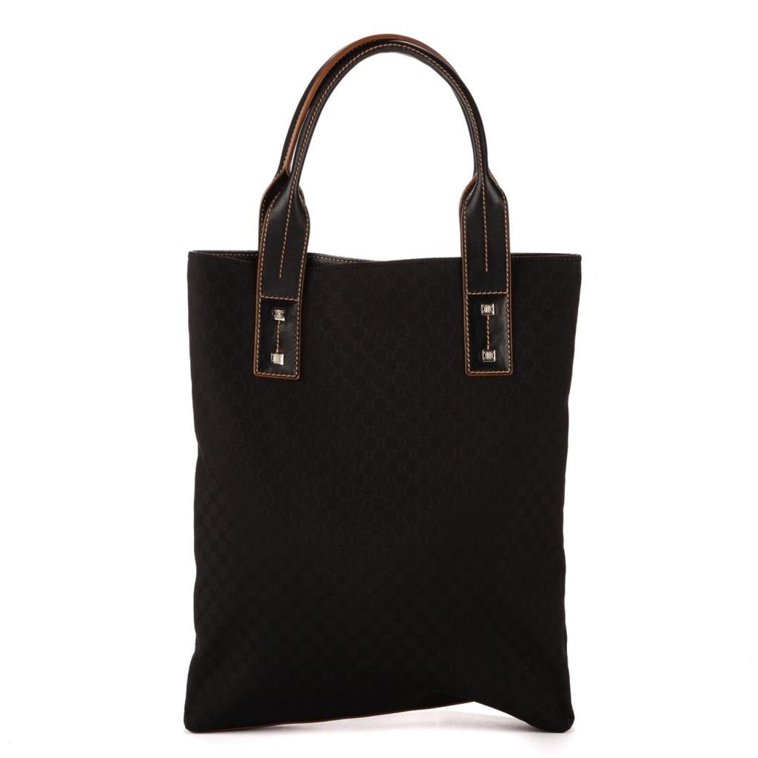 Celine Handbag in Black Monogram Nylon and Silver hardware. Dimensions - 32*36*3cm. Serial number - ST00/46. Inclusions - NONE.