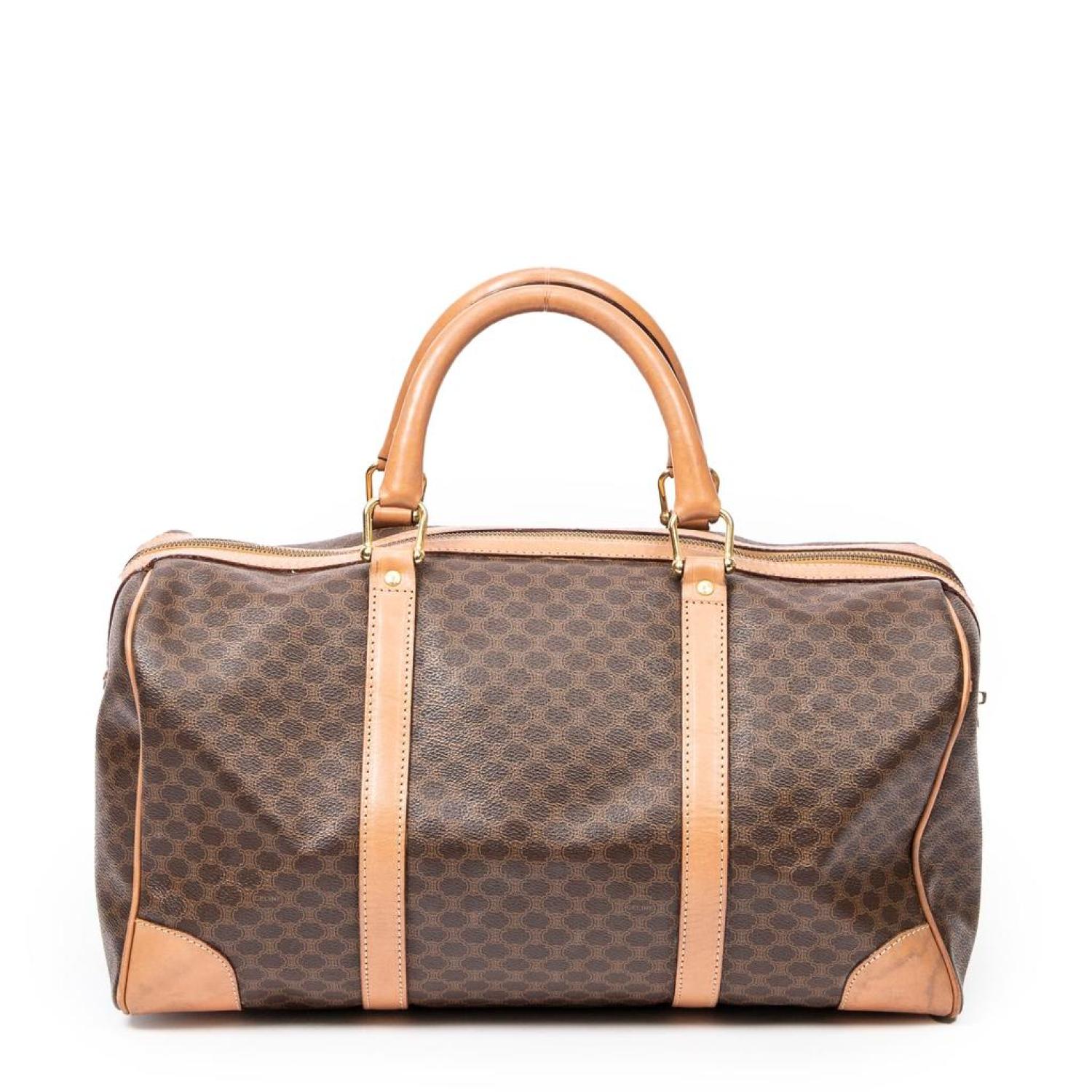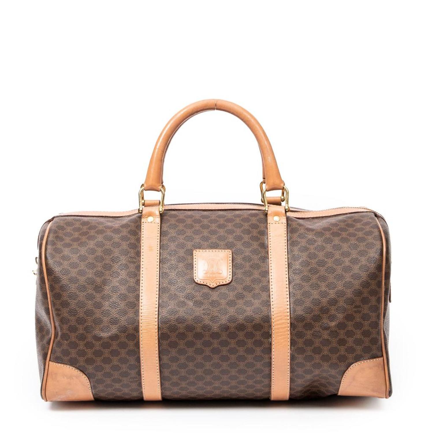 • Celine Handbag in Brown/Tan Macadam Coated Canvas and Gold hardware. Dimensions - 40*21*22cm. Serial number - M14. Inclusions - "cadenas, keys in clochette".