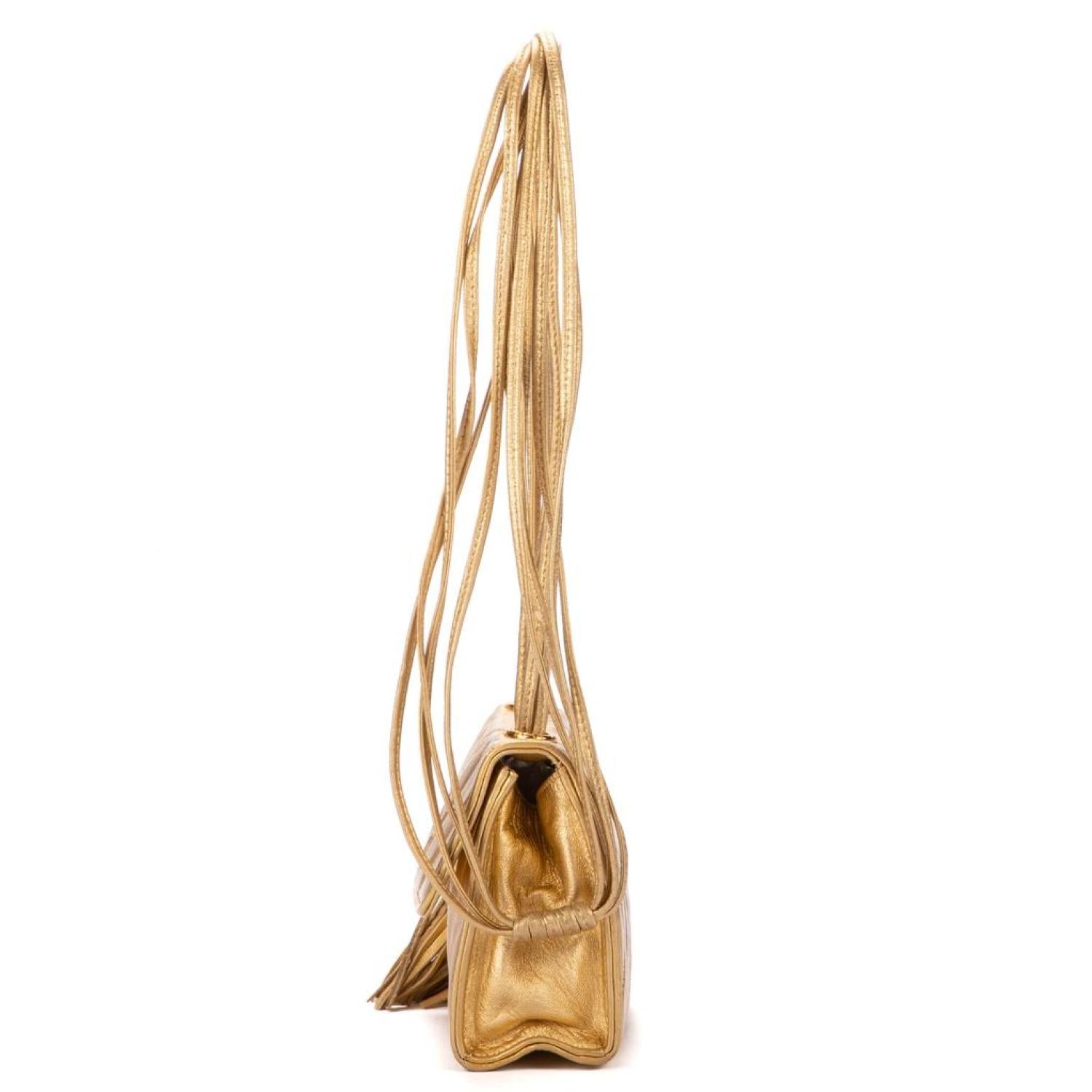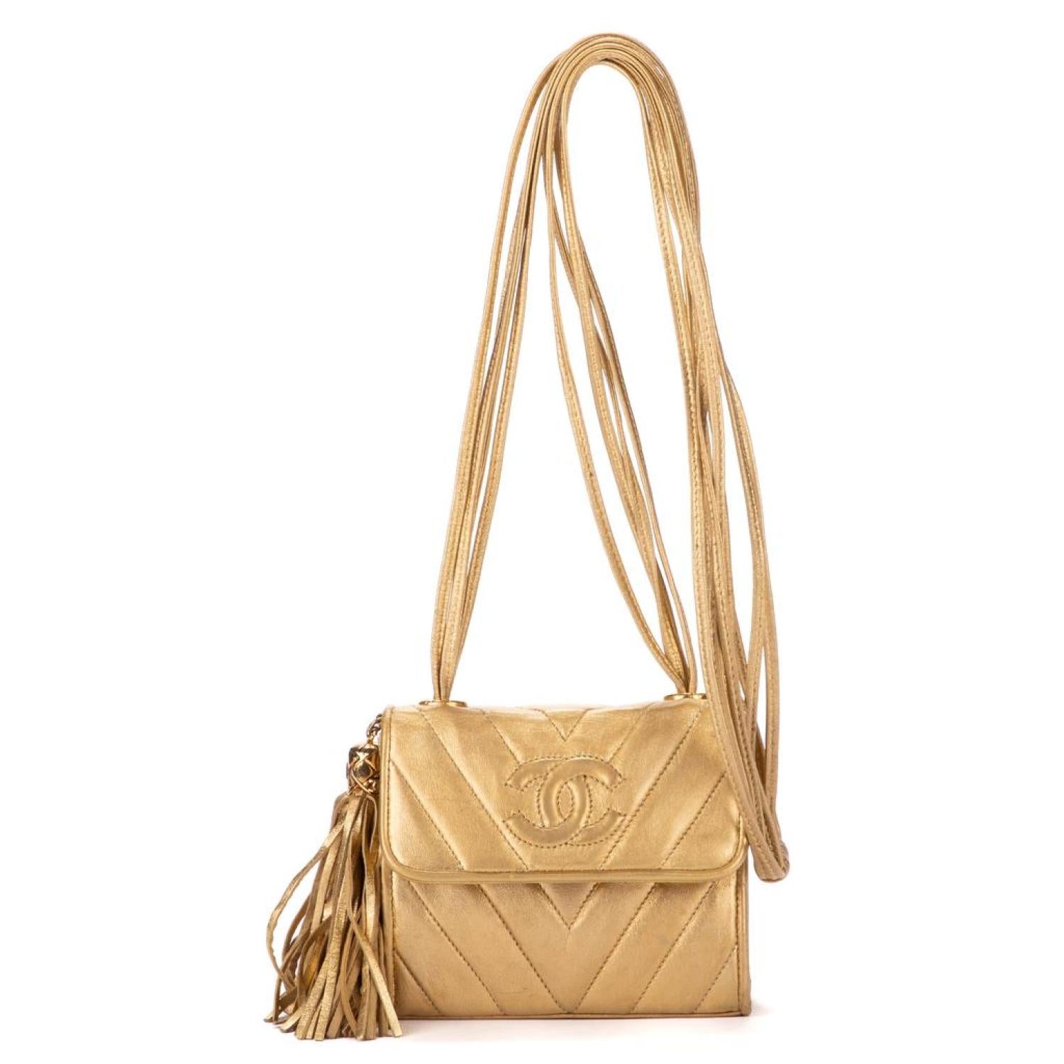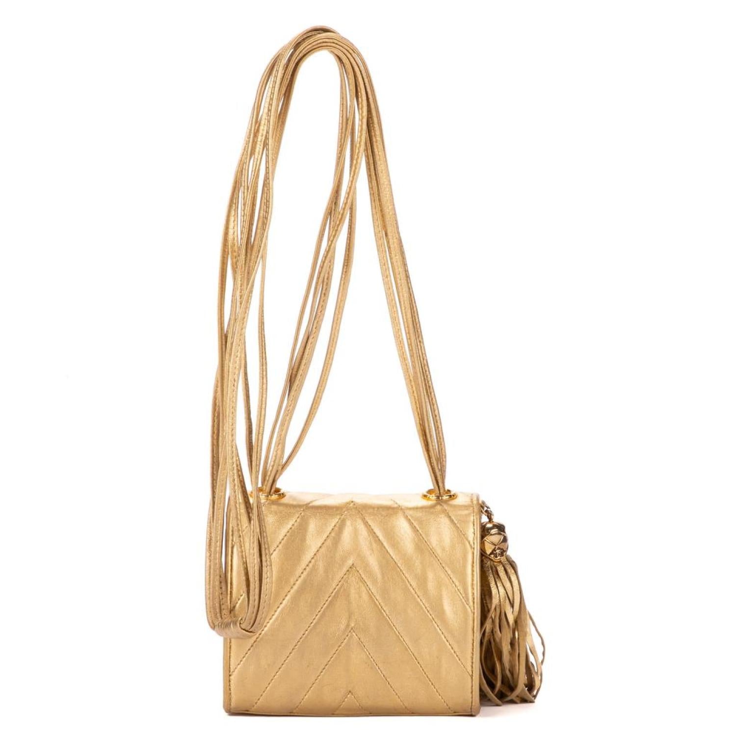 Chanel Shoulder bag in Gold Metalic Calfskin leather and Gold hardware. Dimensions - 13*11*5cm. Serial number - 1995486. Inclusions - Sticker.