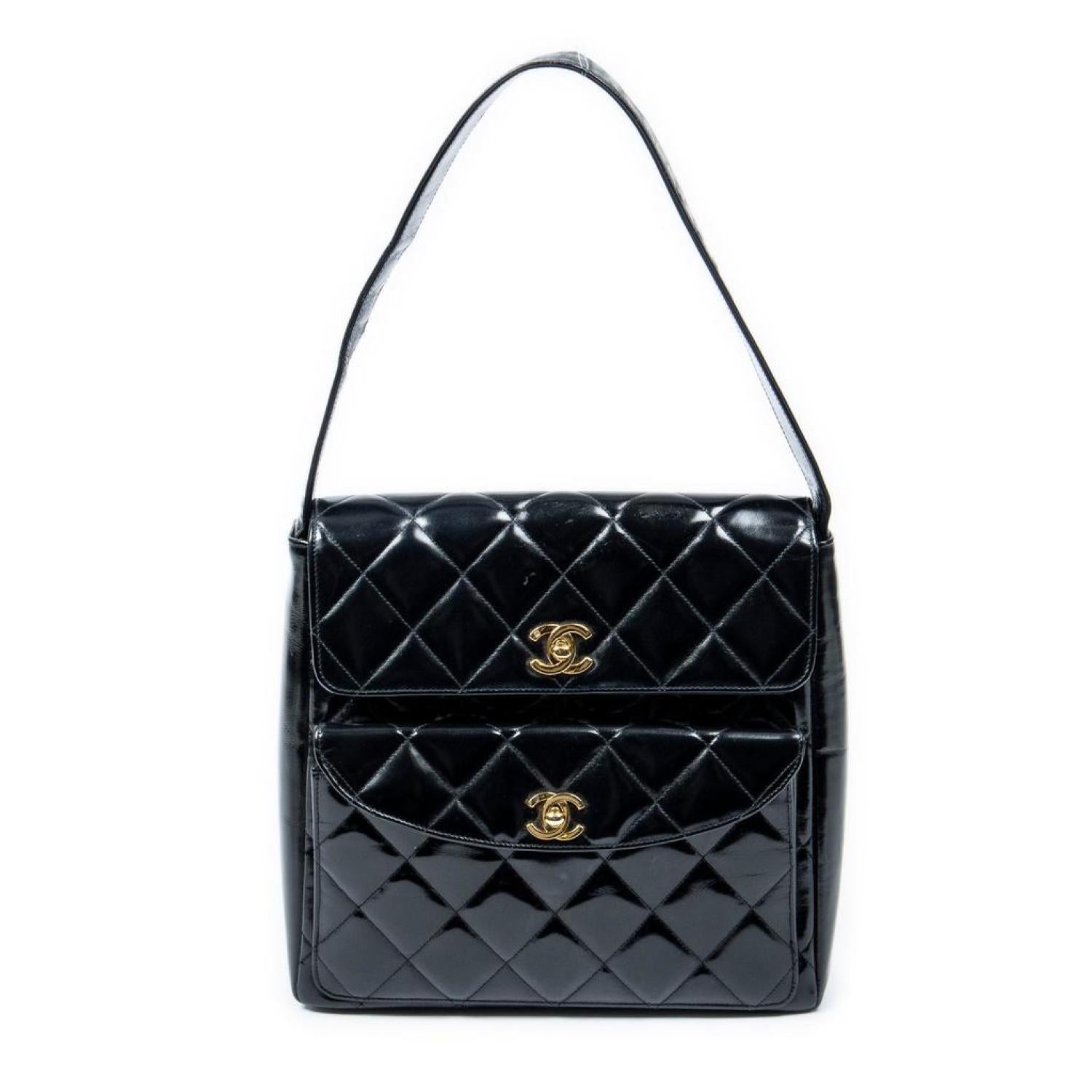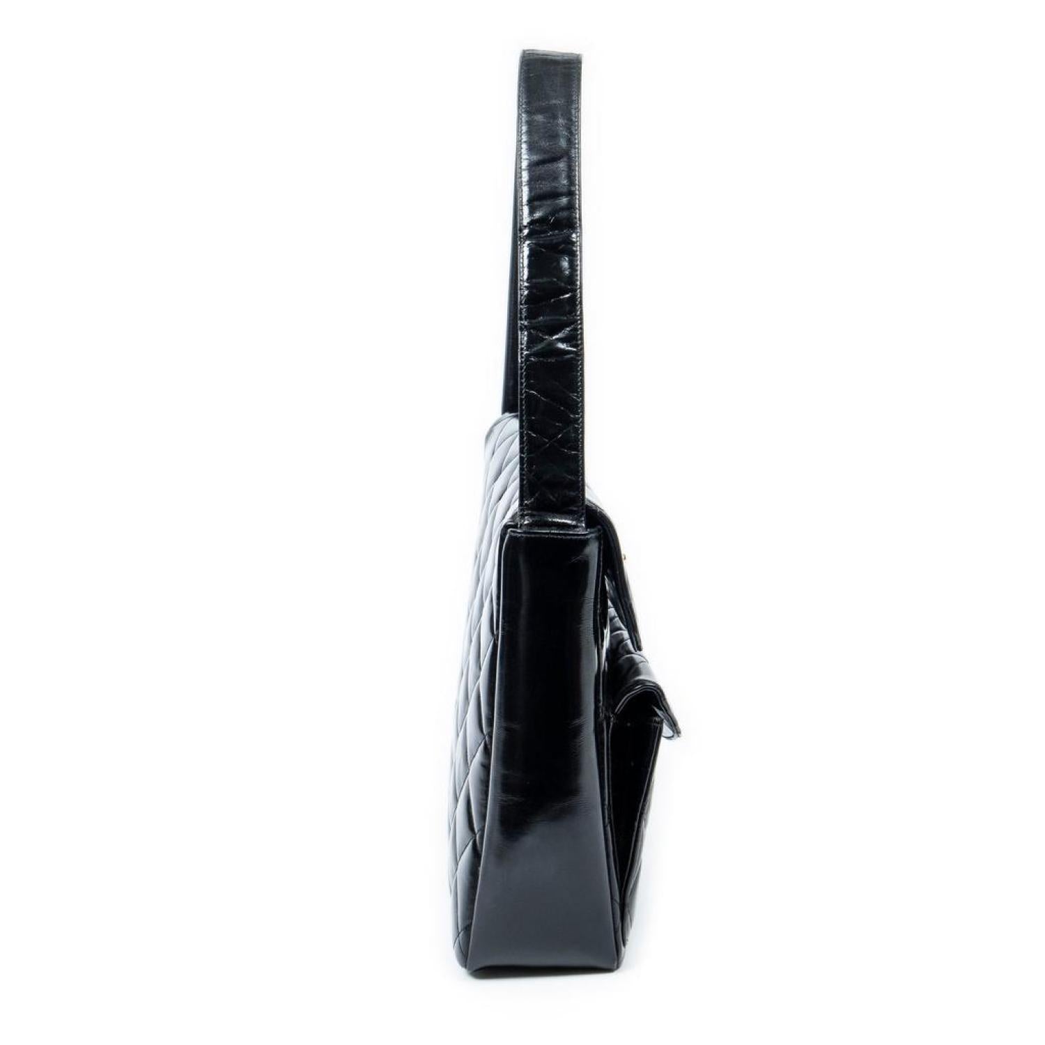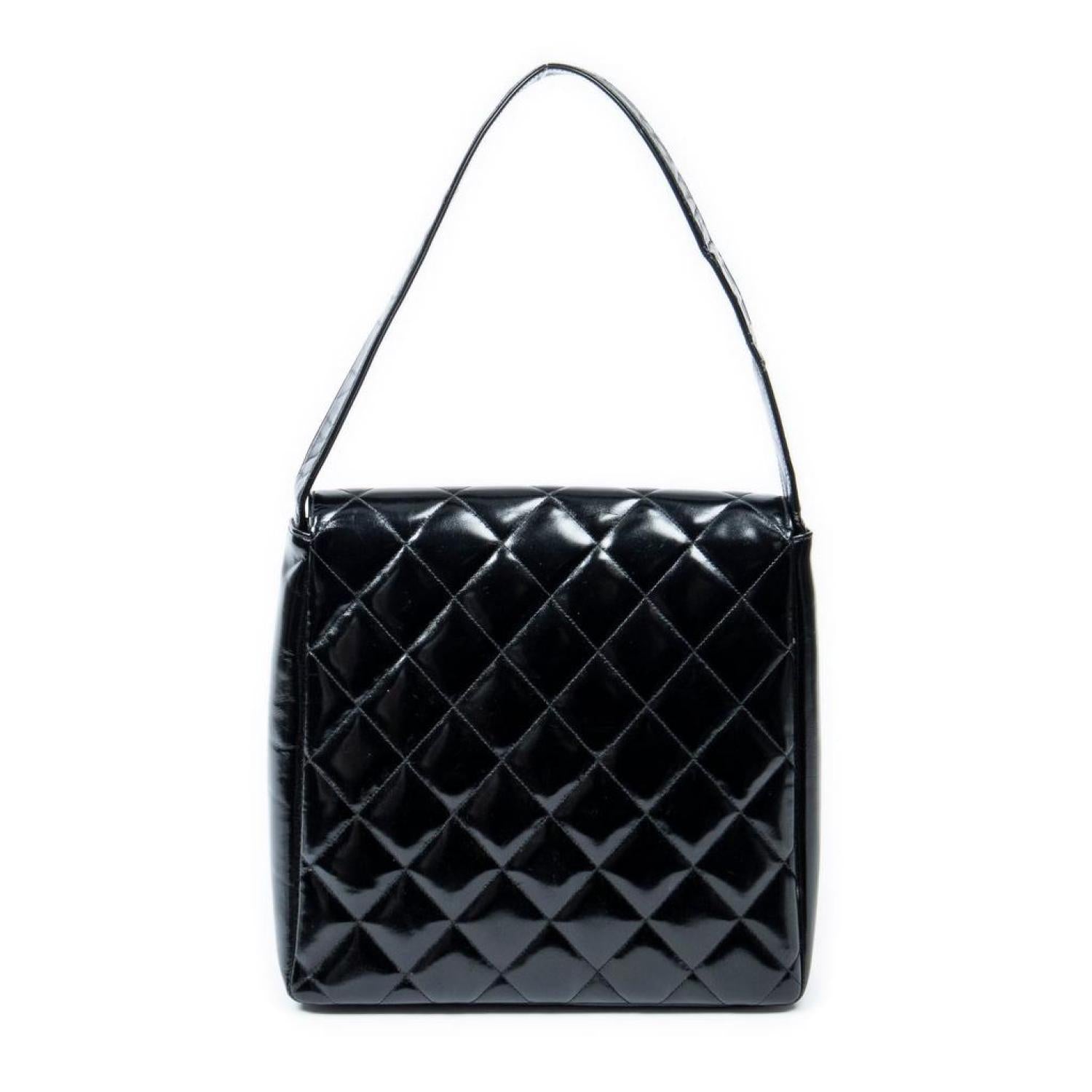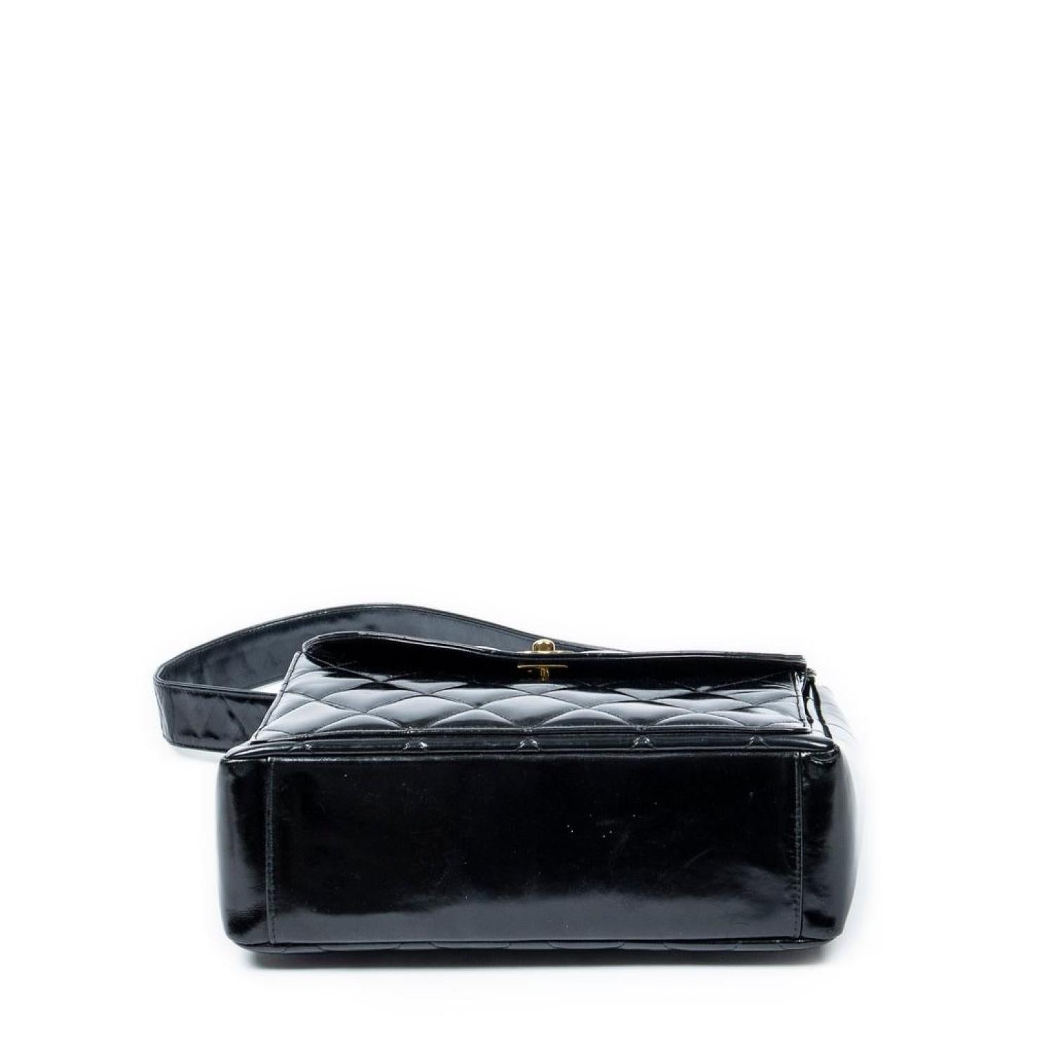 Chanel Shoulder Bag in Black Quilted Patent Leather and Gold hardware. Dimensions - 25*23*8cm. Serial number - 4440289 (1996-1997). Inclusions - sticker.