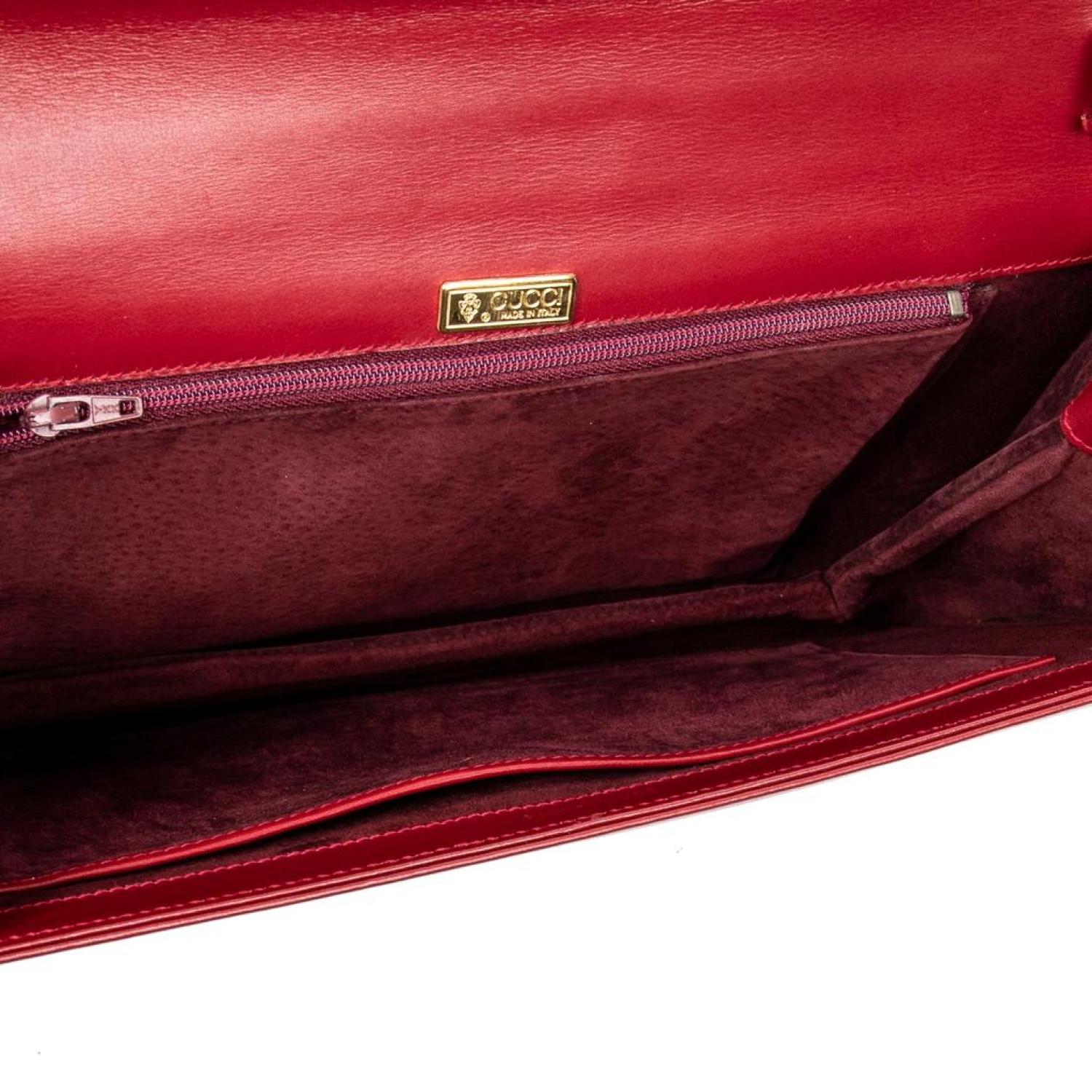 Gucci Shoulder Bag in Red Smooth Calfskin Leather and Gold hardware. Dimensions - 30*19*3cm. Serial number - 004-46-0074. Inclusions - Strap, Dustbag.