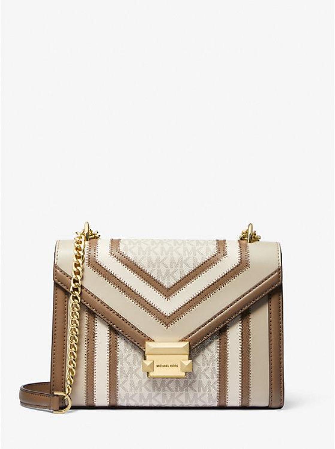 A luxe option for everyday or an evening out, the Whitney shoulder bag is designed in our logo print with a complementary smooth trim. An adjustable chain strap converts the shoulder bag to a crossbody, while the logo-lined interior will effortlessly store your phone, wallet and keys. • Shoulder bag • Polyurethane blend/logo-print canvas • 60% polyurethane/20% cotton/20% polyester • Trim: 89.4% coated canvas/9.6% polyester/1% polyurethane • Gold-tone hardware • 9.5"W X 7"H X 3.5"D • Interior details: back slip pocket • Lining: 100% polyester • Snap fastening • Imported • Shoulder bag • Polyurethane blend/logo-print canvas • 60% polyurethane/20% cotton/20% polyester • Trim: 89.4% coated canvas/9.6% polyester/1% polyurethane • Gold-tone hardware • 9.5"W X 7"H X 3.5"D • Interior details: back slip pocket • Lining: 100% polyester • Snap fastening • Imported