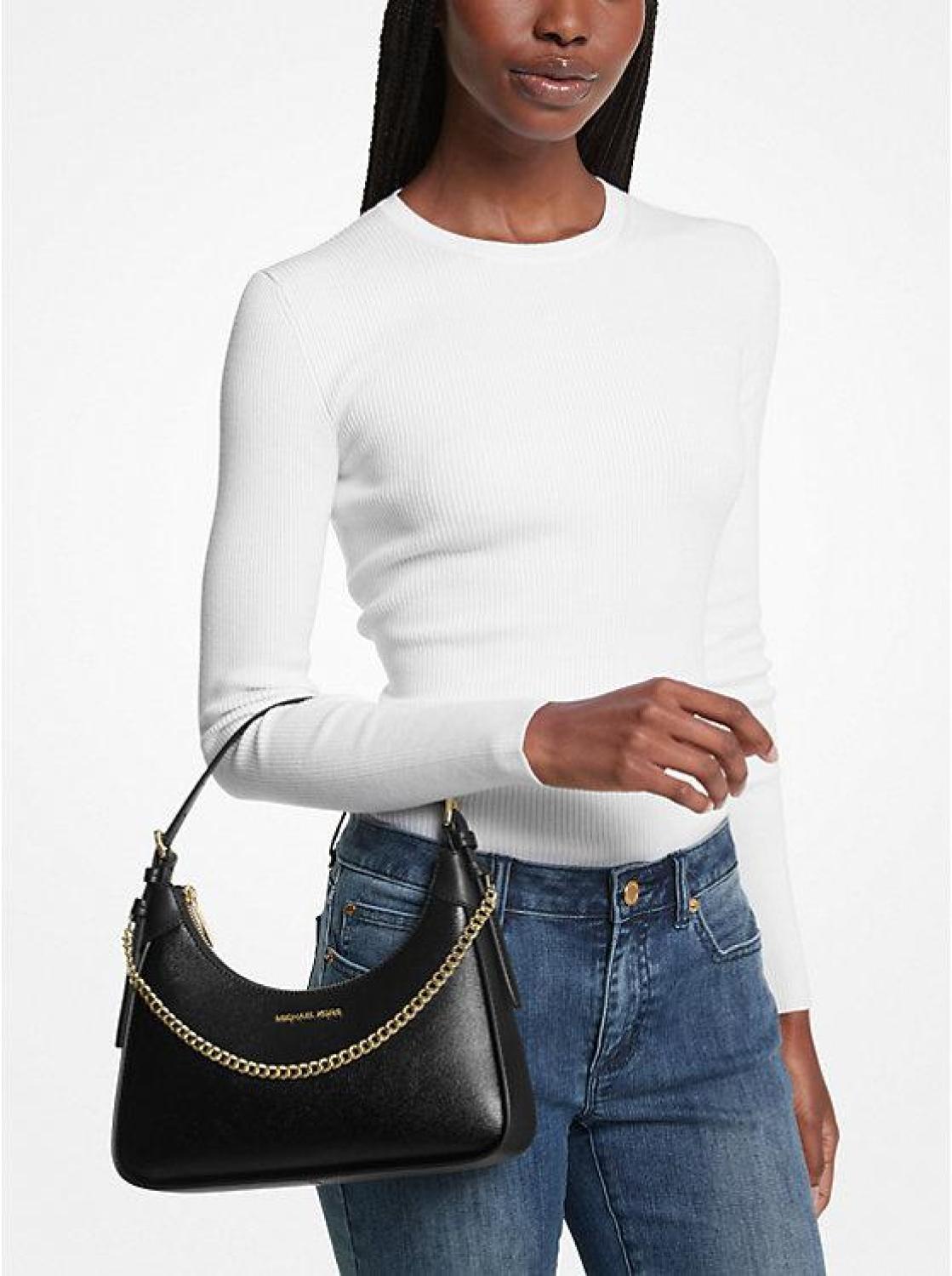 • Introducing Wilma: a sleek shoulder bag made to make a statement. Featuring a smooth leather exterior, it’s cut in a structured silhouette and features an edgy chain-link strap for tough-luxe appeal. We think it’s the perfect day-to-night bag.
