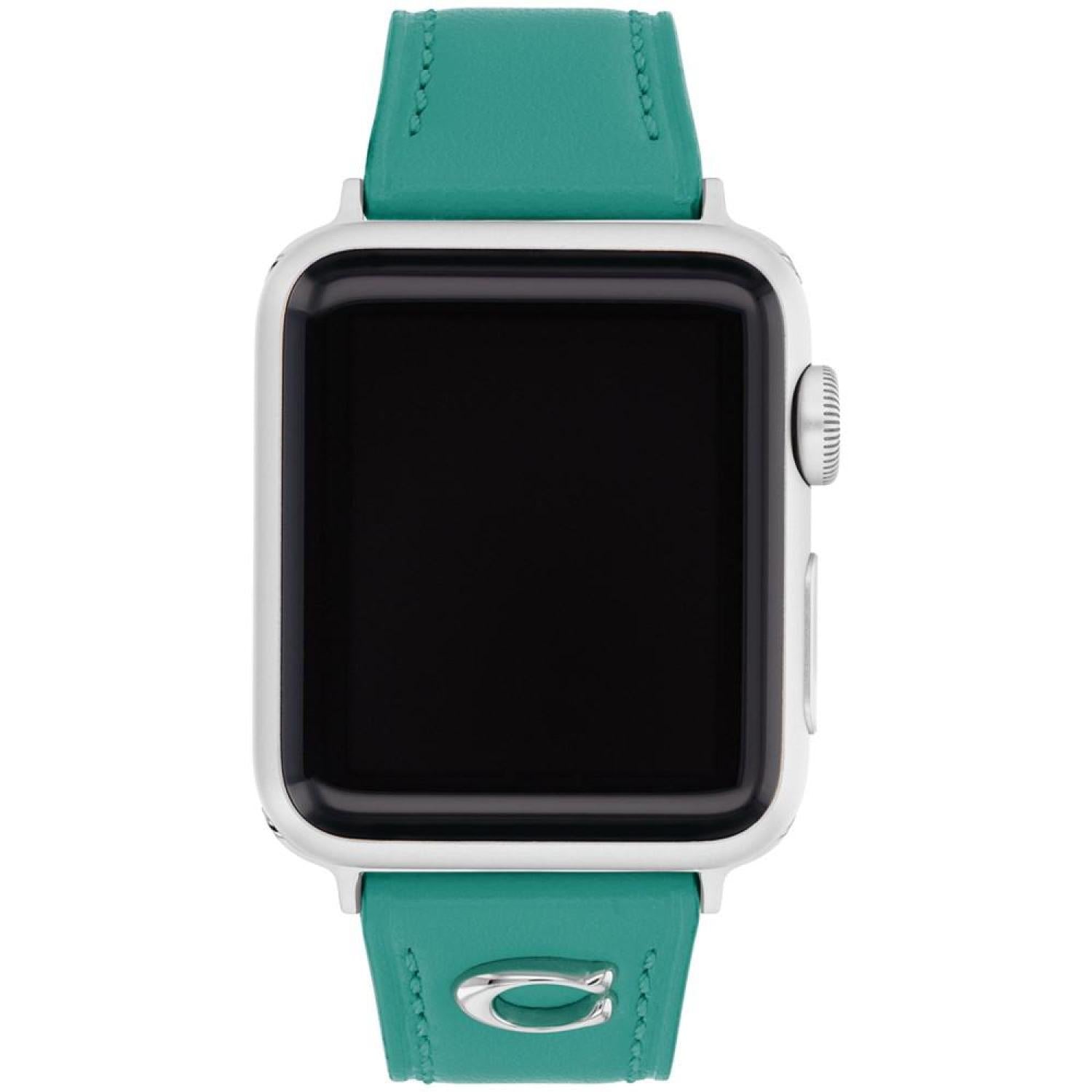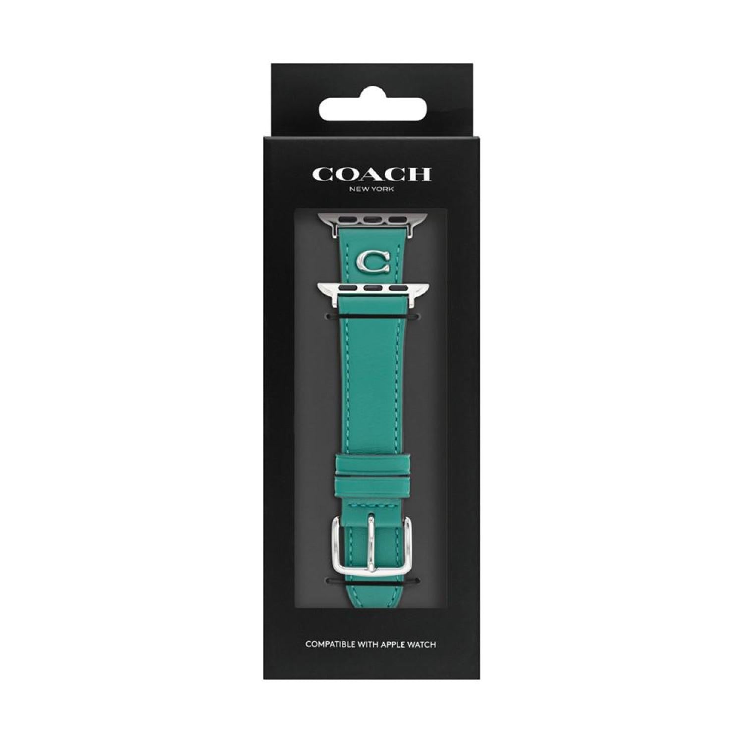 • Made exclusively for use with the 38mm, 40mm and 41mm Apple Watch, this sleek green leather strap secures with stainless steel hardware and is detailed with the COACH Signature. Style #14700201.