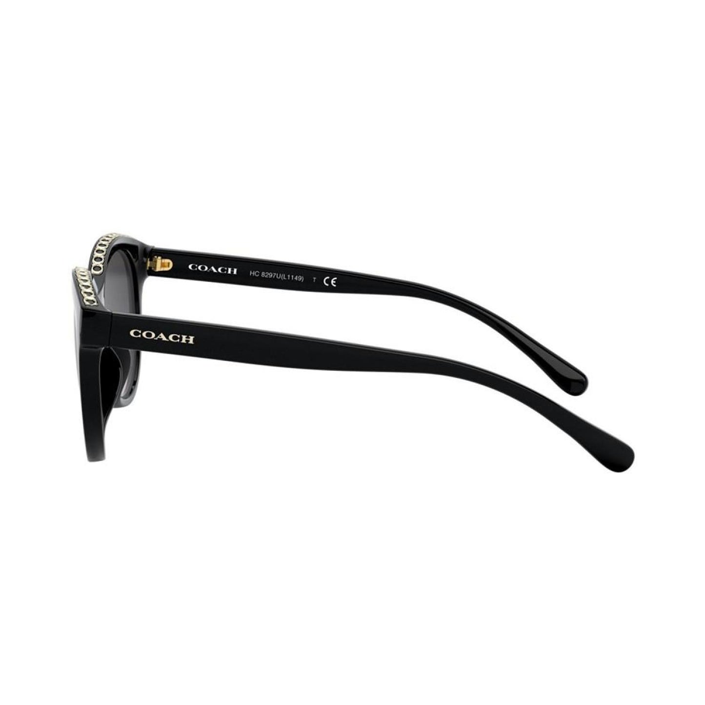 • Modified round injected front with signature C casted metal brow details in COACH transparent acetates.