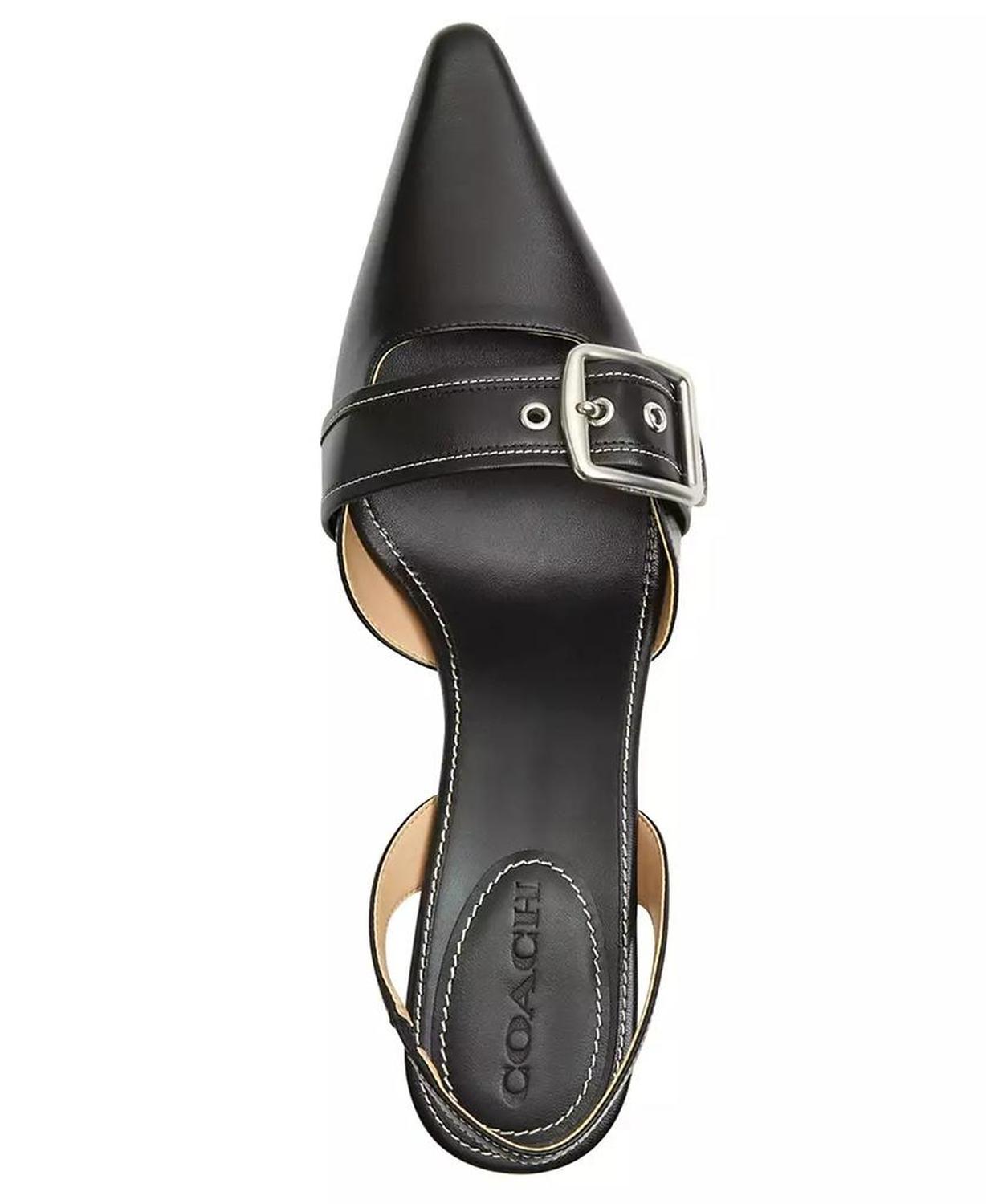 • Featuring a sleek heel type, these COACH slingback pumps offer a sophisticated profile. The slip-on design and pointed toe create a timeless and elegant appeal.