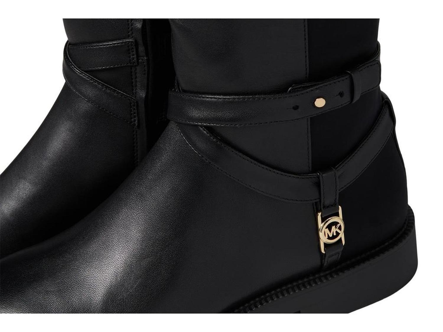 Indulge in luxury donning MICHAEL Michael Kors® Kors Abigail Boot - Wide Shaft, where fashion meets function. Crafted with a sleek leather upper and detailed branded hardware, these knee-high boots offer a striking silhouette. Enjoy the perfect fit with a wide shaft and 50/50 stretch that contours to your leg. The round toe design and faux leather insole ensure all-day comfort, while the durable rubber outsole provides steady traction. A polyester lining enhances breathability, and the zippered closure adds convenience.