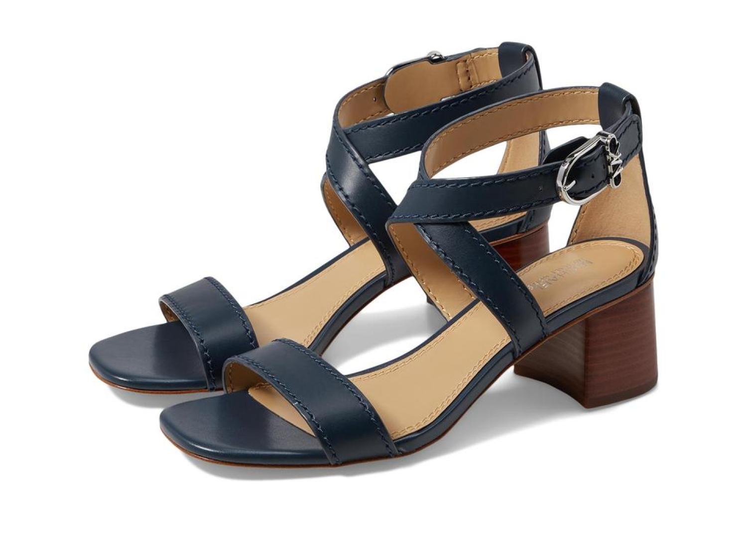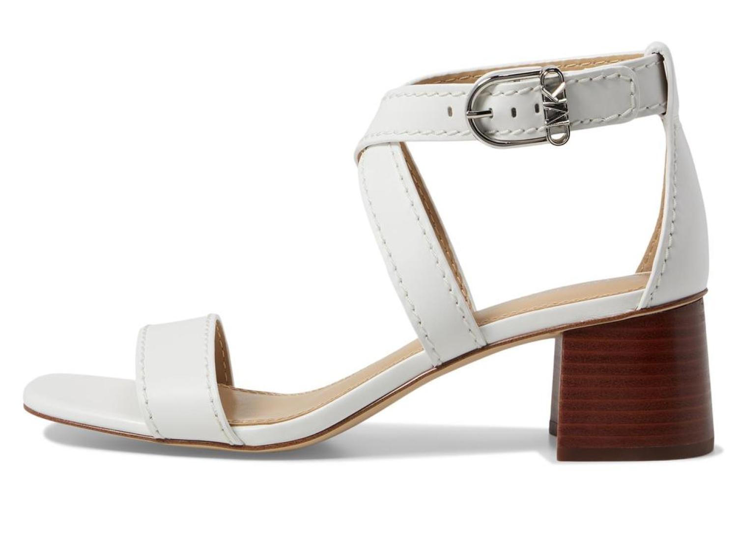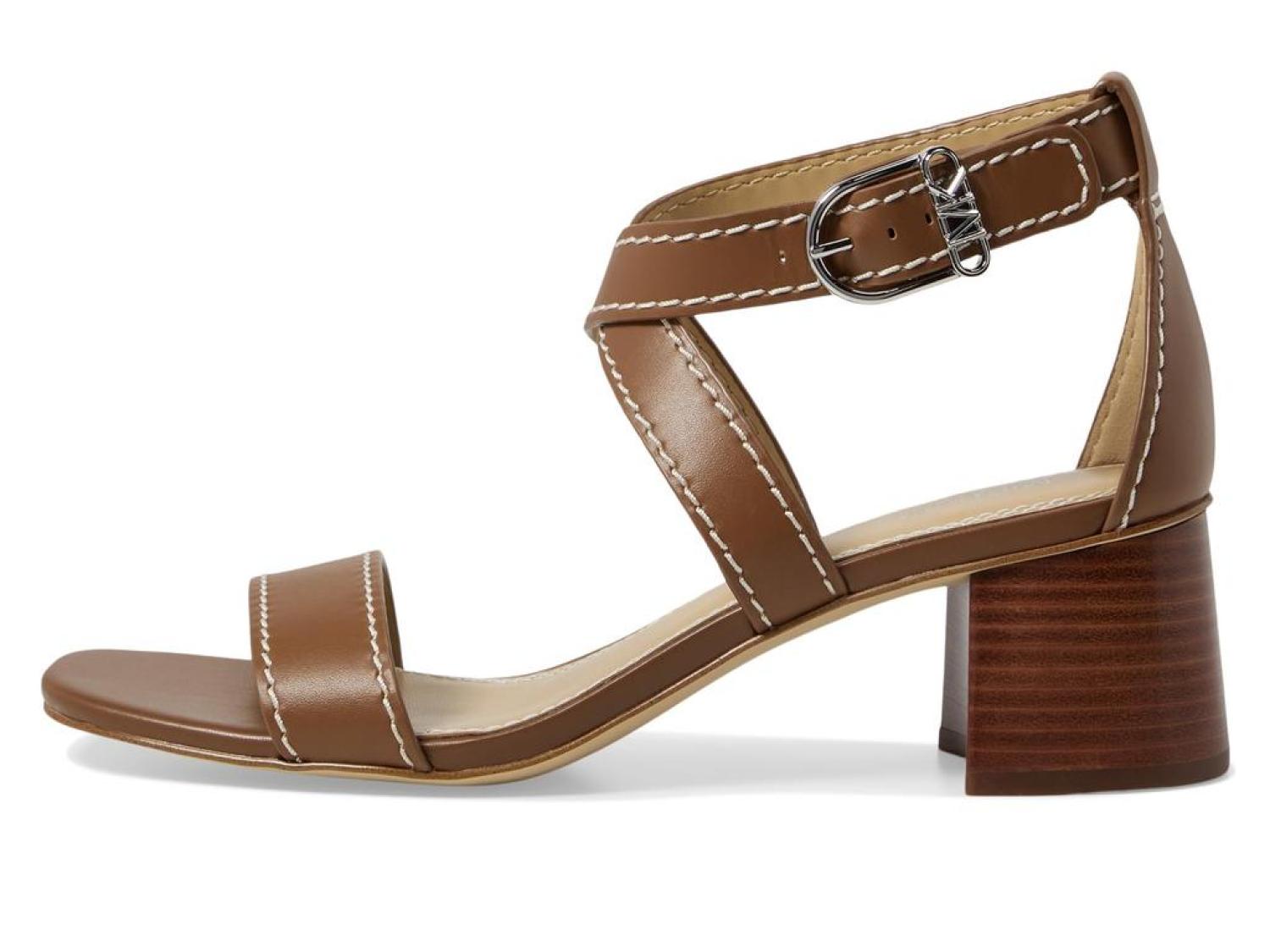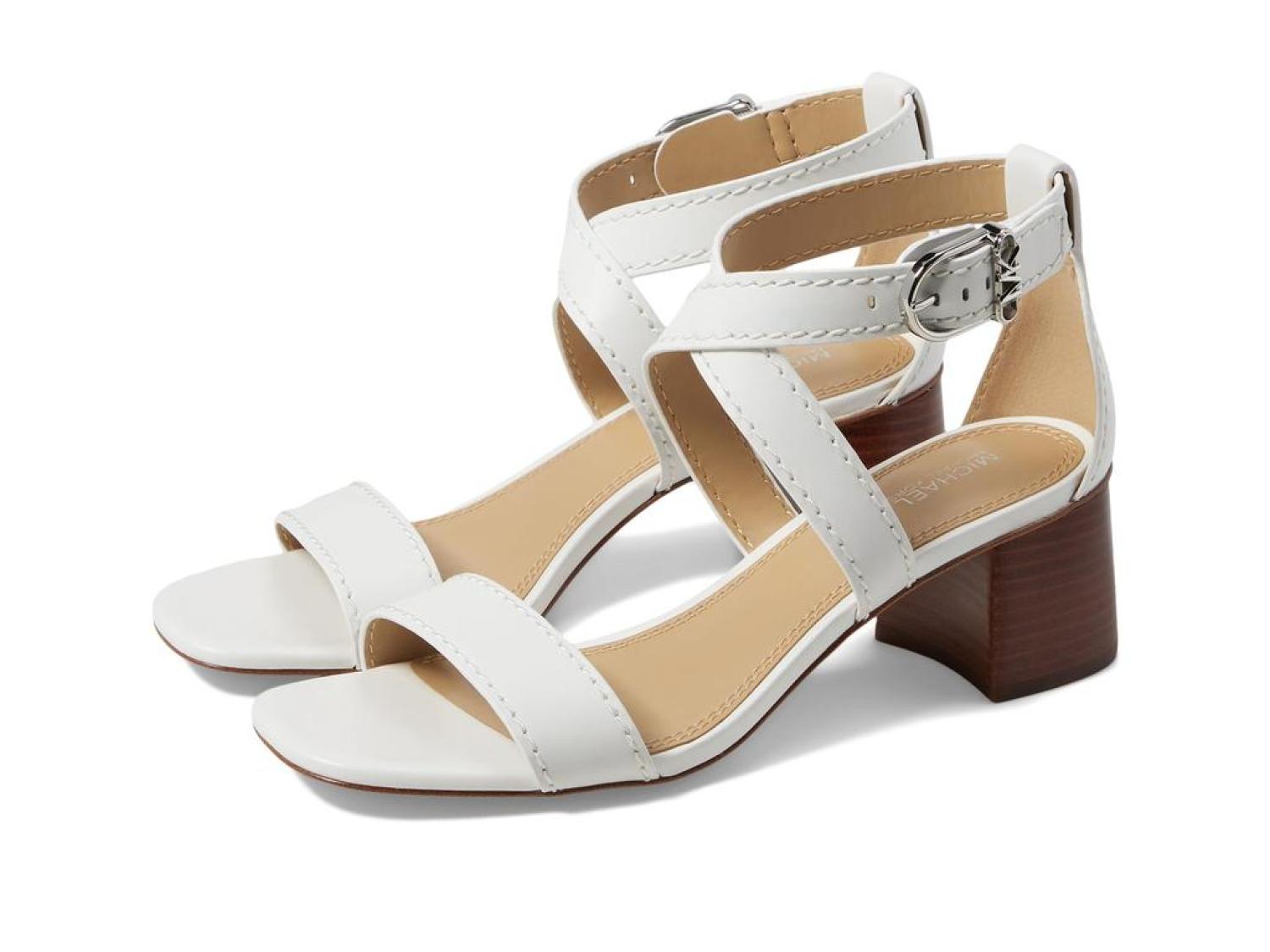 • Make outdoor gatherings a reason to flaunt your style perfection wearing the MICHAEL Michael Kors® Ashton Mid Sandals. The block-heeled footwear features  leather upper construction with buckled ankle strap closure and an open square toe silhouette.