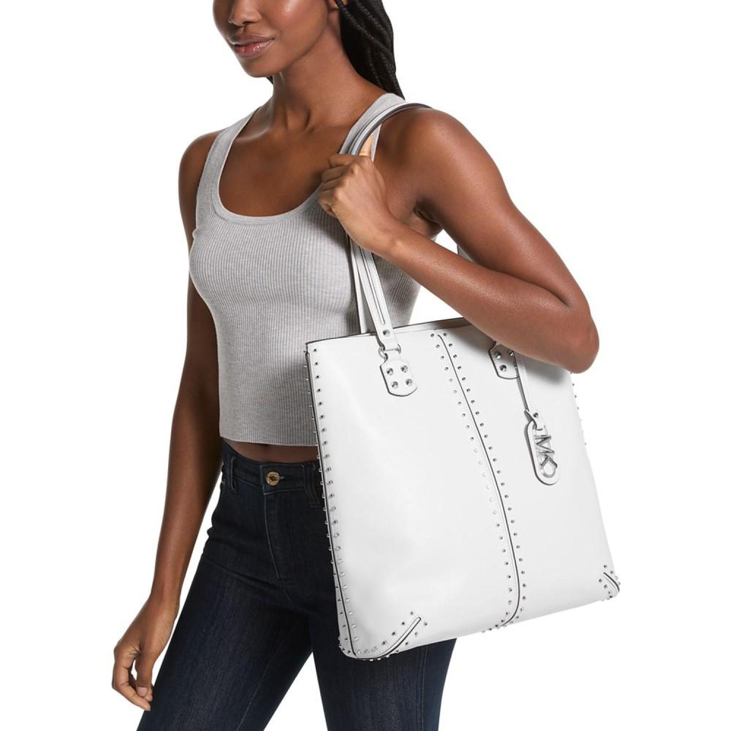 Accented with gold-tone studs and hardware, this tote by MICHAEL Michael Kors is crafted in leather in a size that easily takes on busy days.