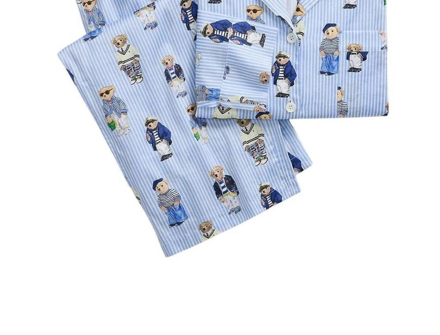 Bear Cotton Long-Sleeve Pajama Set In Oxford Blue