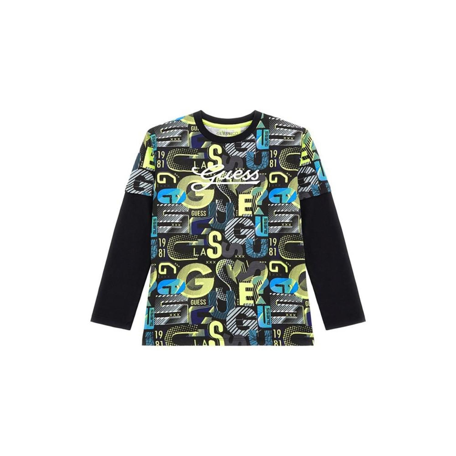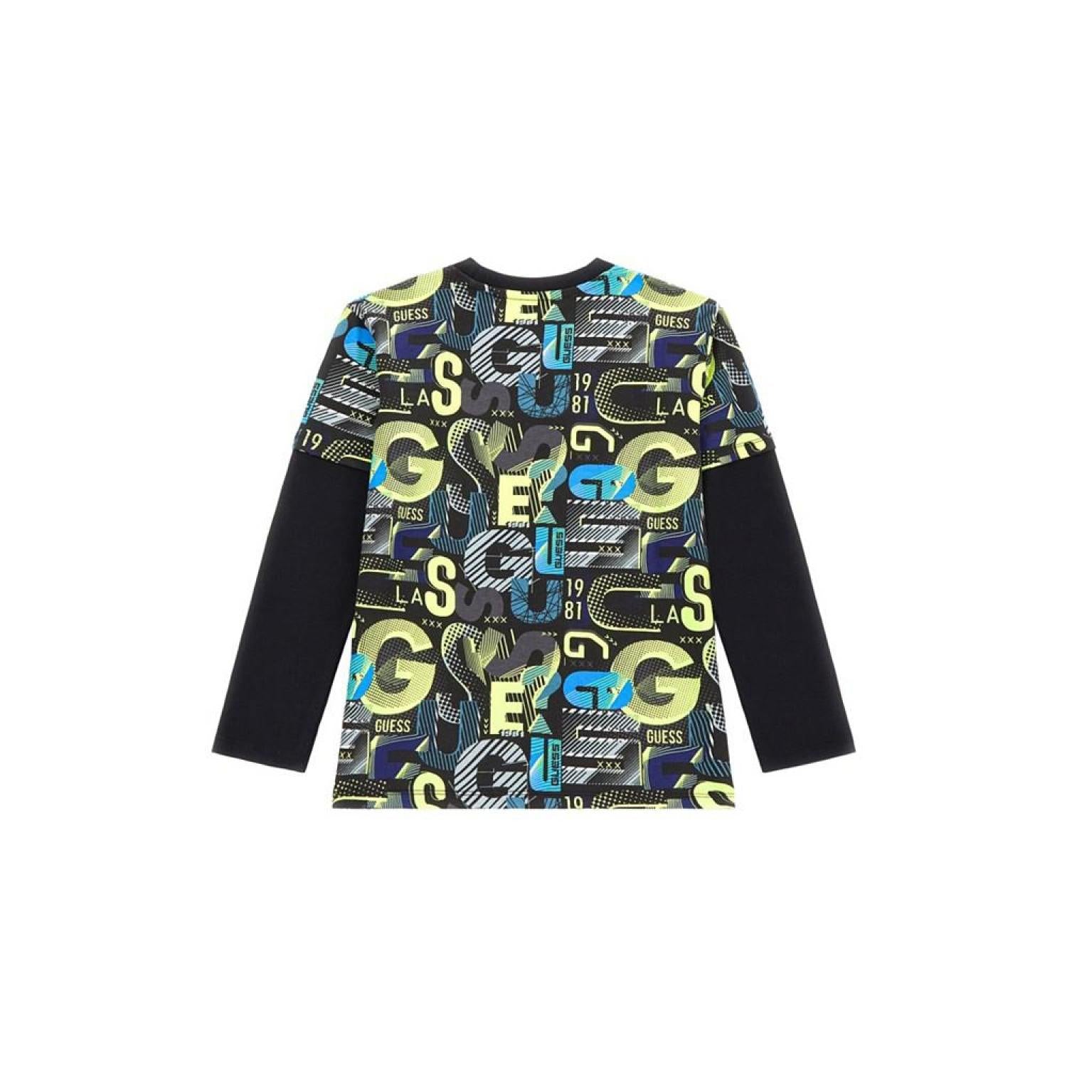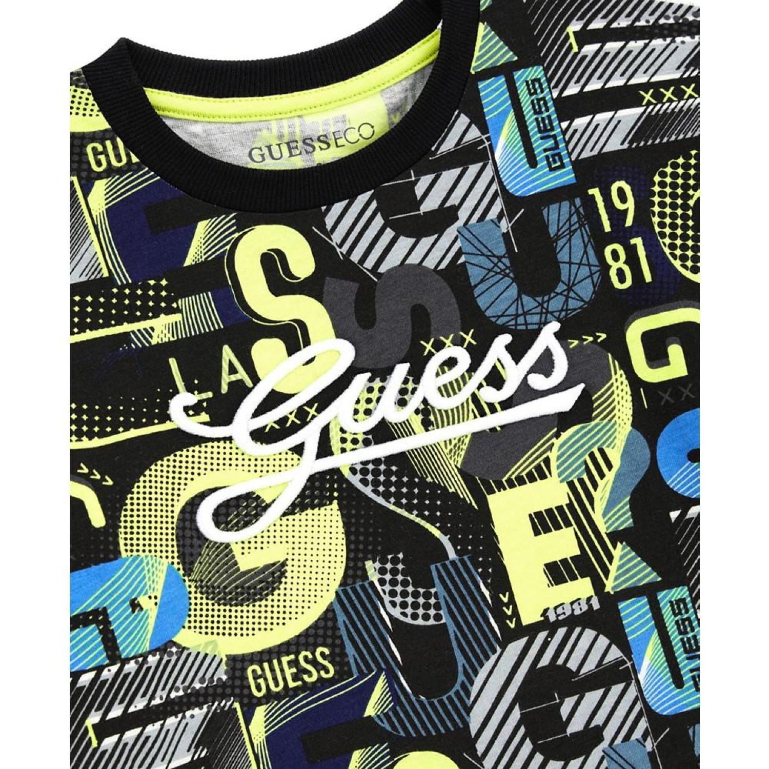 • This all over print faux 2-fer T-shirt is great for him. Finished off with an embroidered logo.