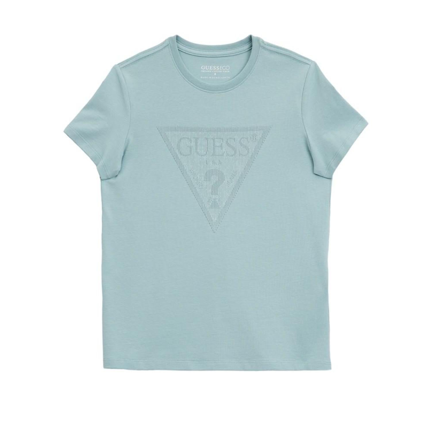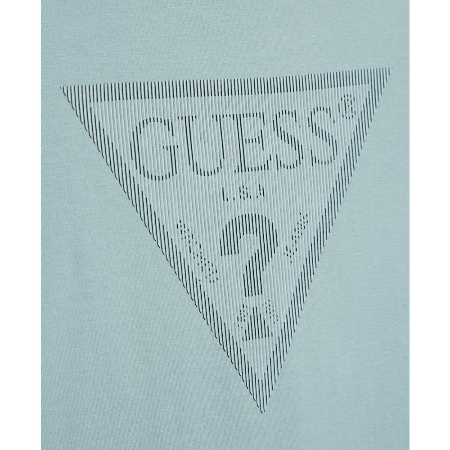 Simple and sleek. This rubberized triangle logo shows reflects two different logos based on the angle. Crewneck Guess logo at chest Rib knit collar Short sleeves Cotton, Elastane, Spandex Machine Washable Imported