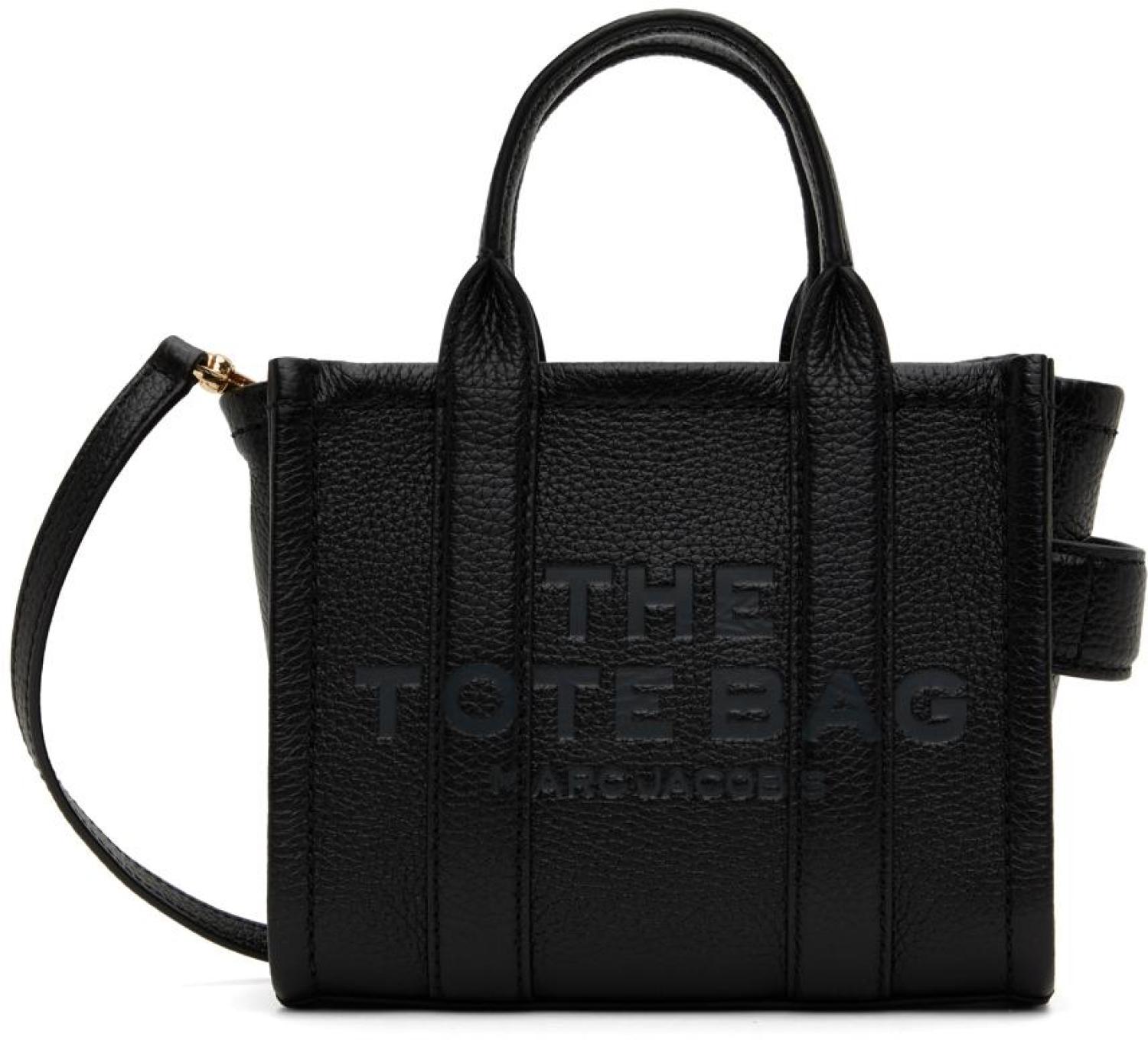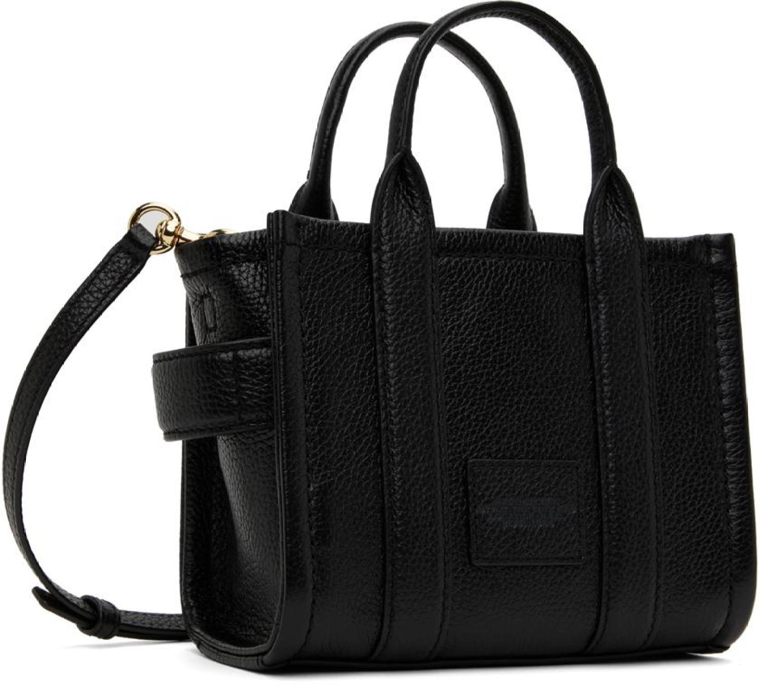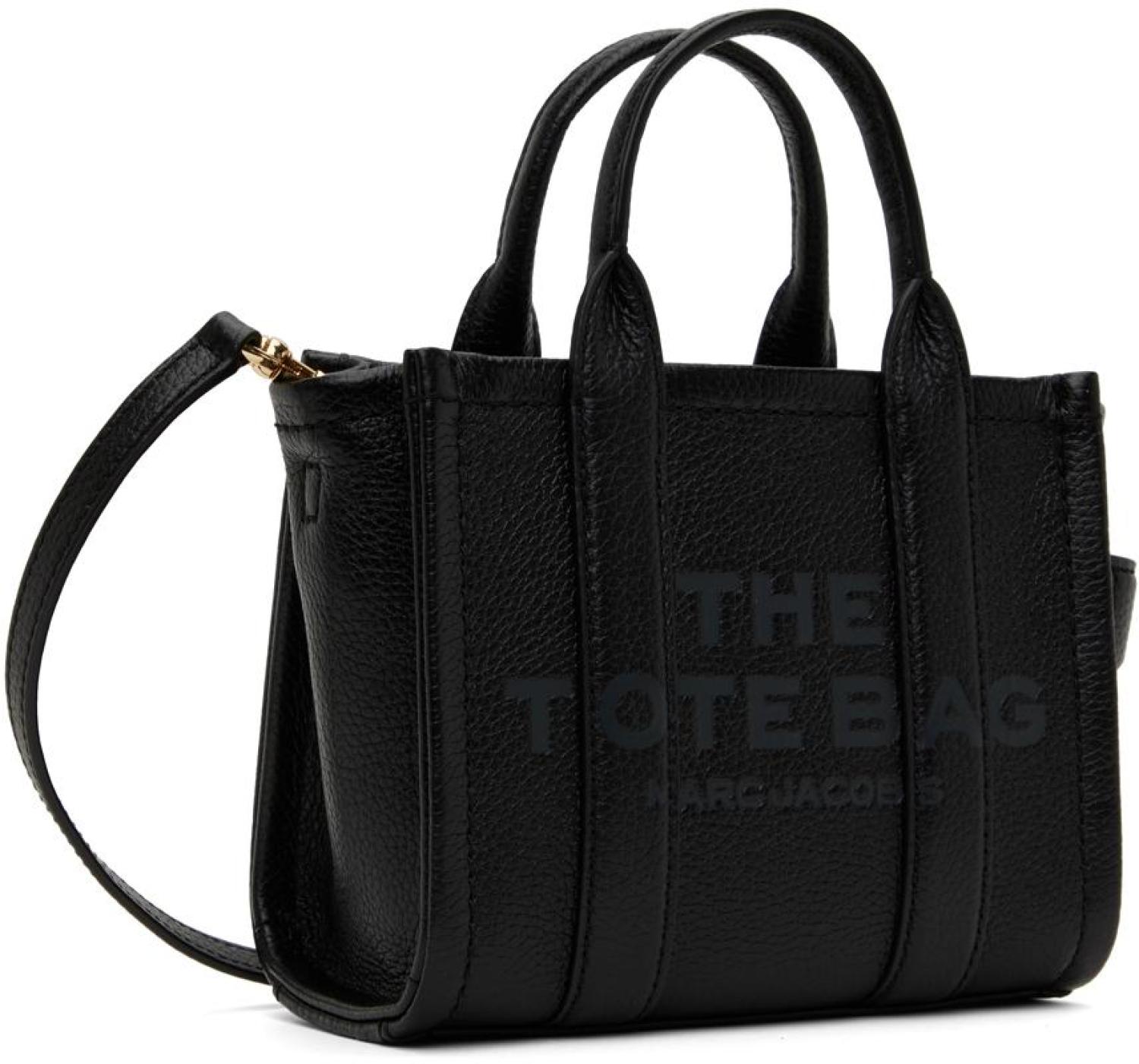 Marc Jacobs Black 'The Leather Mini Tote Bag' Tote Grained leather tote in black. · Twin rolled carry handles · Adjustable and detachable crossbody strap · Logo embossed at face · Carry handle at side · Logo patch at back face · Zip closure · Unlined · H6" x W7" x D4" Supplier color: Black Leather. Made in Viet Nam. 241190F049080