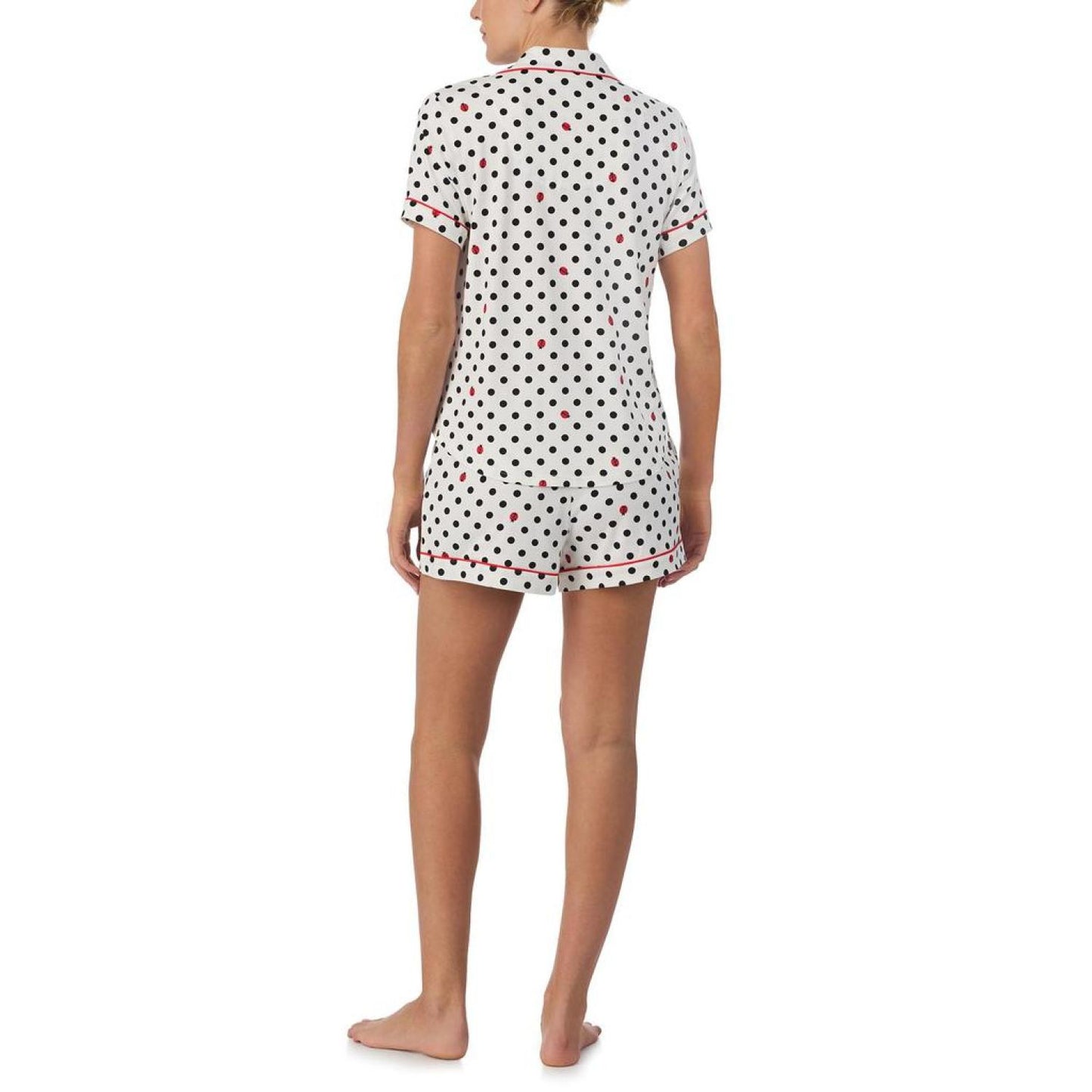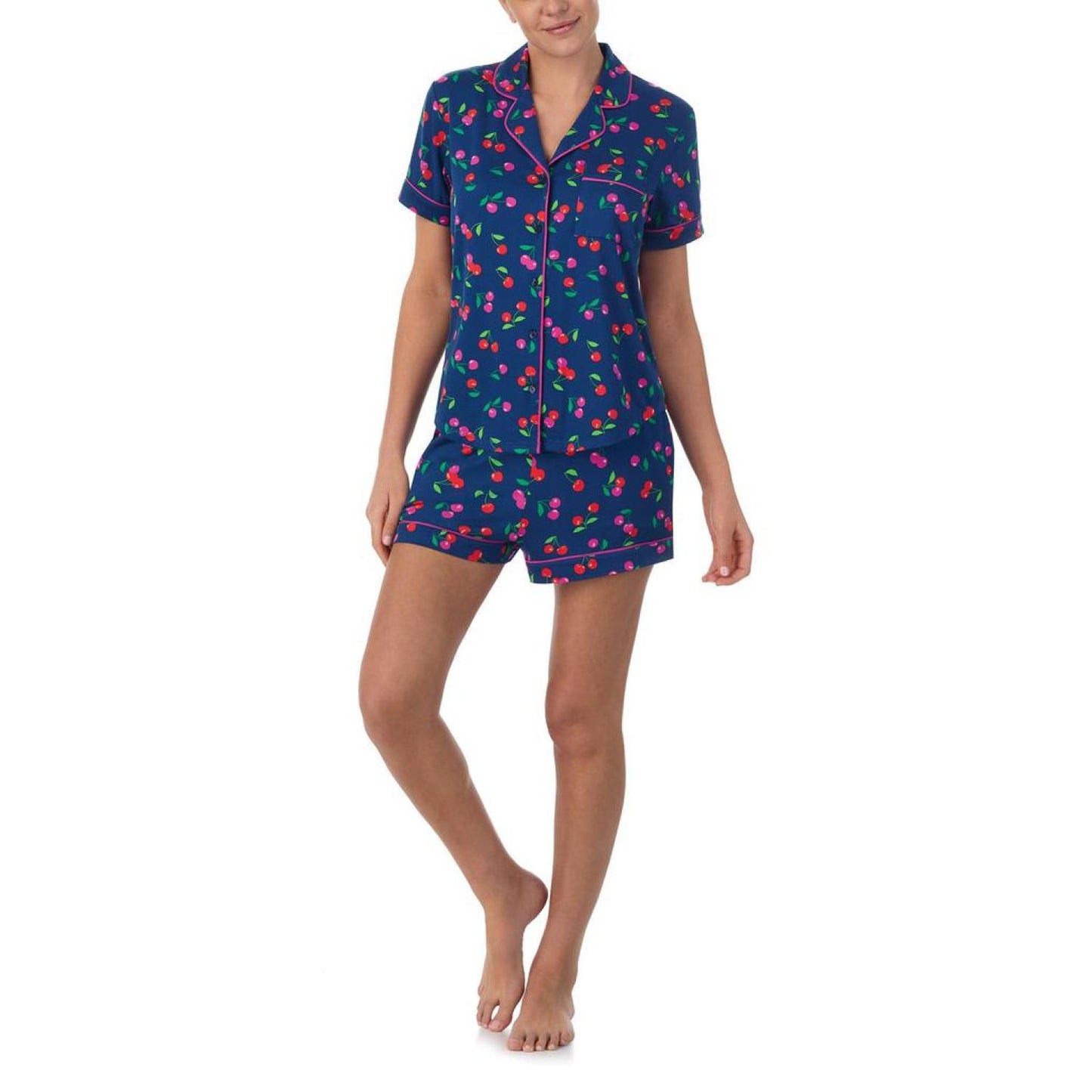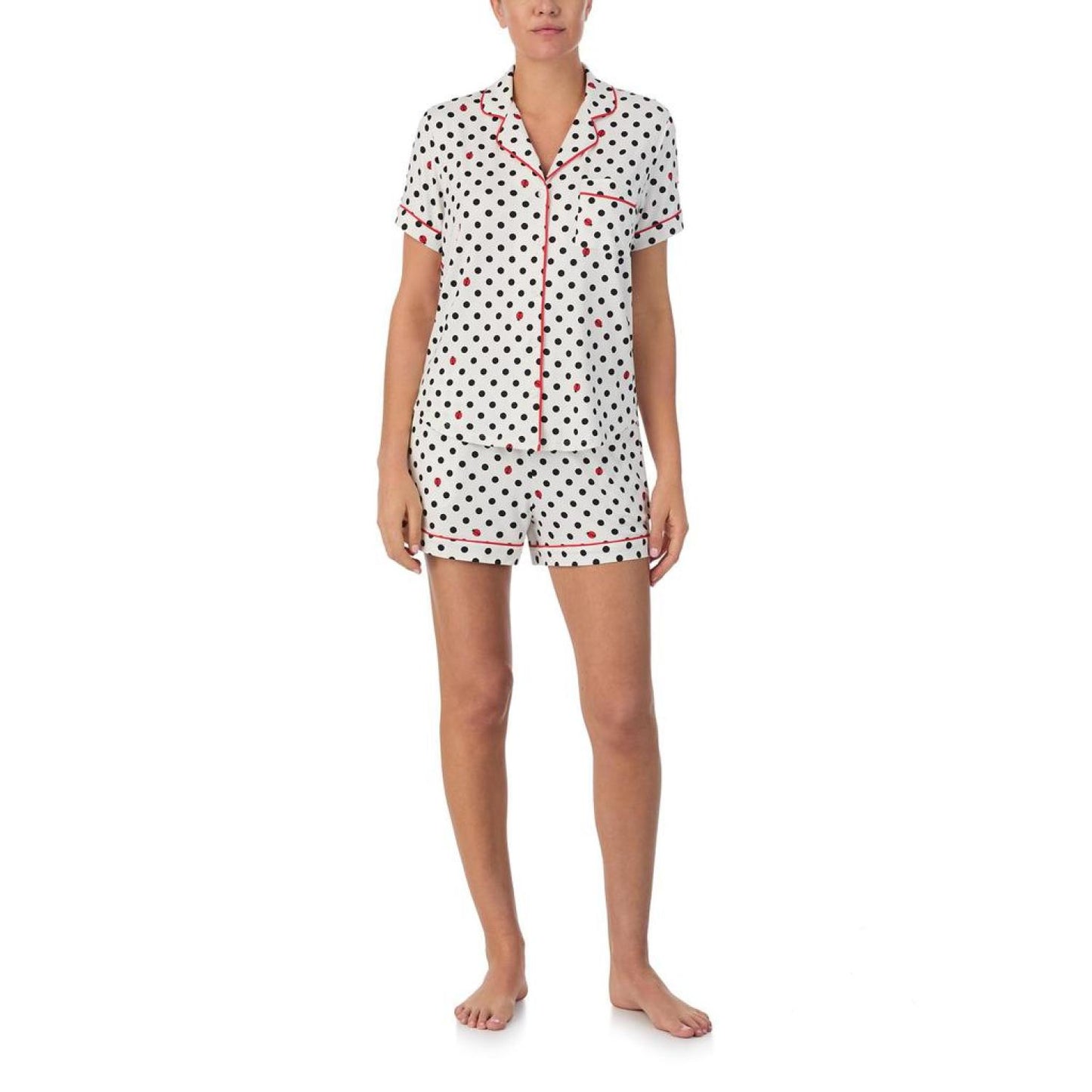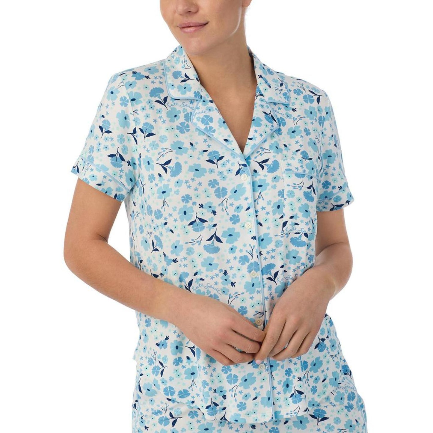 • Have a fun sleepover in the cool and relaxed Kate Spade New York® Boxer Short Sleeve PJ Set highlighting a classy allover print featured on a comfortable notch collar short sleeve shirt with a button-down closure on the front and a chest pocket.