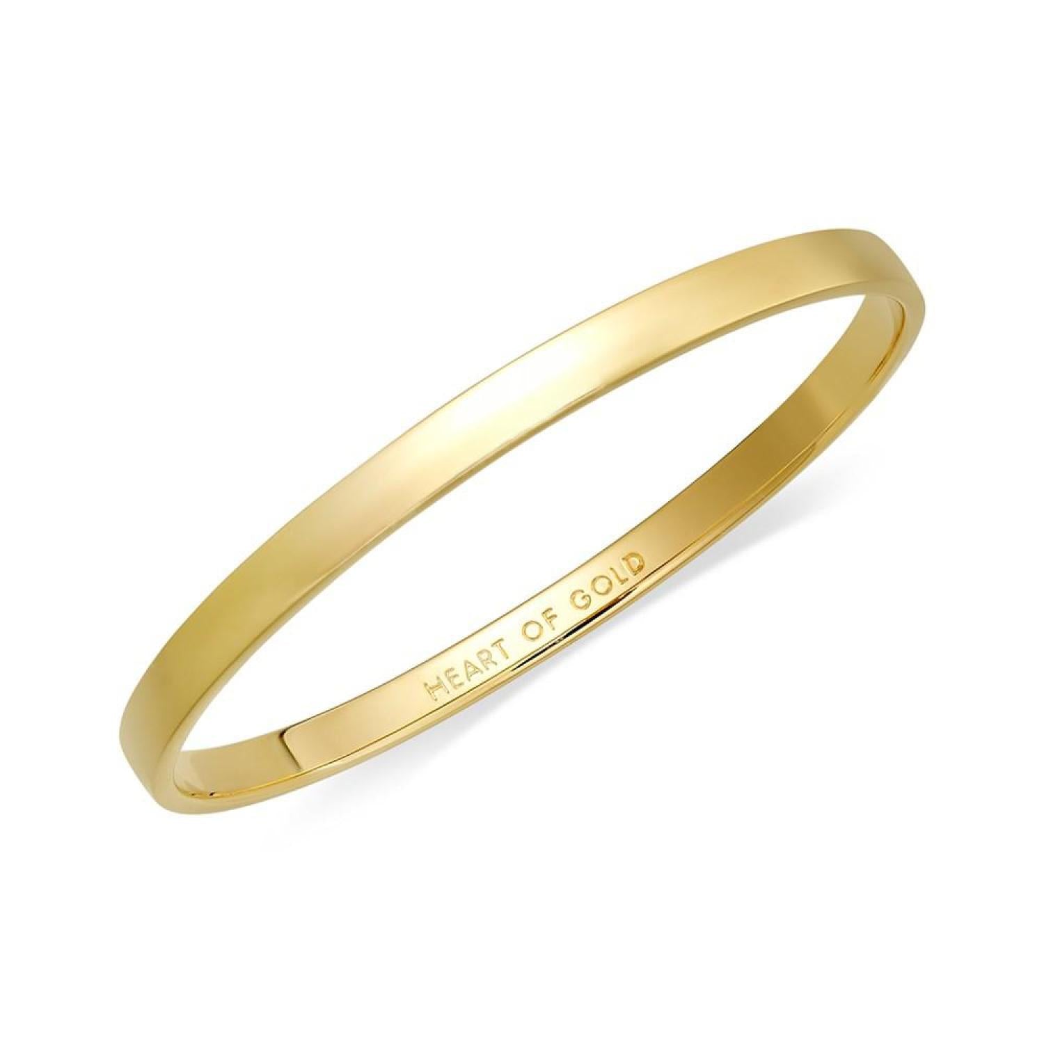 • A lovely treasure from kate spade new york. This gilded bangle bracelet flaunts a thin silhouette with HEART OF GOLD delicately engraved at the interior.