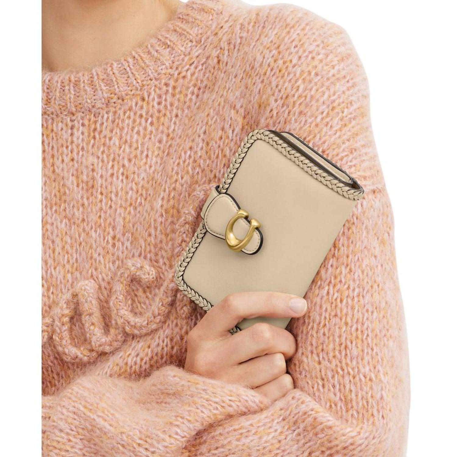Meet all your organizational needs in classic COACH style with the Braided Leather Trim Tabby Medium Wallet.