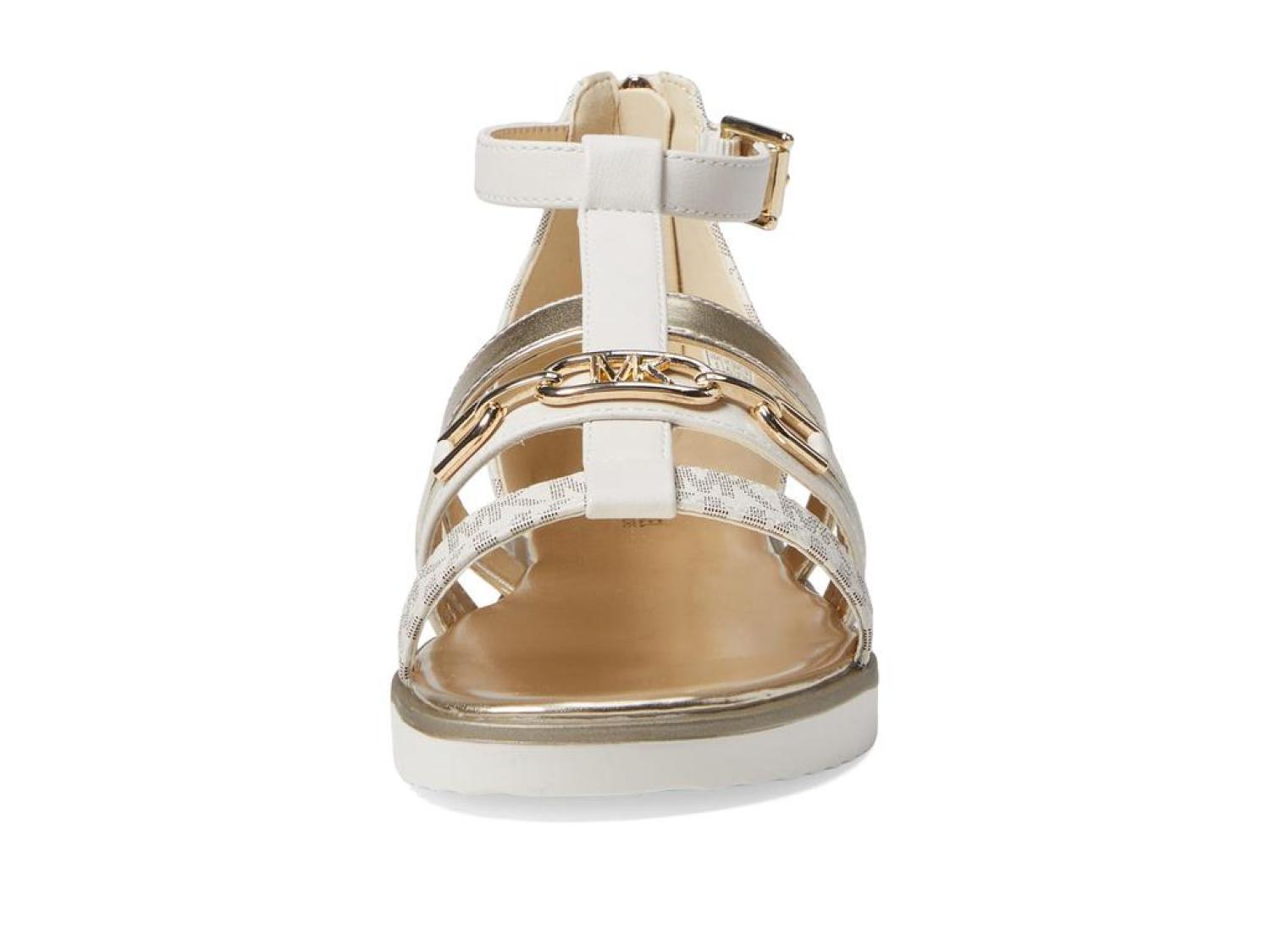 Give a shiny touch to your steps wearing MICHAEL Michael Kors® Kids Brandy Johanne footwear. It has polyurethane and metallic upper in silver finish. A polyester and polyurethane lining makes the shoes comfortable to wear for long time. A T-strap with adjustable buckle ankle strap and covered back provide right support on key areas of feet.