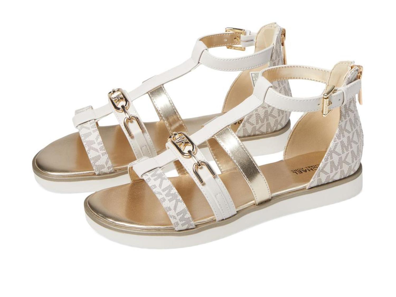• Give a shiny touch to your steps wearing MICHAEL Michael Kors® Kids Brandy Johanne footwear. It has polyurethane and metallic upper in silver finish. A polyester and polyurethane lining makes the shoes comfortable to wear for long time. A T-strap with adjustable buckle ankle strap and covered back provide right support on key areas of feet.