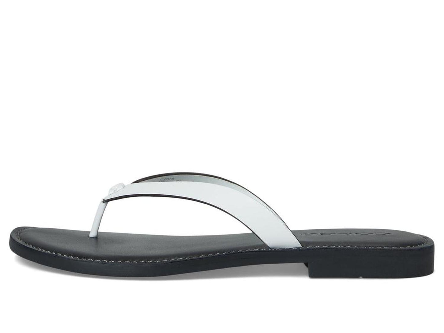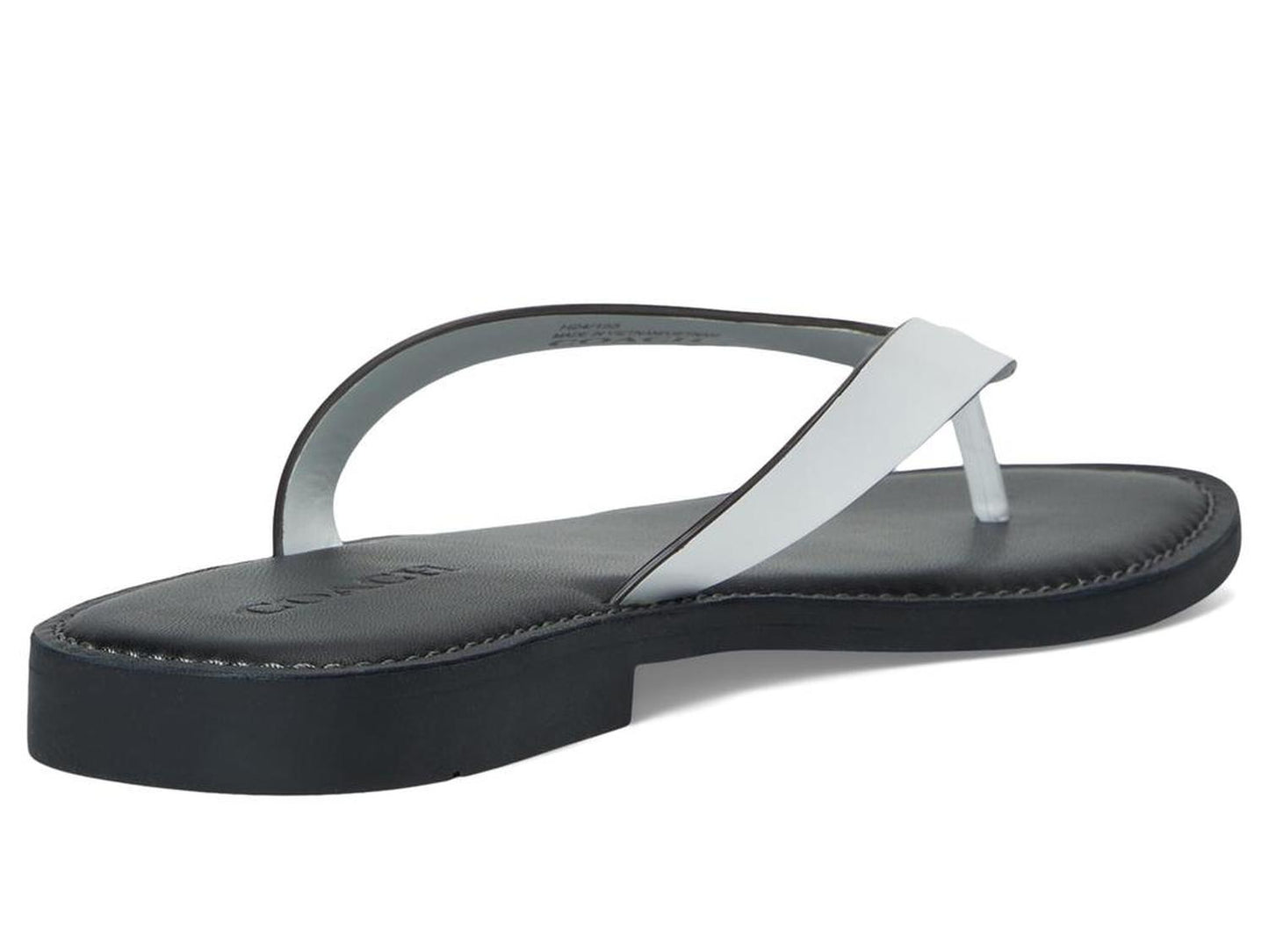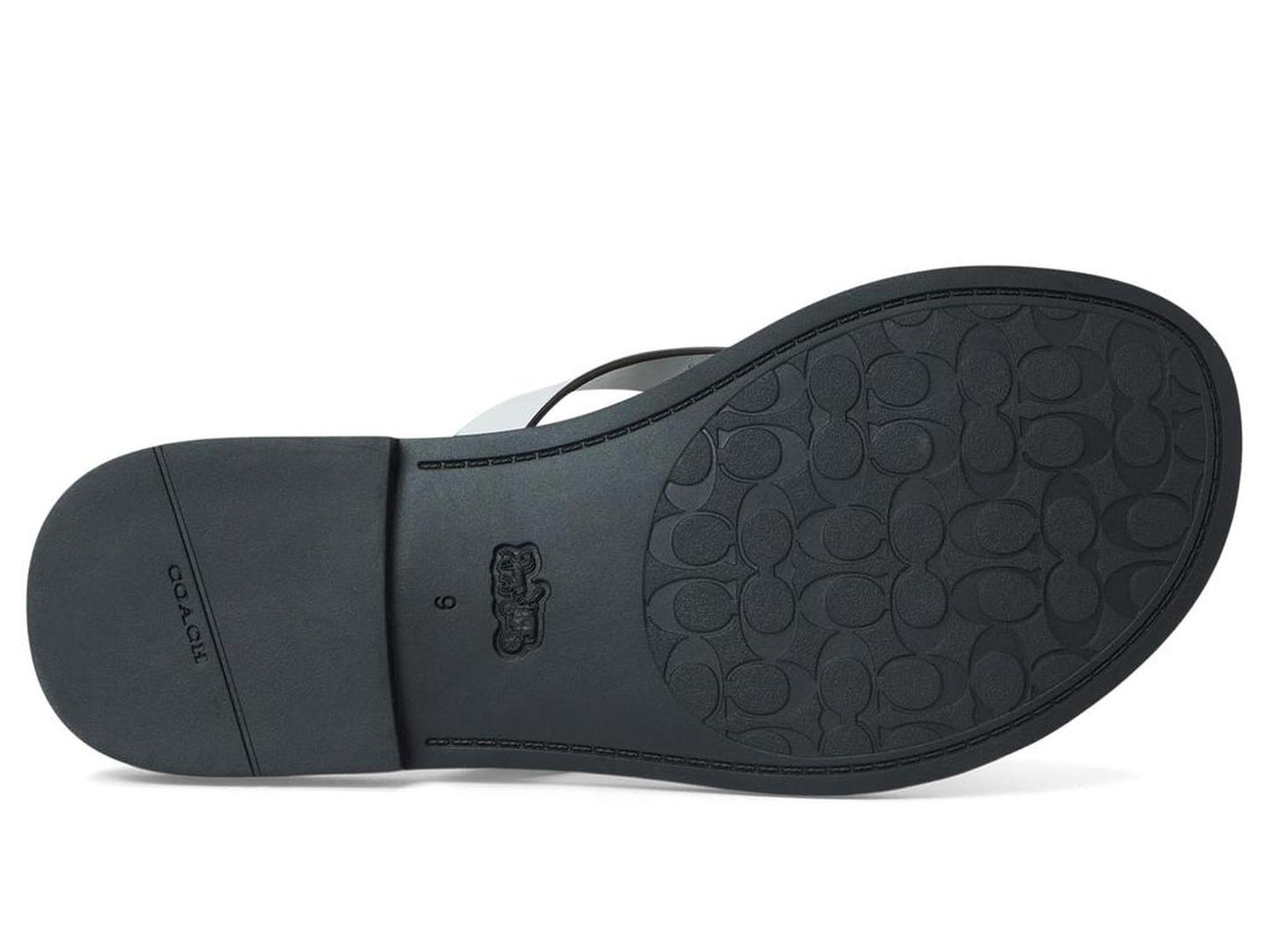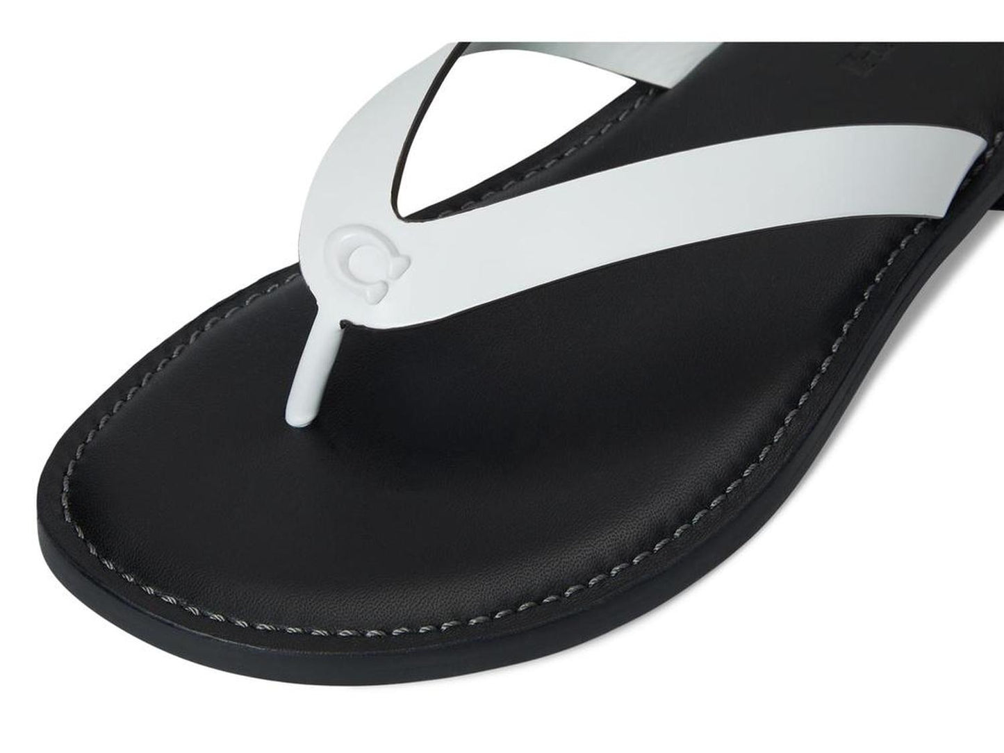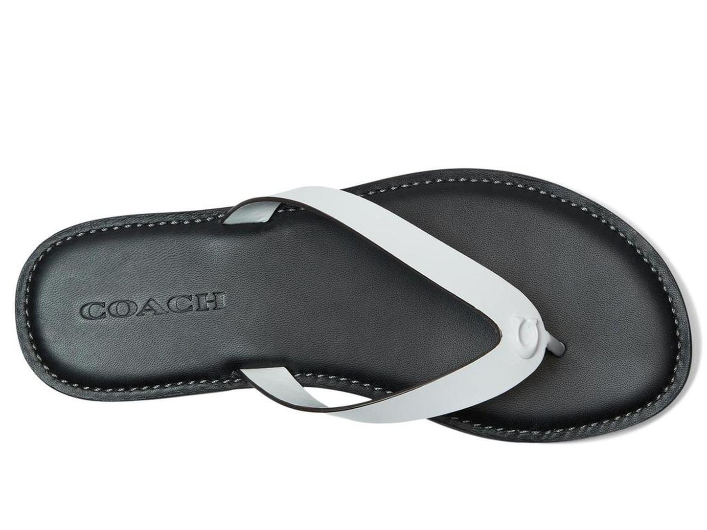 Poolside perfection, the COACH® Brianna Flip Flop. Crafted with a premium leather upper and a soft, man-made leather lining, these chic slip-ons redefine everyday luxury. The cushioned leather footbed pampers your feet, while the durable rubber outsole ensures comfort with every step. Perfect for sun-soaked strolls or casual outings, these flip flops blend timeless design with modern flair. Lightweight and versatile, they slip on with ease to elevate your warm days style.