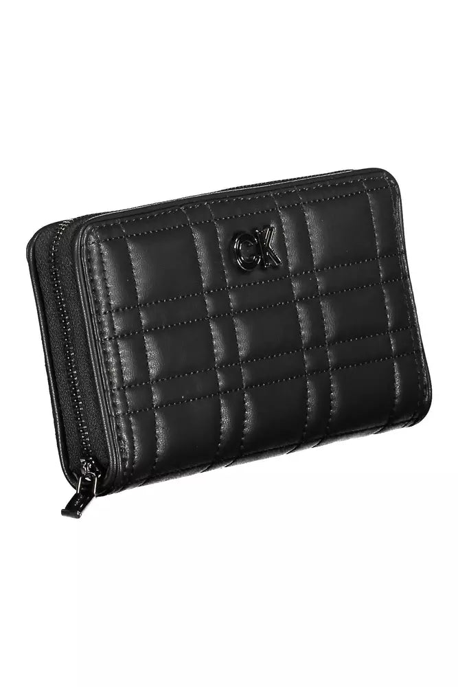 Elevate the everyday essentials with this sleek Calvin Klein wallet, crafted from a sophisticated blend of polyester and polyethylene. Boasting a contemporary black hue, this wallet features 5 compartments, a coin purse, and double spaces formed by cards, ensuring that organization is both stylish and seamless. The built-in RFID blocking technology adds an extra layer of security, shielding your cards from unwelcome scanning. Accented with contrasting details and the iconic logo, it secures with a zip closure for a flawless finish.