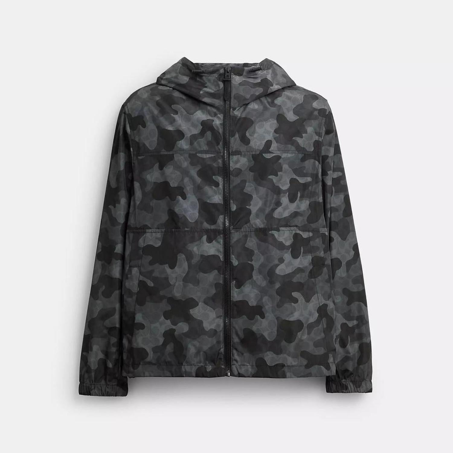 100% polyester Mesh lining - 100% polyester Zip closure Zip pockets Length - 27 Machine wash Model is 6'2 (188cm) and wears a size M Style No. CAH98 | Coach Outlet Camo Signature Windbreaker - Multi, Size - X-Small