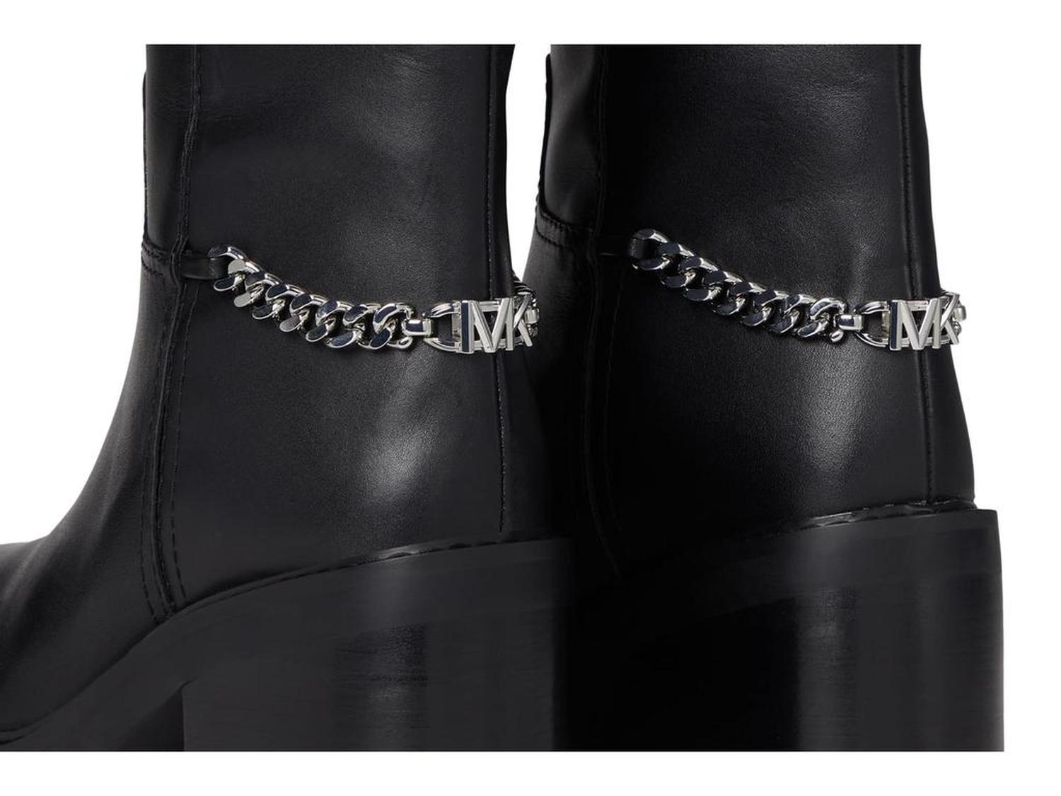 The MICHAEL Michael Kors® Carlisle Boot - Wide shaft is a contemporary pull on-to-the knee boot with interior double pull tabs on a stacked chunky heel. This square toe footwear is elevated with metal Empire ID Chain on the heel.